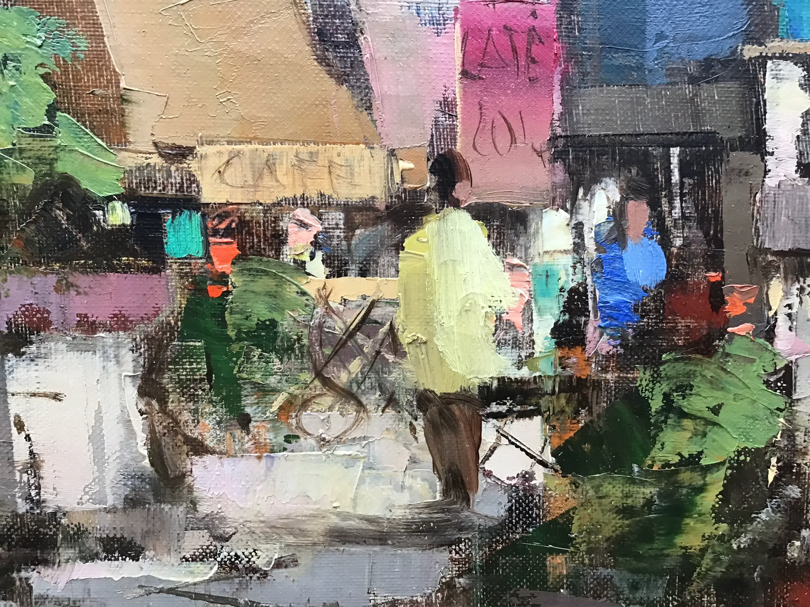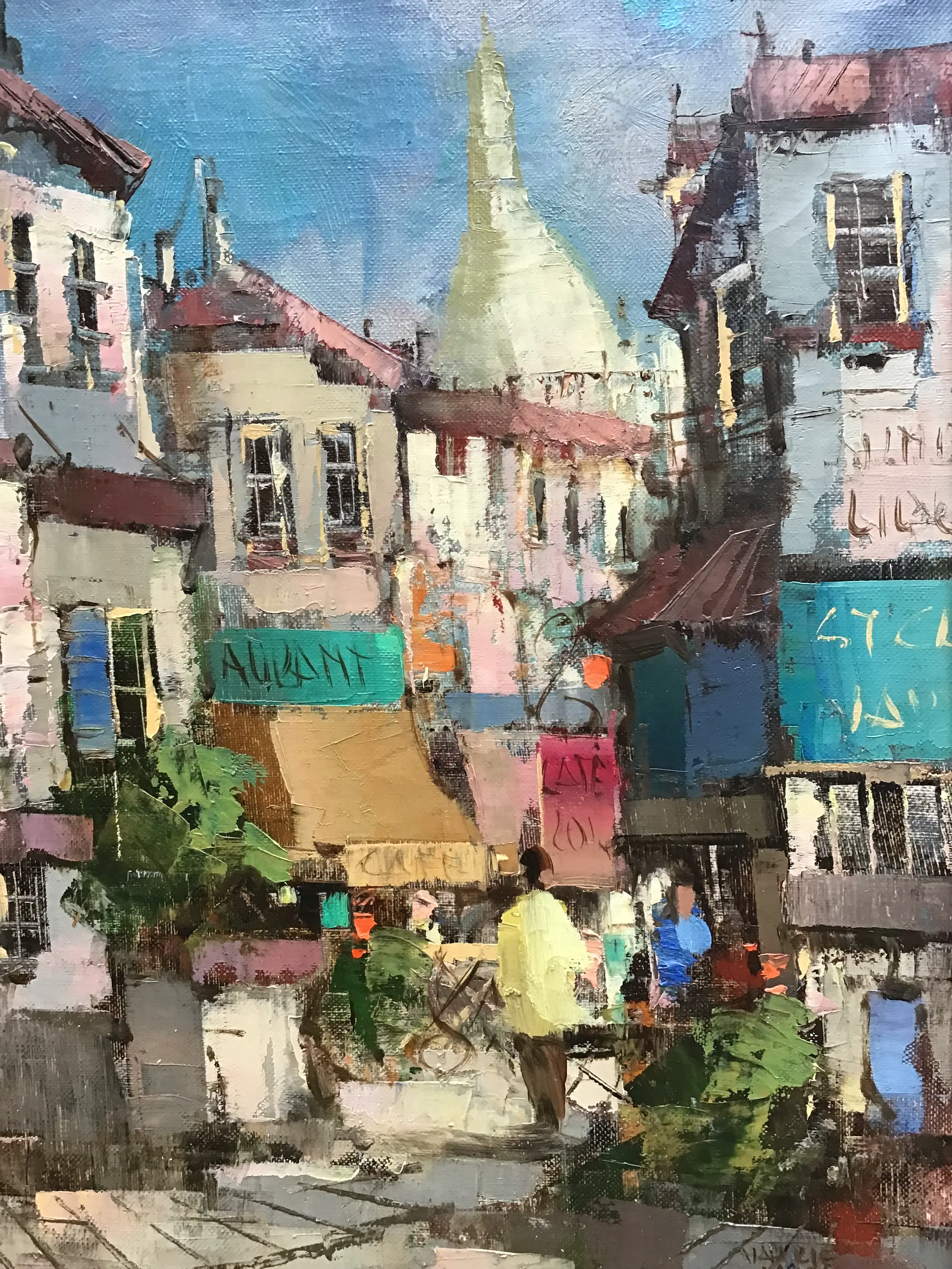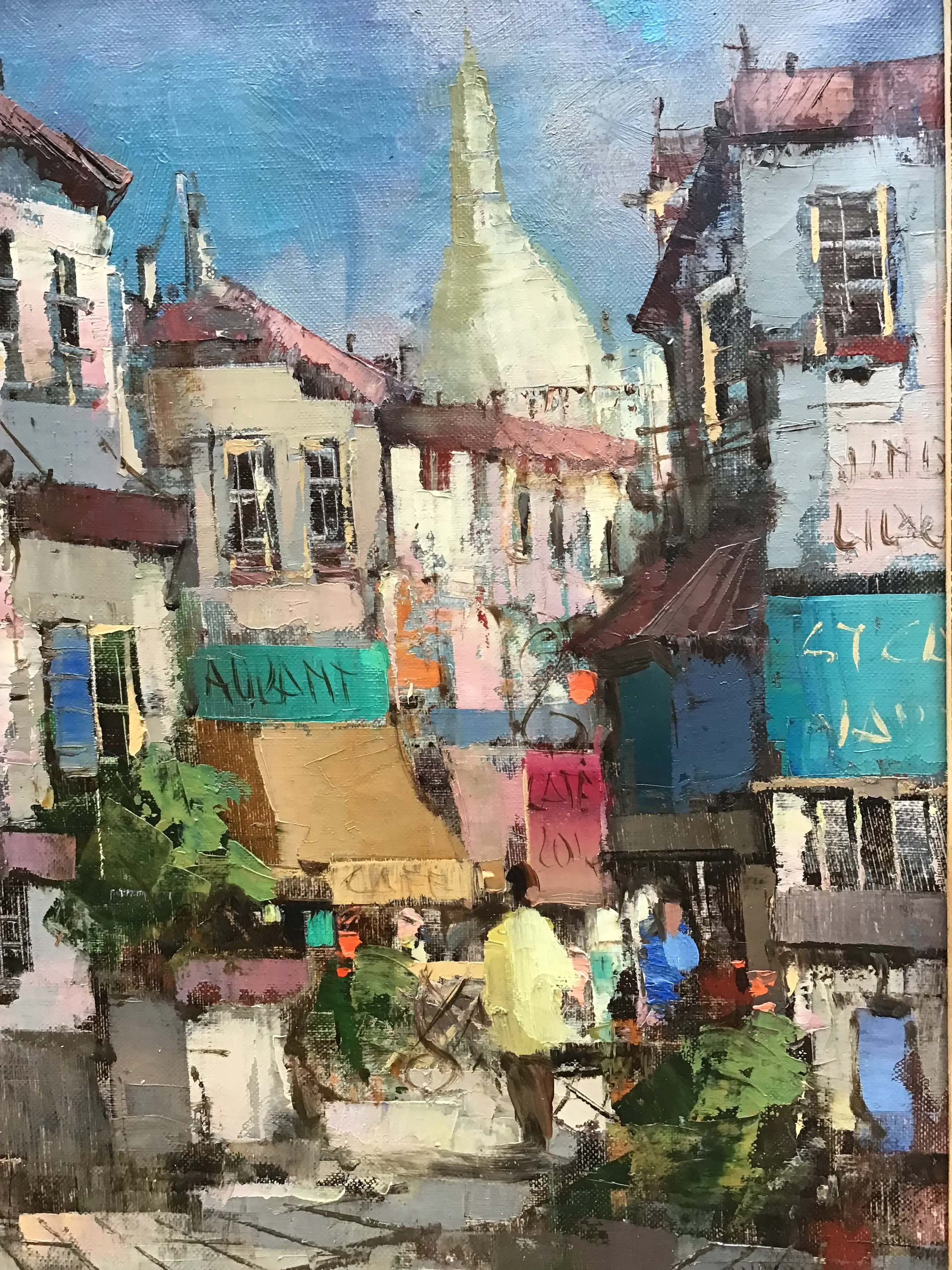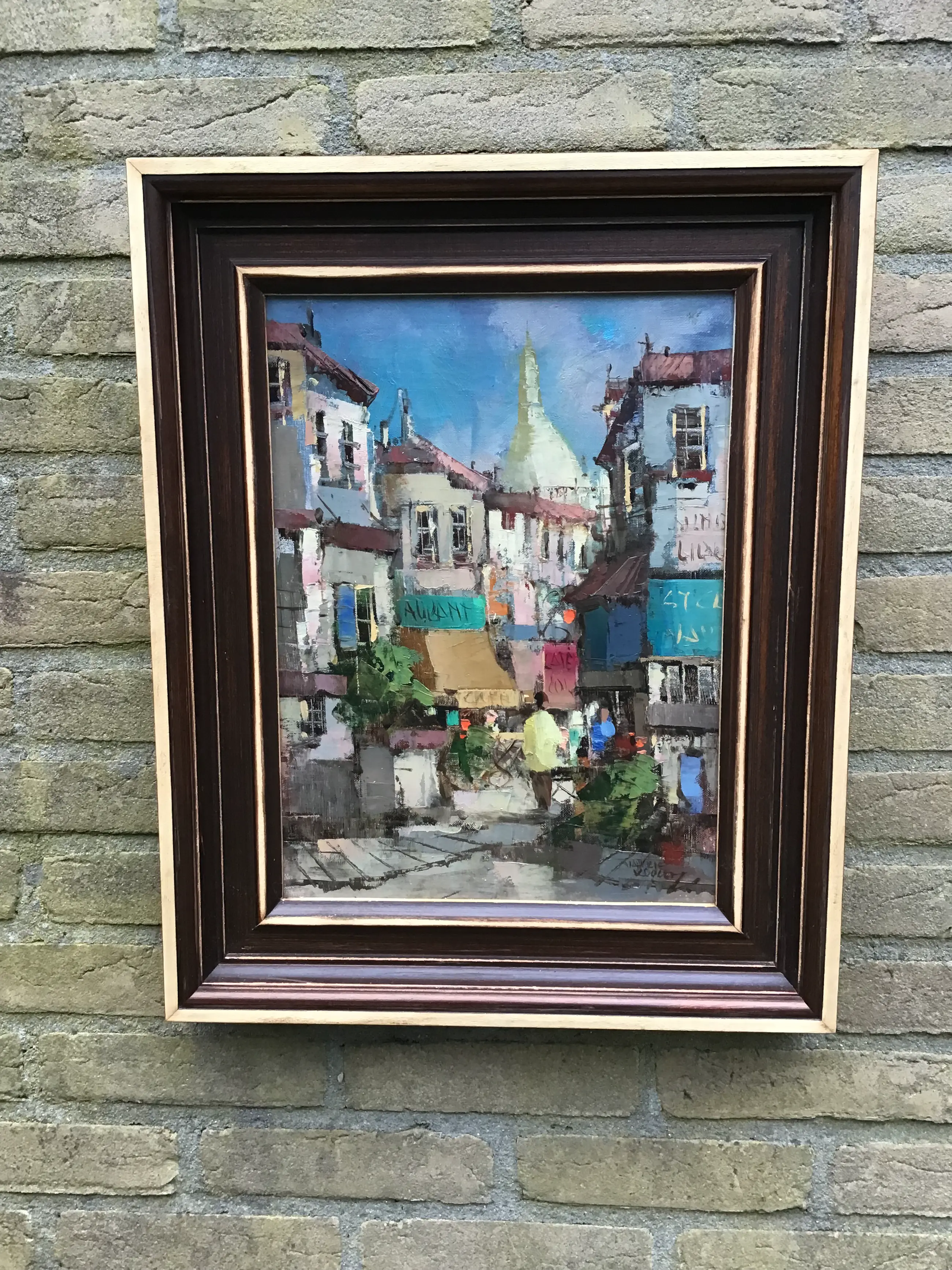 Harry Koolen werd geboren in Meerssen (zuid Limburg) en studeerde al op jonge leeftijd af aan de Rijksacademie te Amsterdam. Na deze studie keerde hij terug naar zijn geboortestreek waar hij atelier hield in het kasteel van Terworm. In 1945 stelde hij tentoon in het Rijksmuseum te Amsterdam. Harry was een veelzijdig kunstenaar welke o.a. wandschilderingen voor Brand brouwerij te Wylre, de abdij te Middelburg en het gebouw van de luchtmachtstaf te Den Haag maakte. Ook documenteerde hij omstreeks 1958 met pen en penseel het mijnwerkersleven en vereeuwigde hij talloze religieuze onderwerpen. Dit impressionistische schilderij is gemaakt tijdens één van zijn studiereizen naar Frankrijk.