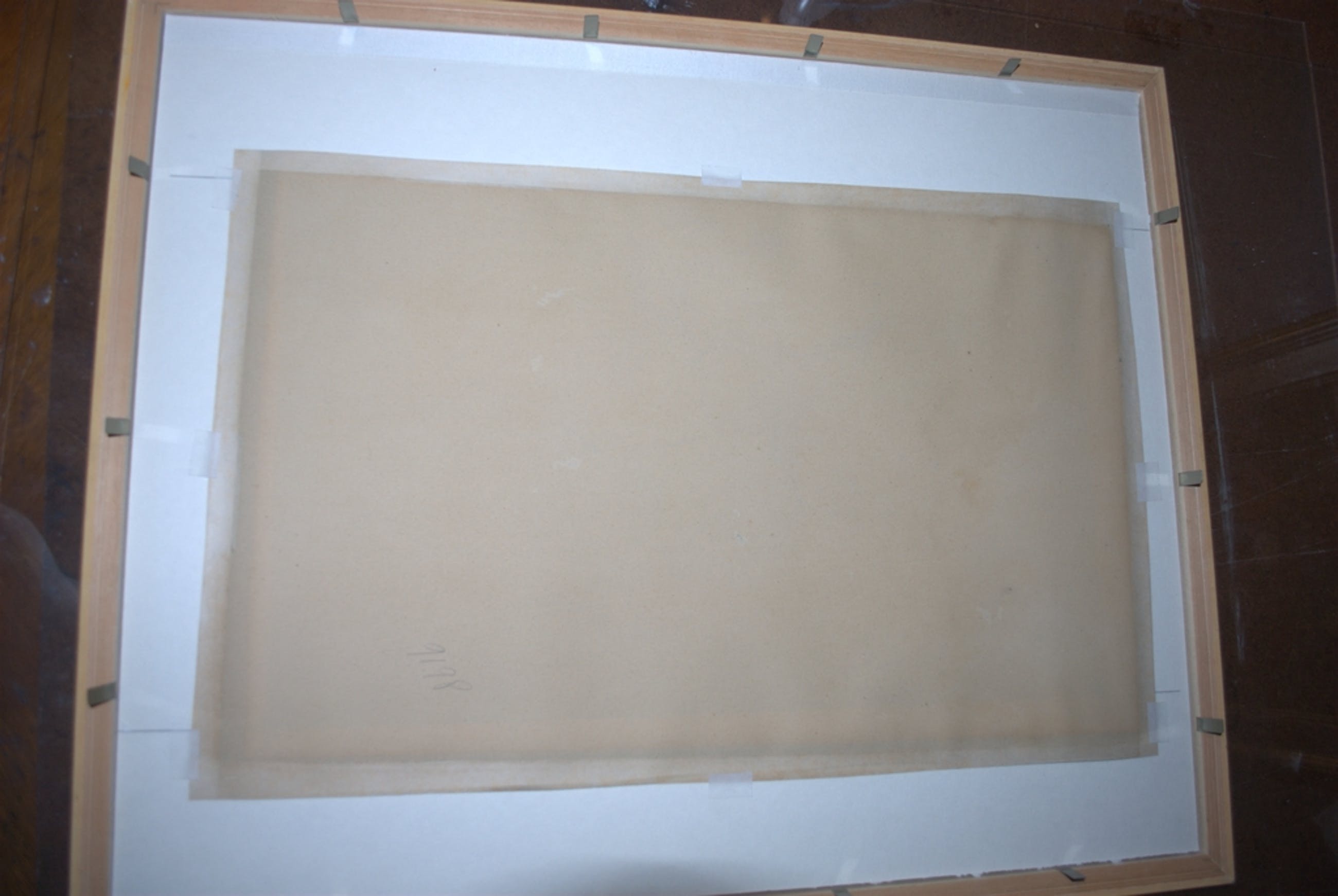 Achter passepartout en glas, in een houten lijst i.g.st. 50x40 cm.