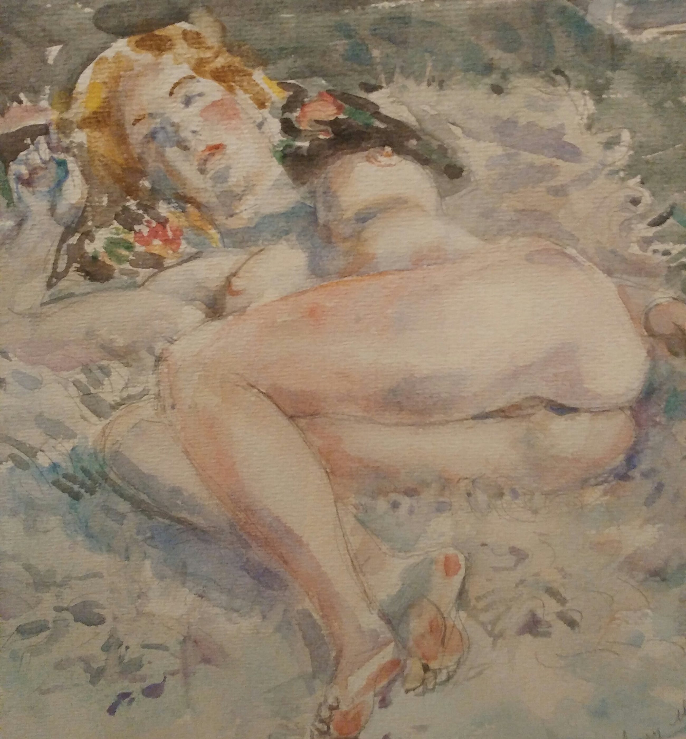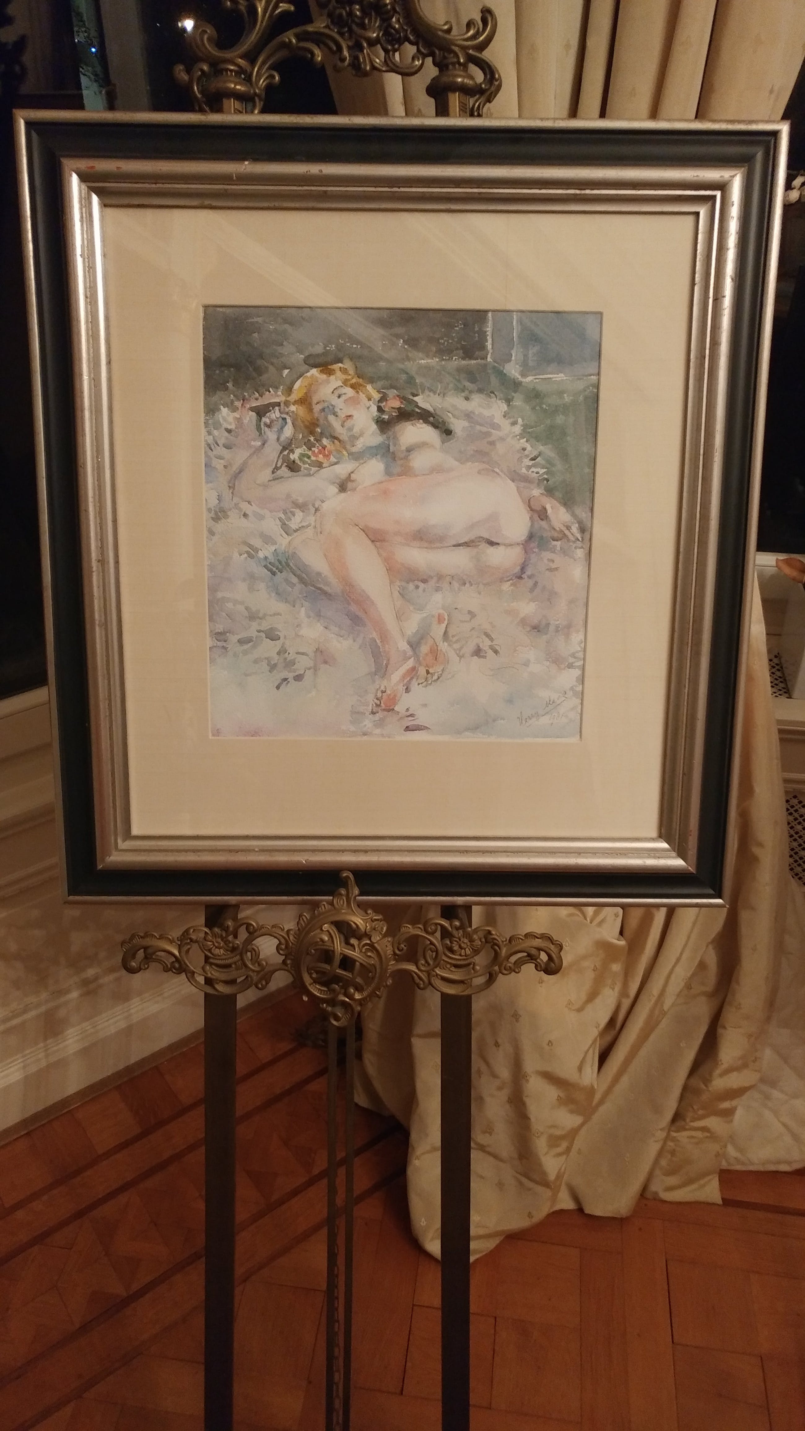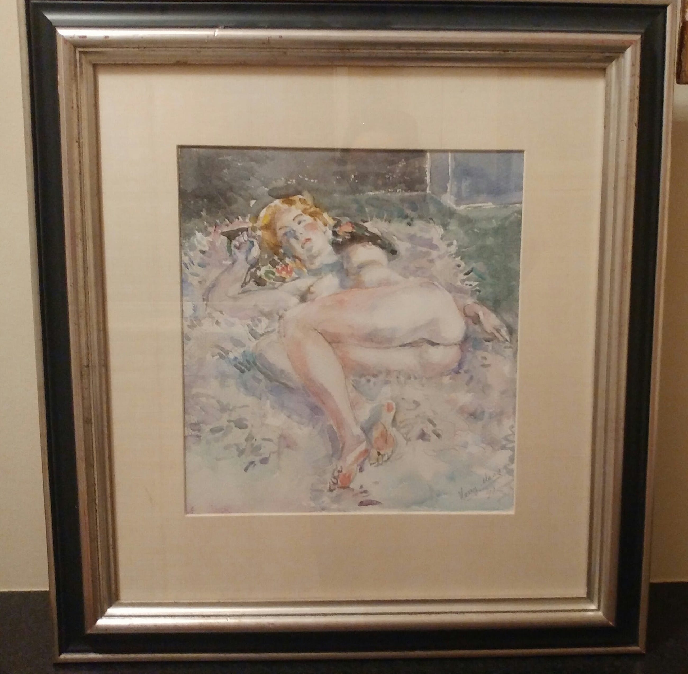 Mooi aquarel van een liggende,naakte vrouw.De conditie van dit werk is zeer goed.Er zijn geen beschadigingen.