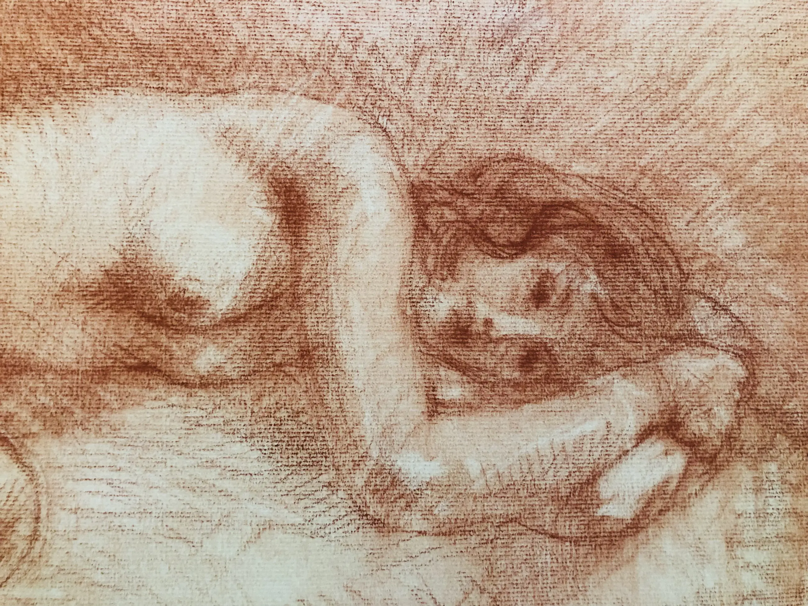 Het werk is ingelijst maar de glasplaat ontbreekt. Passe partout wellicht ook aan vervanging toe. Verder is de tekening in zeer goede staat