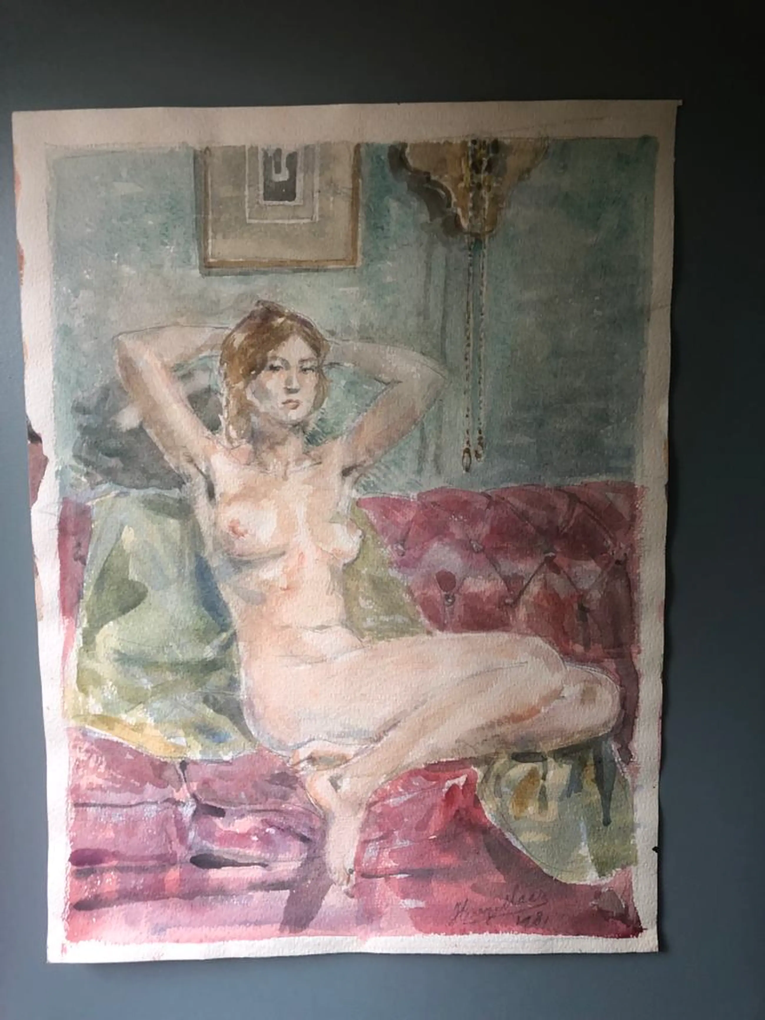 Werk uit een privé collectie van Harry Maas. Harry Maas wordt op 23 juli 1906 te Nederweert geboren en begon zijn carrière bij de Eindhovense schetsclub. Ook sluit hij zich aan bij de door Johannes Nicolaas jr in 1934 gestichte De Zuid Nederlandsche Onafhankelijken. In 1940 wordt hij met andere Eindhovenaren lid van de Bredase Kunstkring. Na de Tweede Wereldoorlog Exposeert hij als lid van Kunstkring De Kempen. Harry Maas Schilderde stadsgezichten, portretten, treinen, bloemstillevens, landschappen. Maar het vrouwelijk half gekleed of pikant naakt loopt als een rode draad door zijn werk. Harry Maas overleed op 4 juni 1982 te Eindhoven.