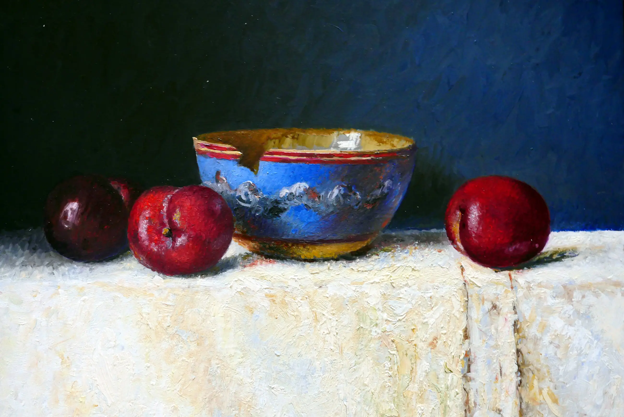 Het stilleven komt van Meervelds ‘blauwe periode’ die ongeveer liep van 1995 tot 2000. Dat waren vruchtbare jaren waarin de schilder naar eigen zeggen zijn beste stillevens maakte. Werken uit die tijd werden allemaal verkocht, vooral via Galerie Mokum te Amsterdam.