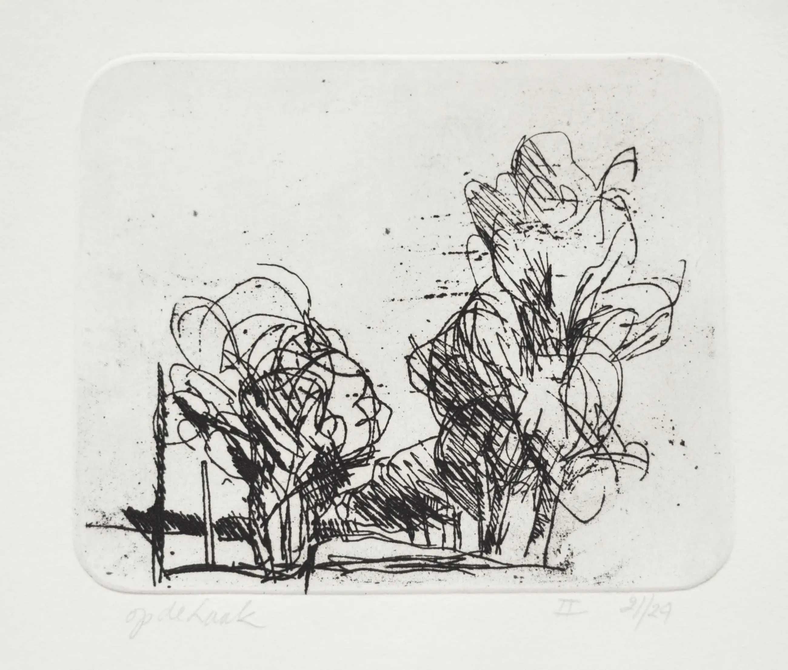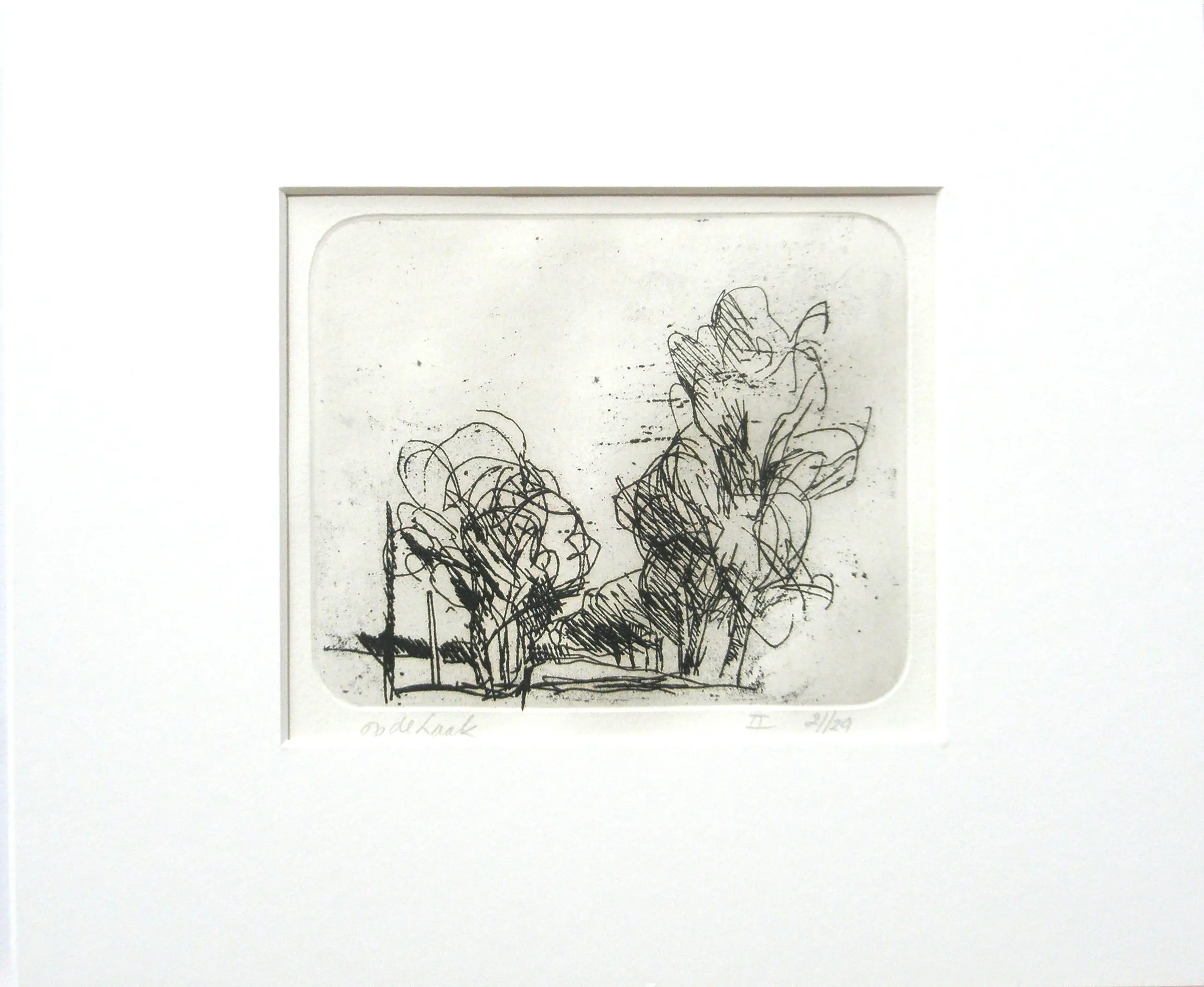 5- ets "bomen" - 12,5 x 15 cm - oplagenr. 2/29 - gesigneerd, zeer goed, passe-partout 25 x 30 cm.