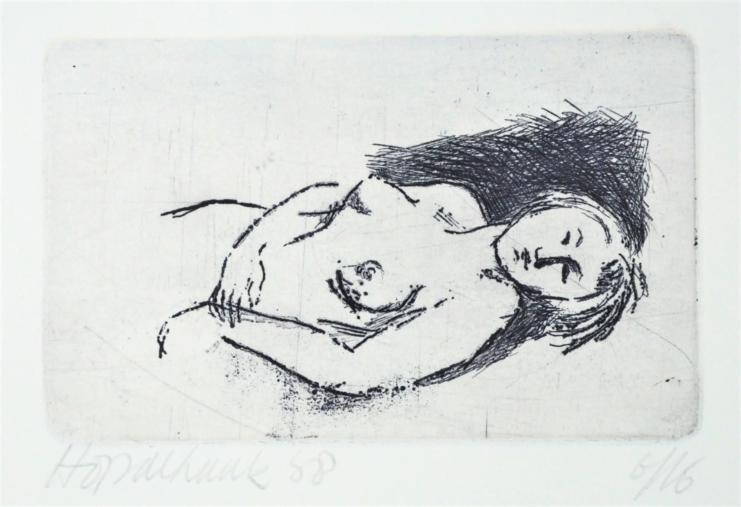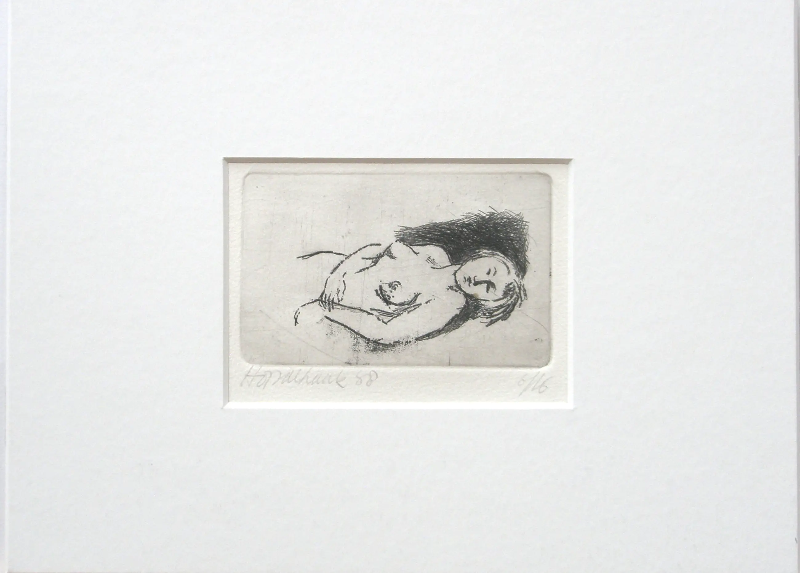 4- ets "liggend naakt" - 7 x 10 cm - oplagenr. 6/16 - gesigneerd, zeer goed, passe-partout 23,5 x 31cm.