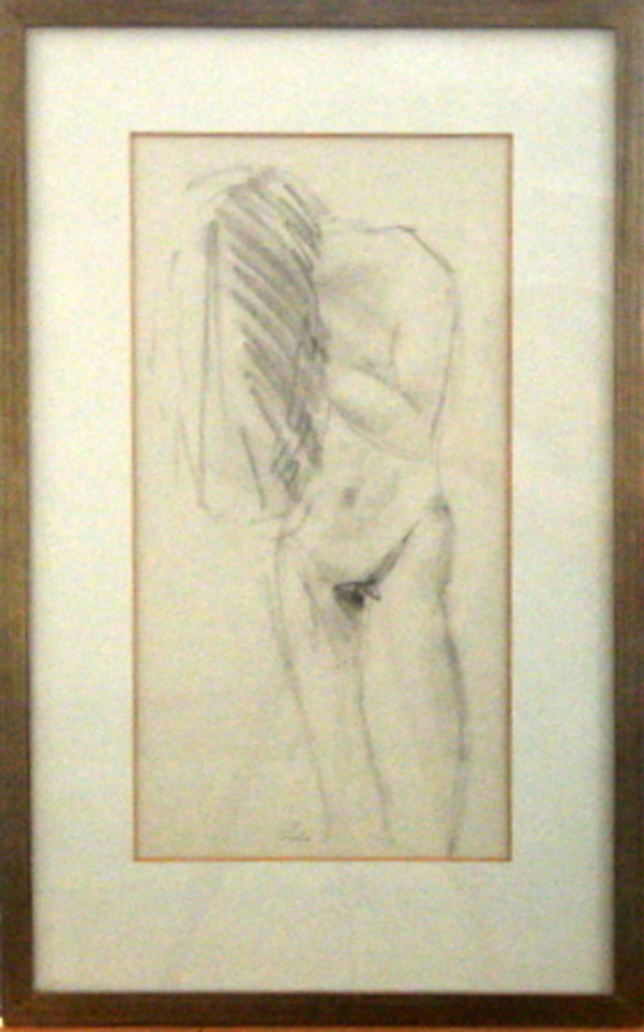 Heel mooi expressionistische tekening van bekende Tegelse beeldhouwer en graficus Harry Storms, gemaakt in 1977. Mooi staande naakte vrouw. Gesigneerd rechts onder en ook op de achterkant.