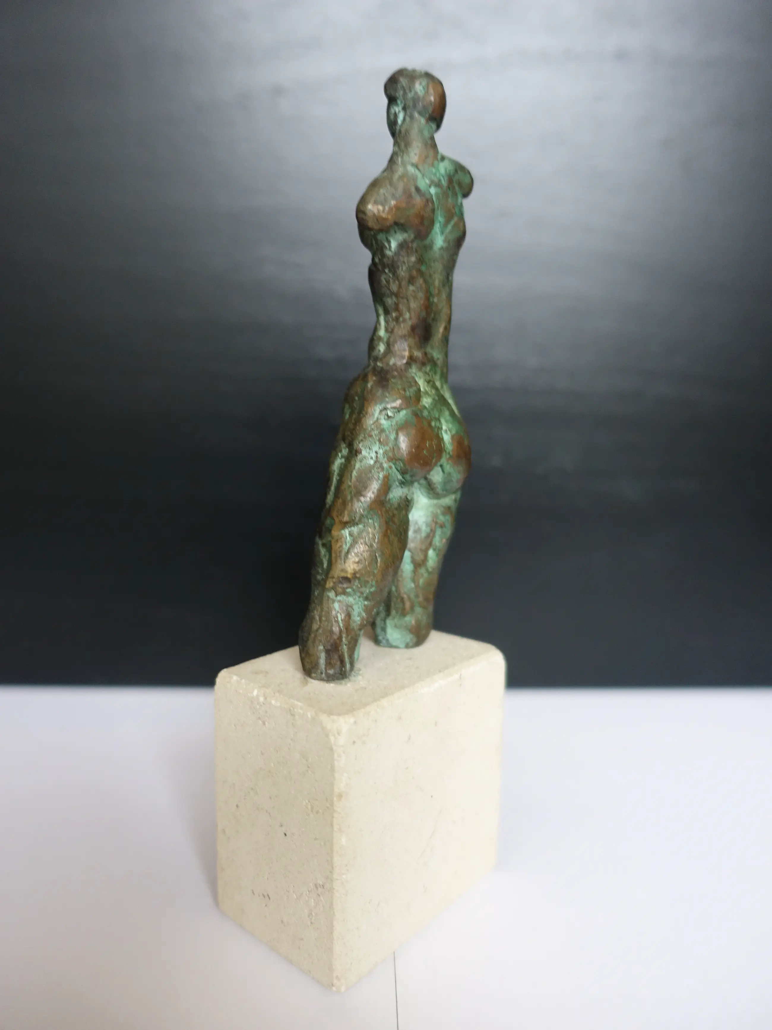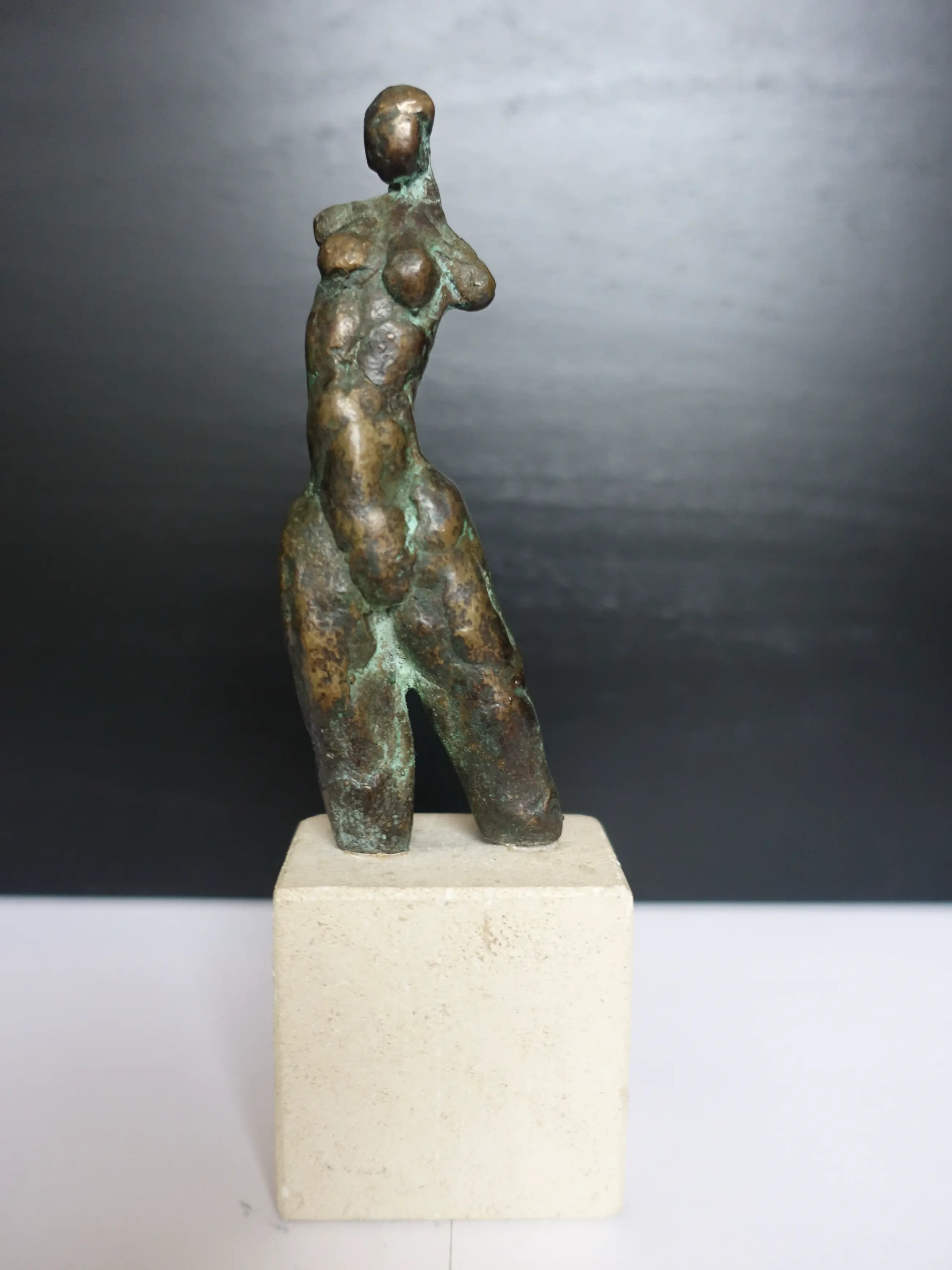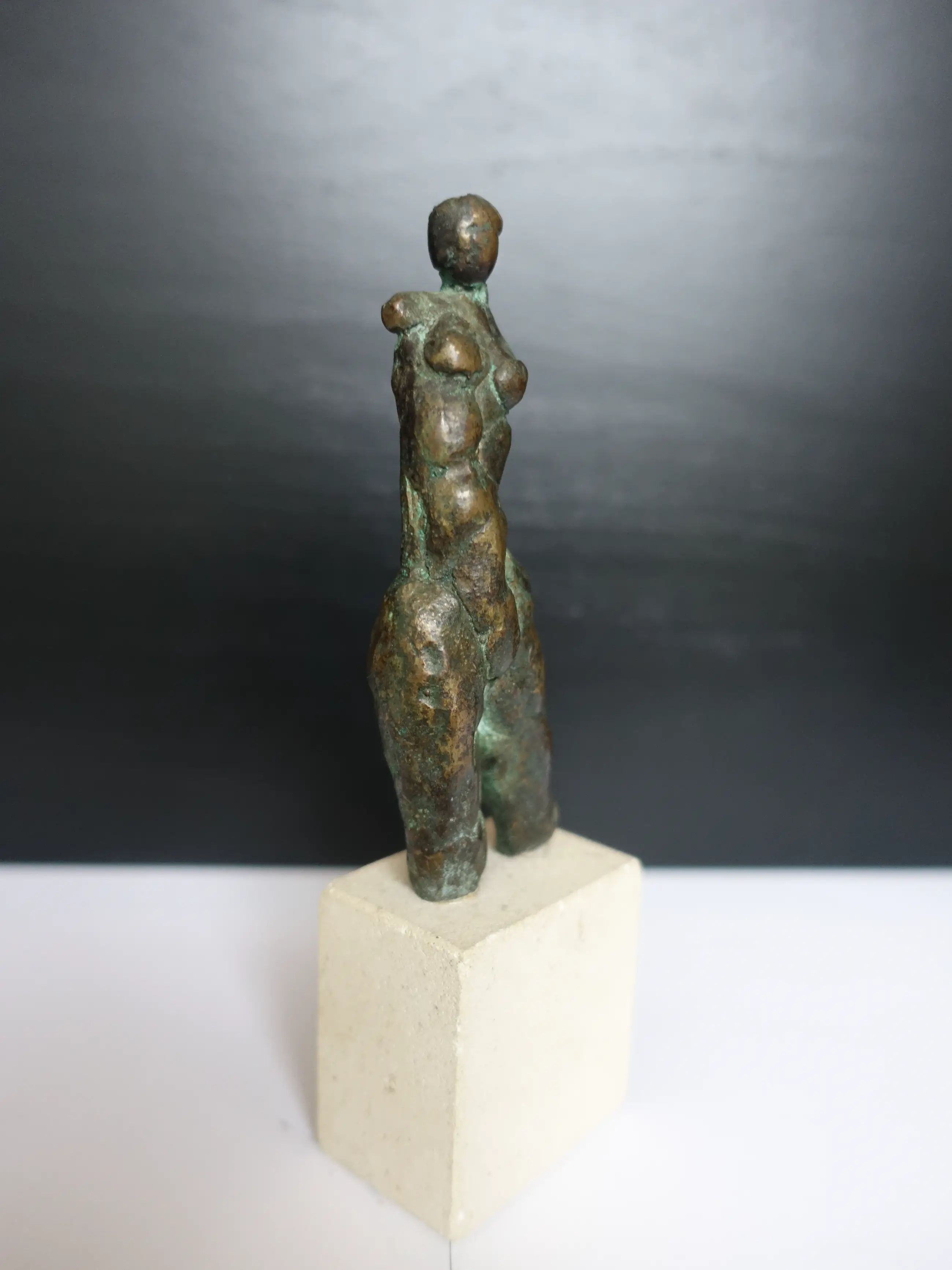 Graficus- beeldhouwer, 1945 te Tegelen. De afmetingen zijn INCLUSIEF de sokkel. Op de achterzijde lijkt zijn signatuur te staan, is echter onleesbaar.