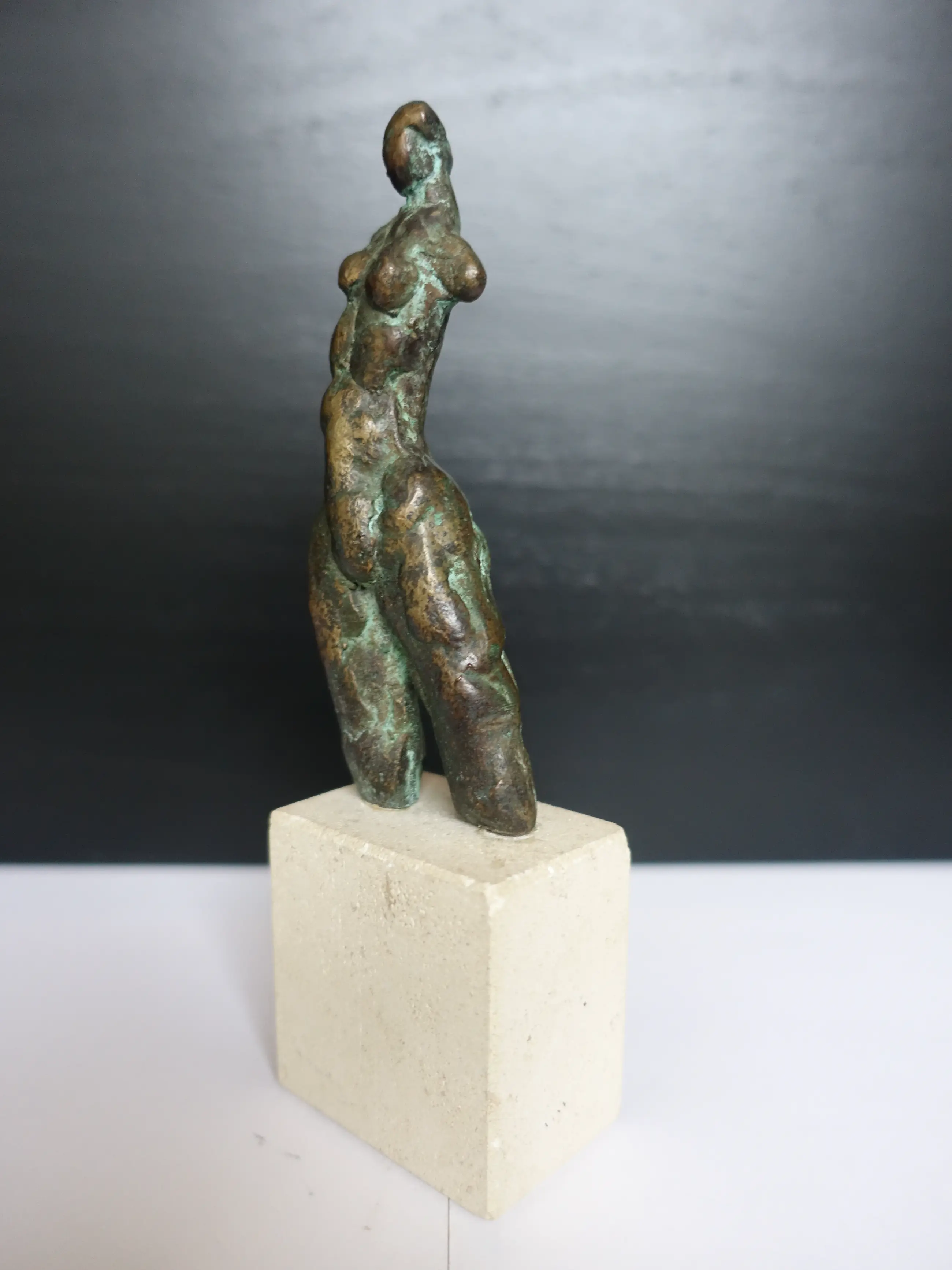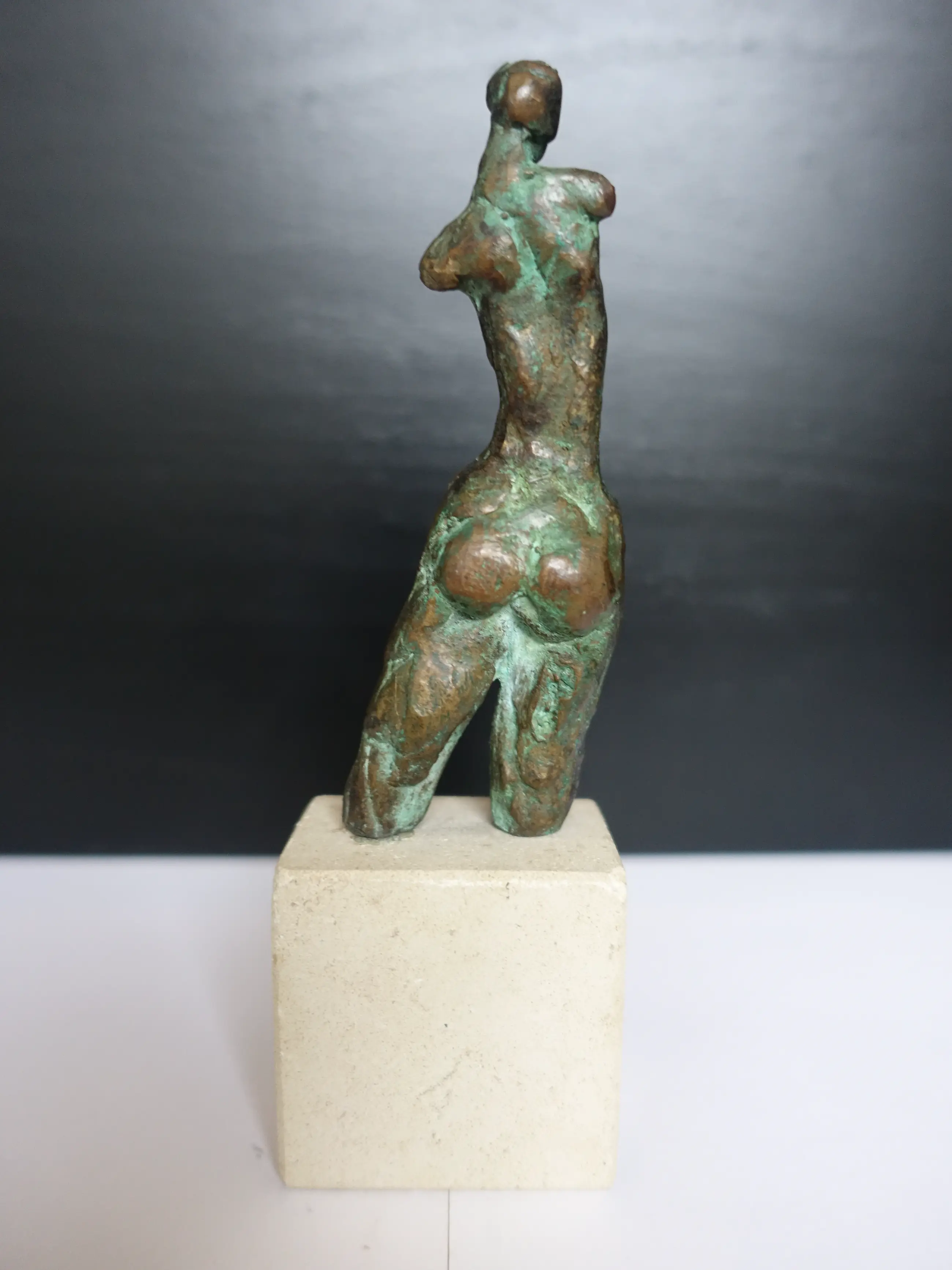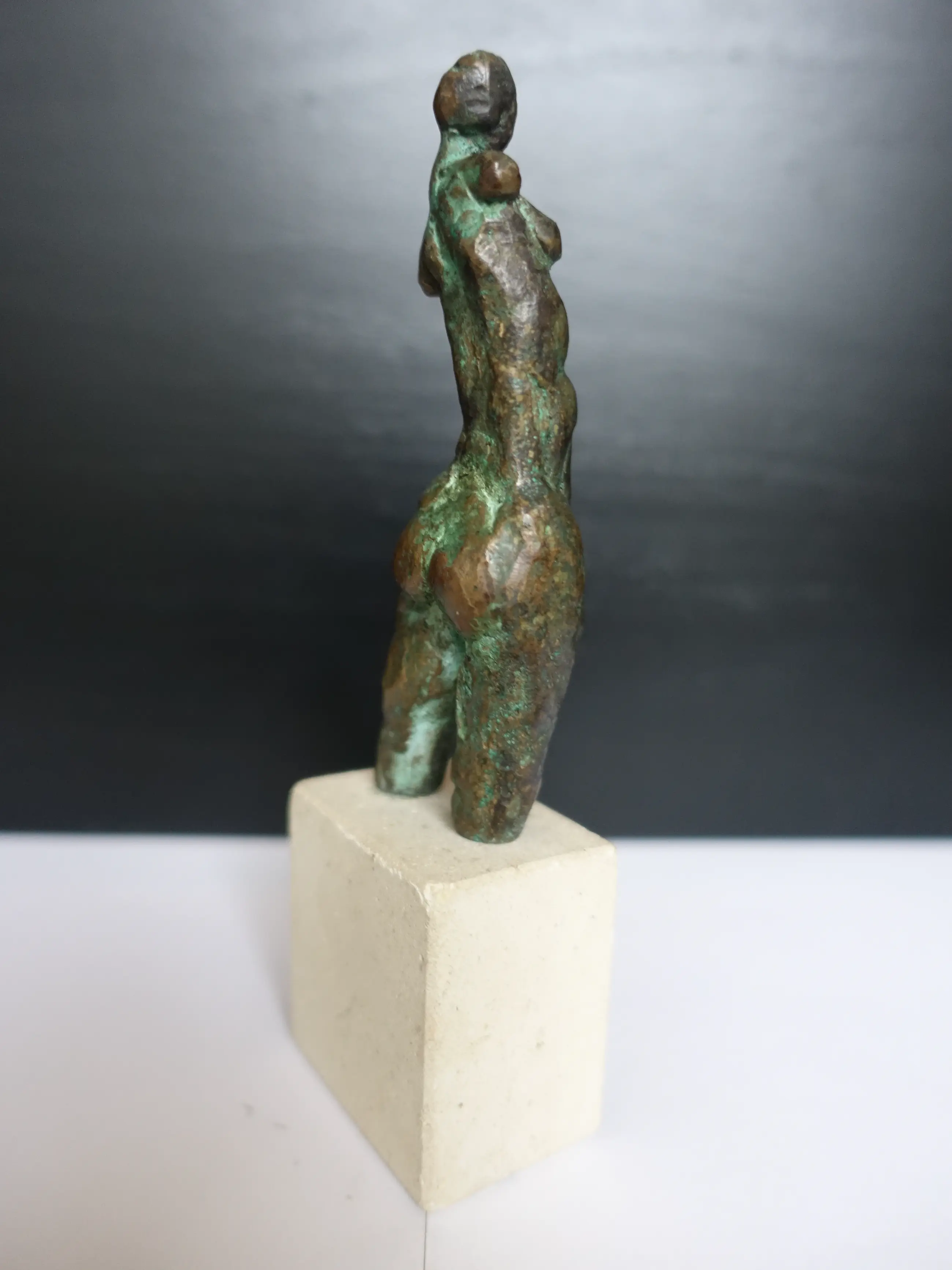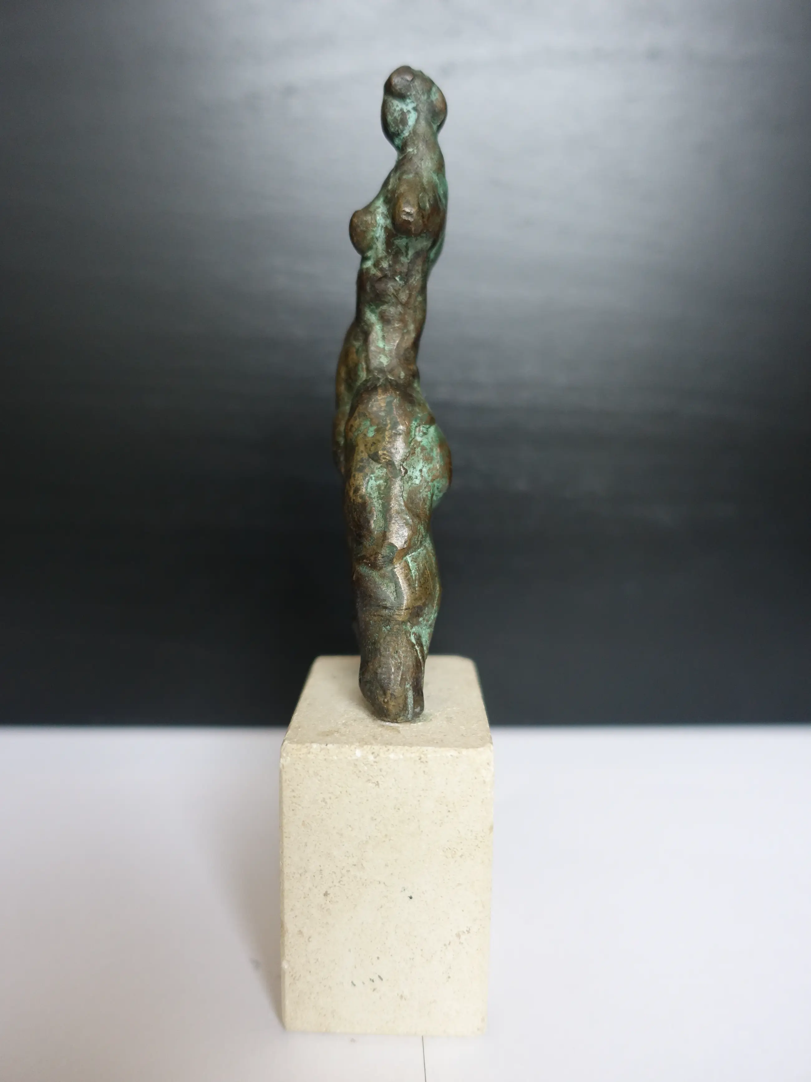 Graficus- beeldhouwer, 1945 te Tegelen. De afmetingen zijn INCLUSIEF de sokkel. Op de achterzijde lijkt zijn signatuur te staan, is echter onleesbaar.