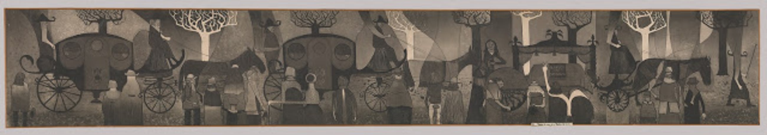 Op deze prent heeft Van Kruiningen de begrafenis van de beroemde filosoof Baruch de Spinoza afgebeeld. Rechtsondergesigneerd, 1/20. Geheel in perspex ingelijst, achterkant hardboard/spaanplaat.
