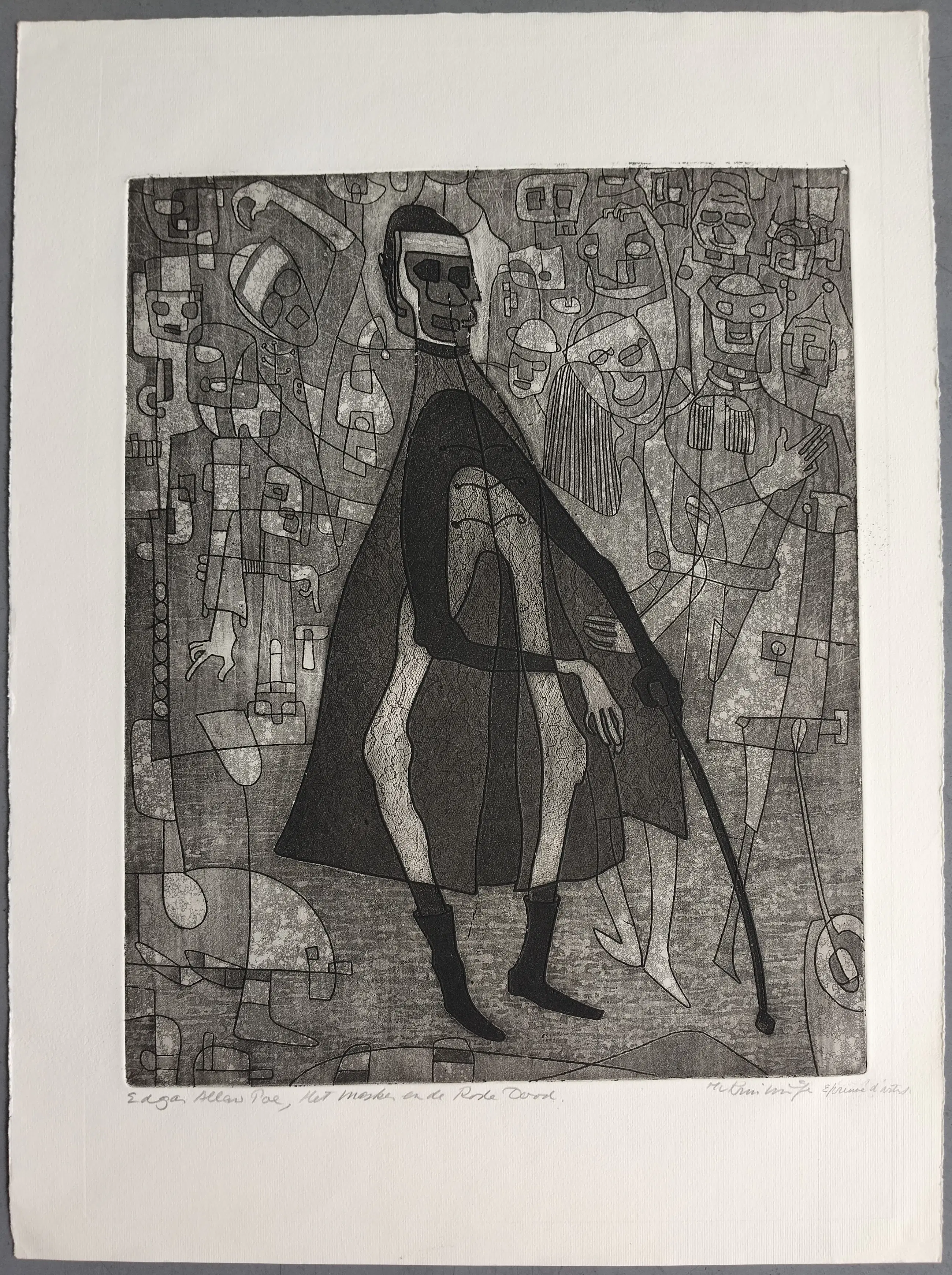Harry van Kruiningen - Edgar Allan Poe Het masker en de rode dood - Gesigneerde ets