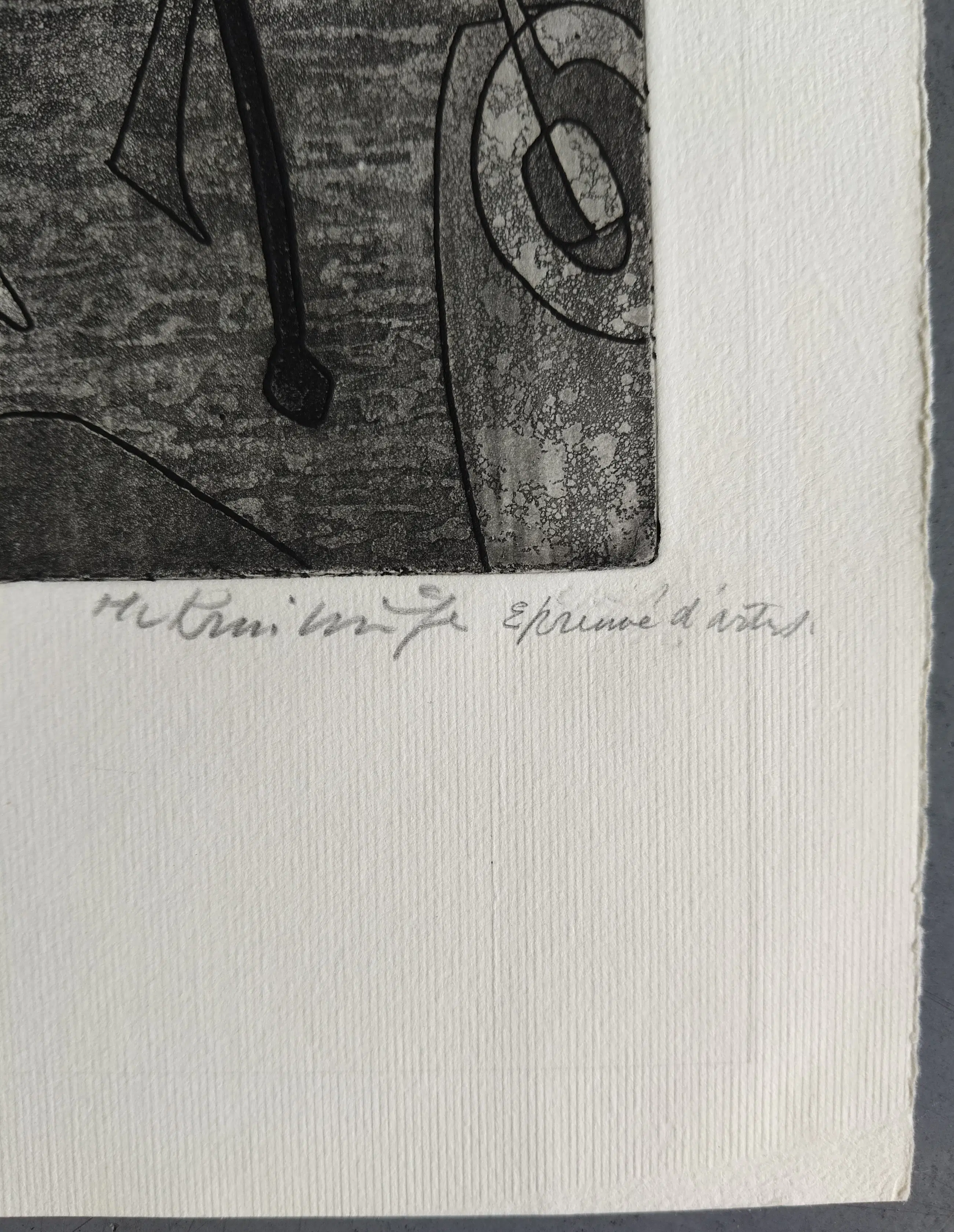 Gesigneerde ets van Harry van Kruiningen (1906-1996) Rechtsonder is het werk gesigneerd in potlood en Épreuve d’Artiste. Linksonder met Edgar Allan Poe Het masker en de rode dood Papiermaat 52.5 x 38.5 cm. (hxb)
