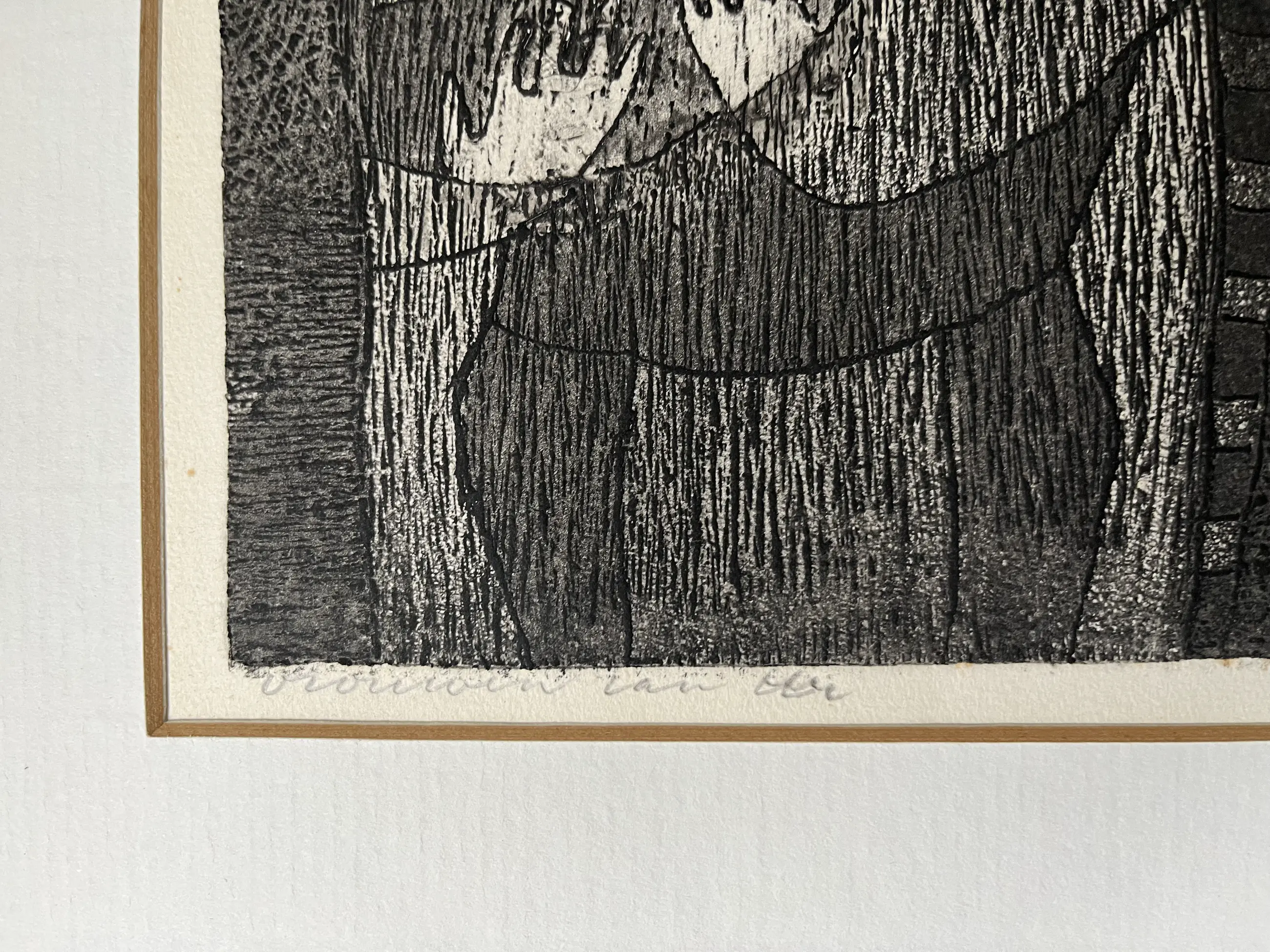Harry van Kruiningen maakte in de jaren vijftig een serie litho’s n.a.v. het beroemde Gilgamesj epos. Later zou het dezelfde afbeeldingen uitvoeren in etstechniek en ik kleur. De drie litho’s horen bij elkaar, maar kunnen eventueel ook los gekocht worden. De vraagprijs per stuk is vanaf € 200, - , voor de complete serie kunt u bieden vanaf € 450,-