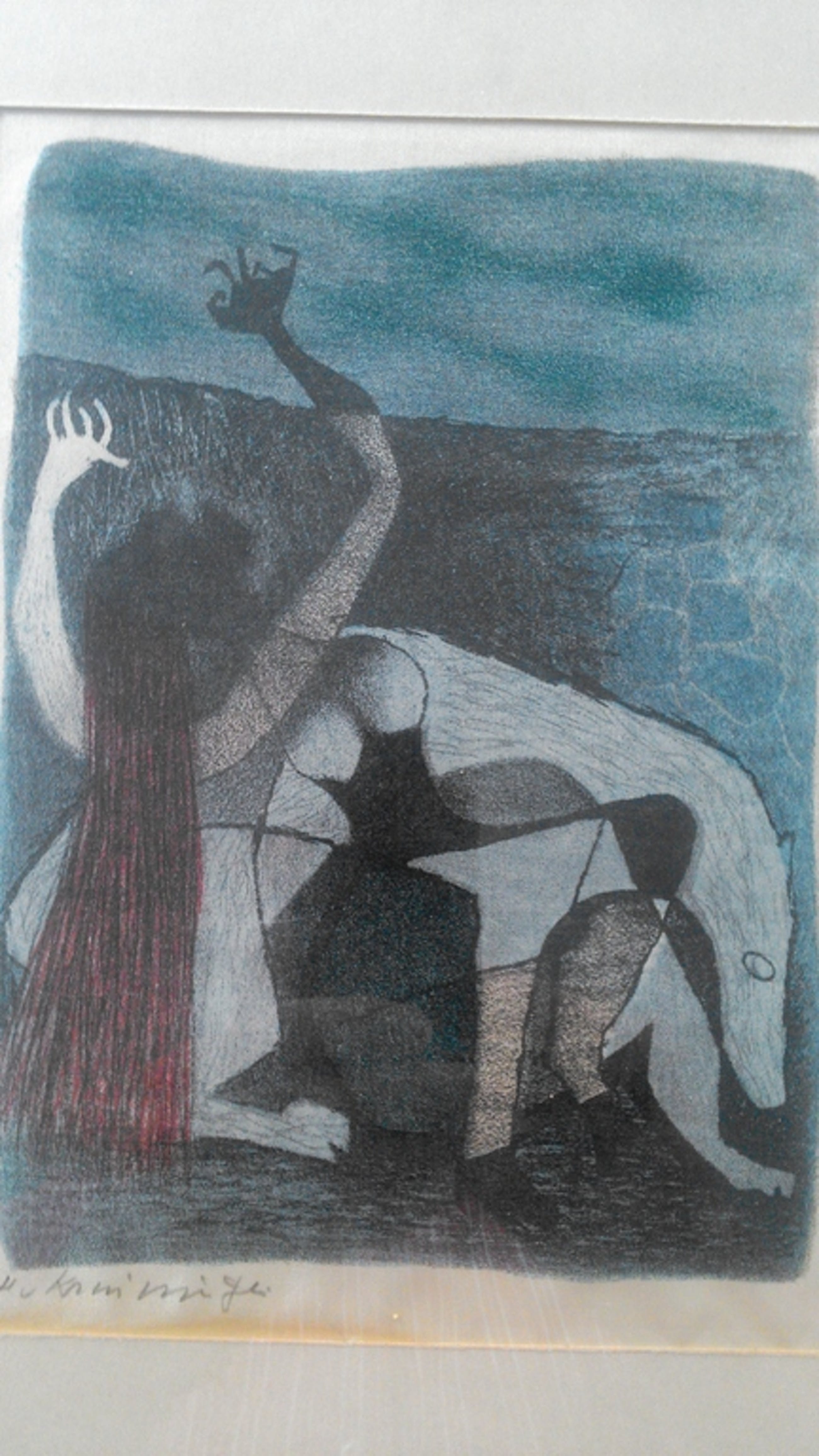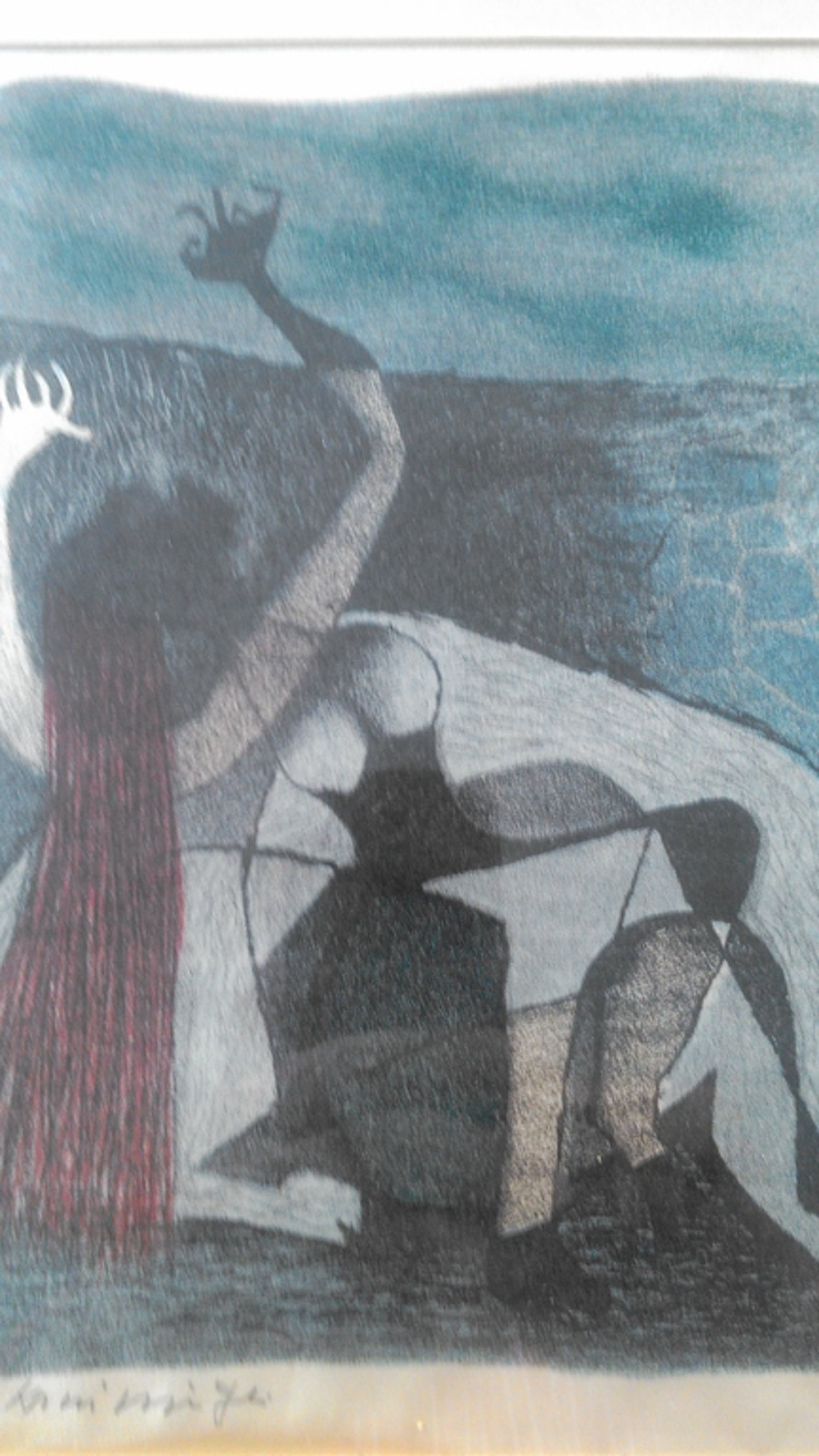 Handgesigneerde litho uit de serie Gilgamesh Epos Mooi werk in eenvoudige lijst