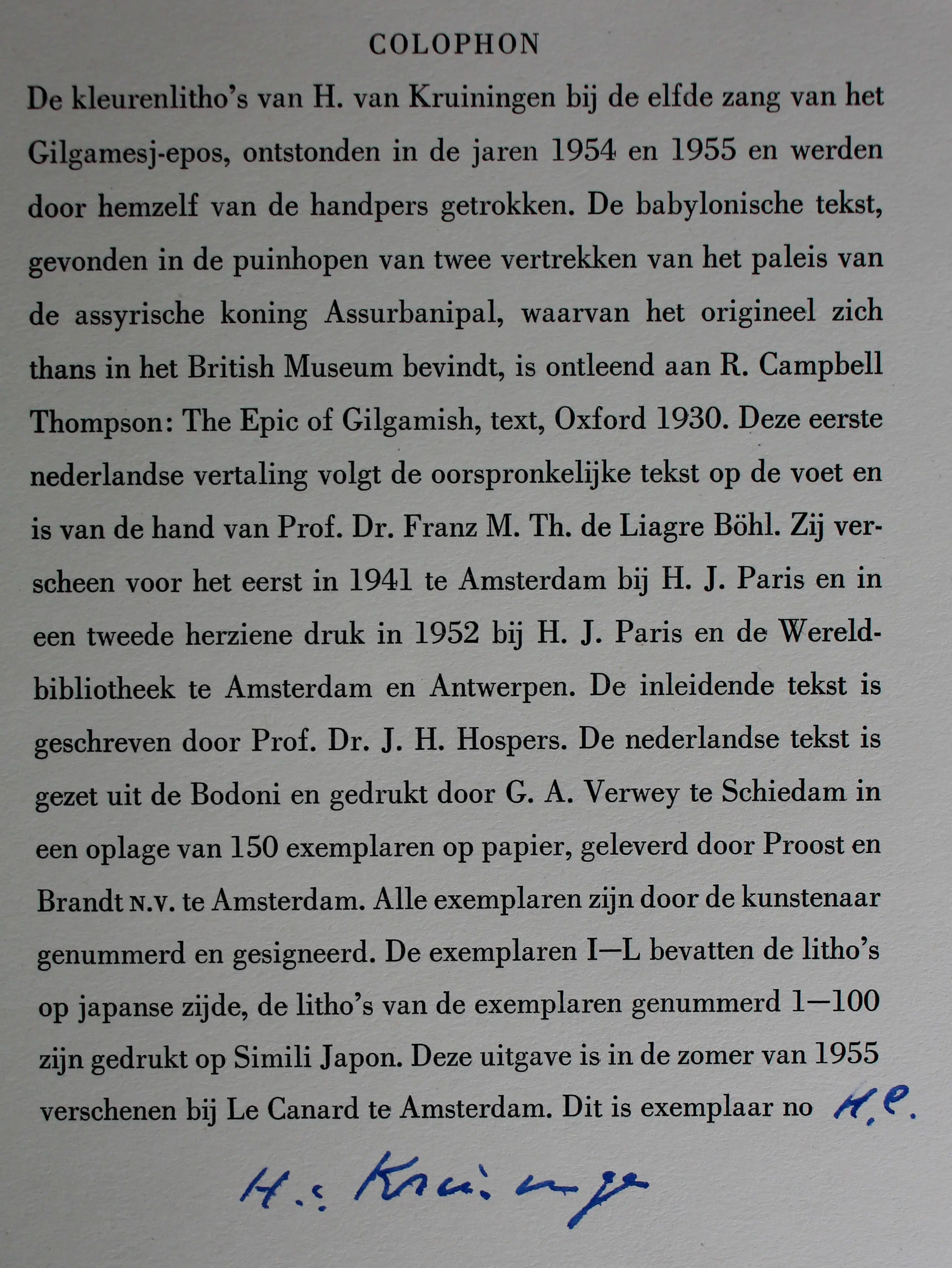 Harry van Kruiningen - Kleuren litho: Gilgamesj - 1955
