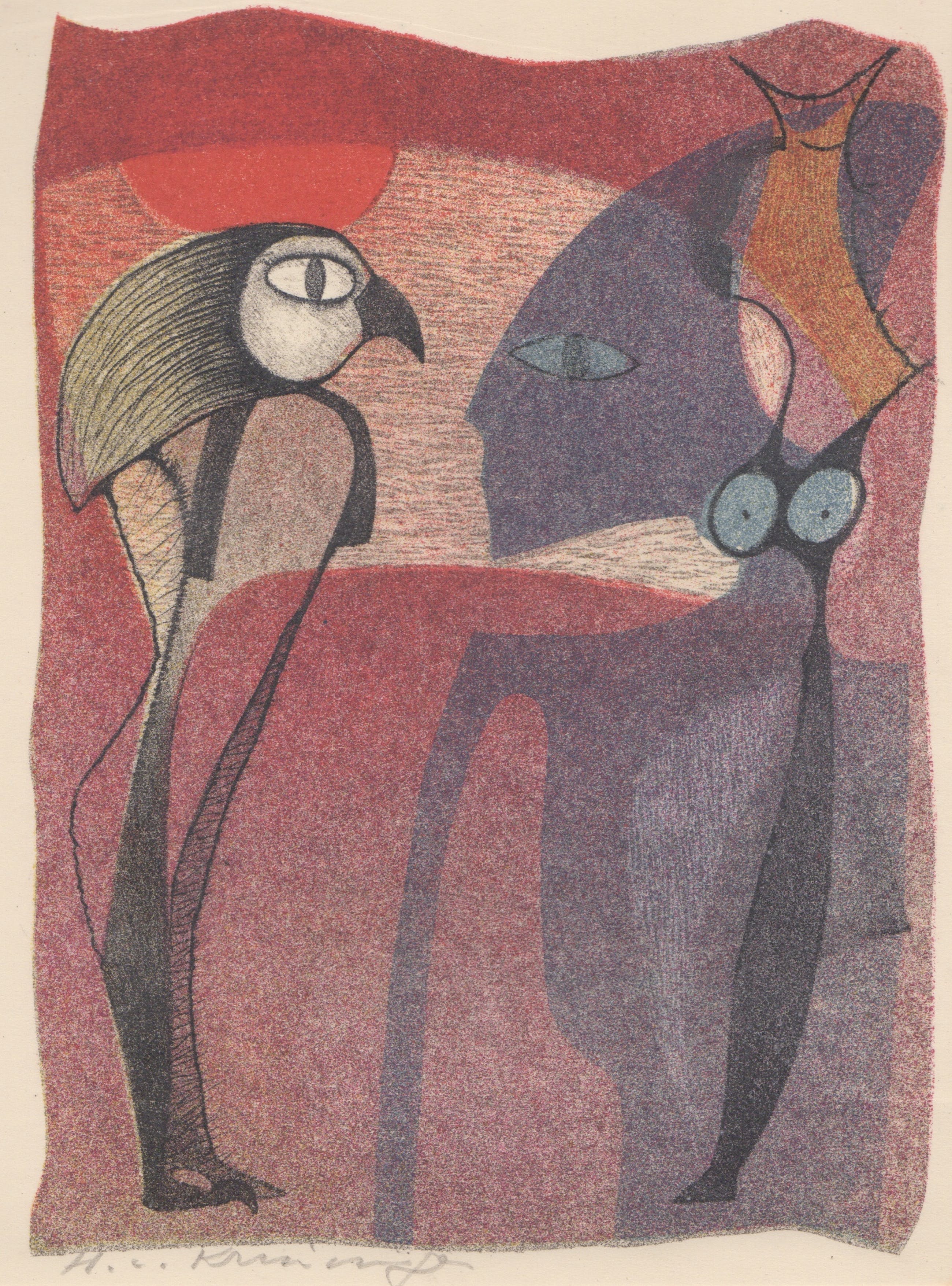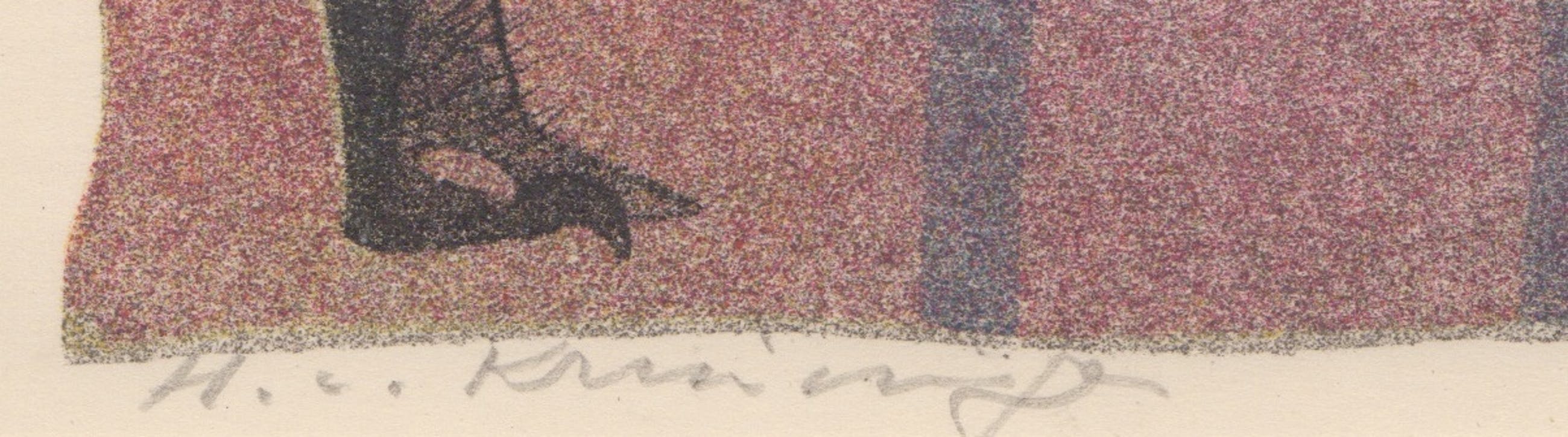 Mooie litho van de hand van Harry van Kruiningen. Afkomstig uit de portfolio 'Achnaton'. Nummer 30 uit een oplage van 100 stuks, door hemzelf gedrukt op Simili Japon papier.