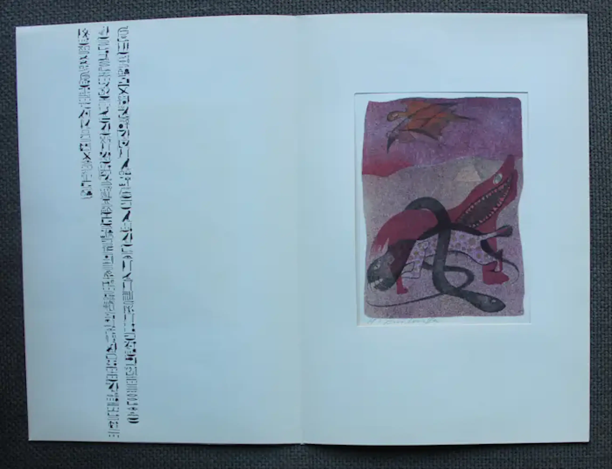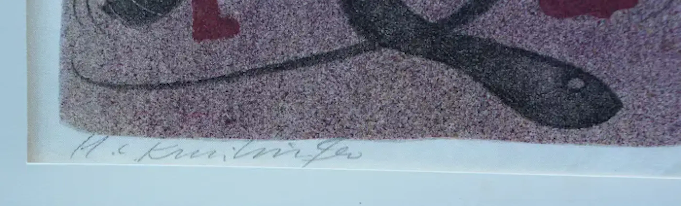 Litho van Harry van Kruiningen. Titel: Achnaton. (Litho op de hymne van de zon van Echnaton. In de originele tekst en de vertaling door prof. dr. A. de Buck. Amst., Le Canard, 1954, (60)p). Afmetingen incl passe-partout: H39 x b26.5cm. Afmetingen voorstelling: H21 x b15cm. Het werk is links onderaan, gesigneerd door de kunstenaar. De authenticiteit van dit werk wordt volledig gegarandeerd. Een certificaat van echtheid kan, op aanvraag, worden gemaild.