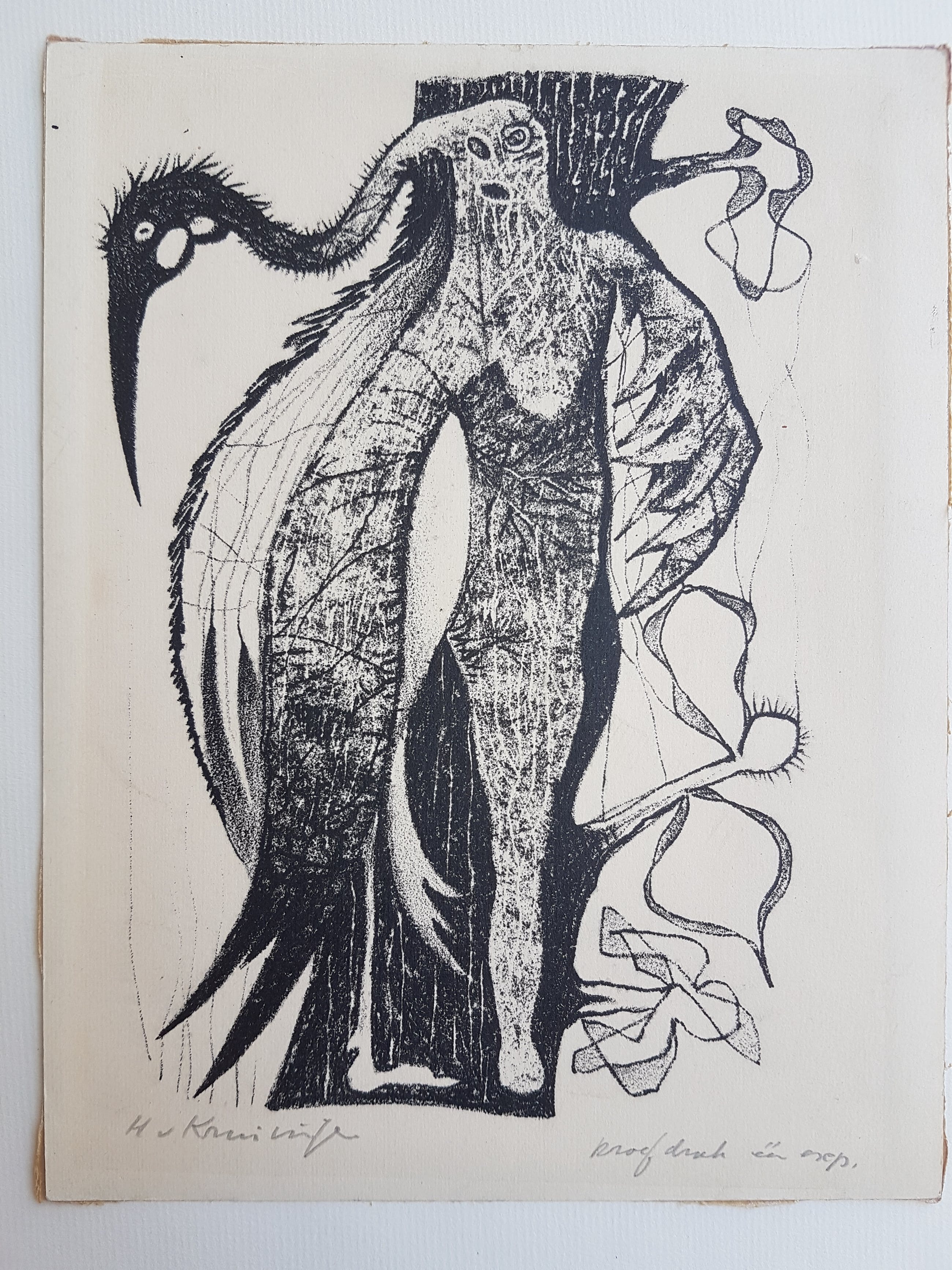 Wat lichte roestvlekjes, monochr. litho met montagesporen op achterzijde