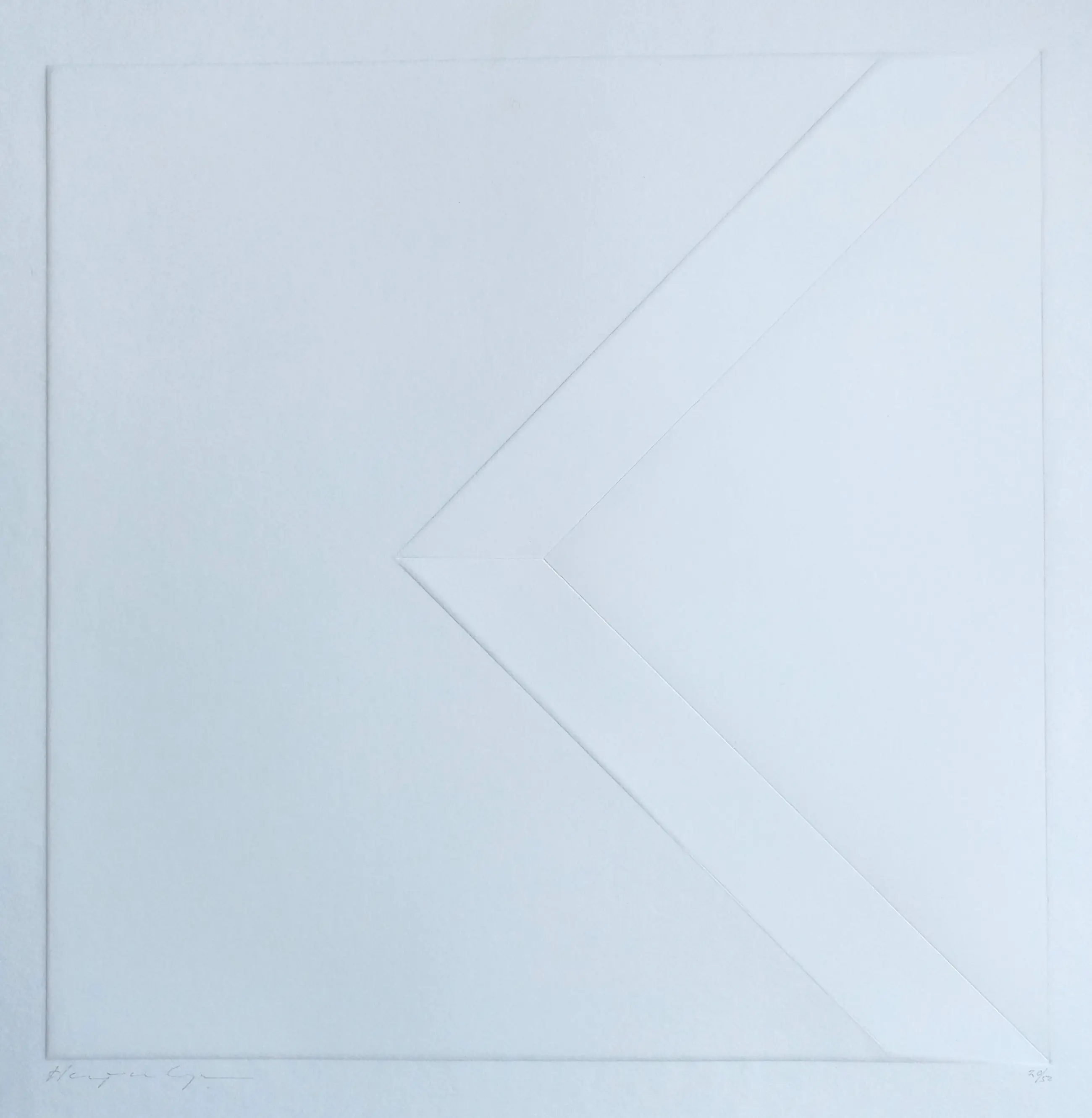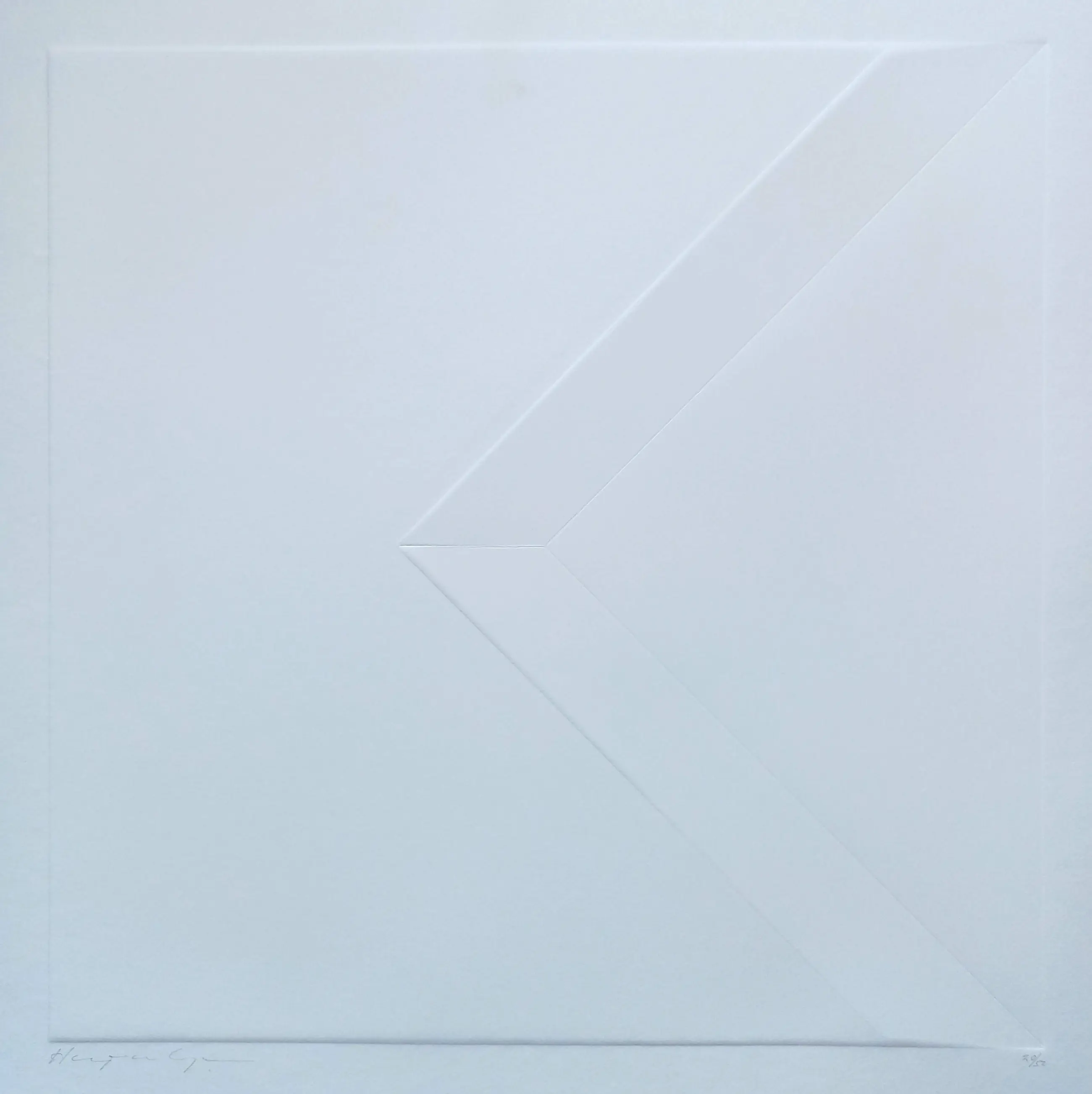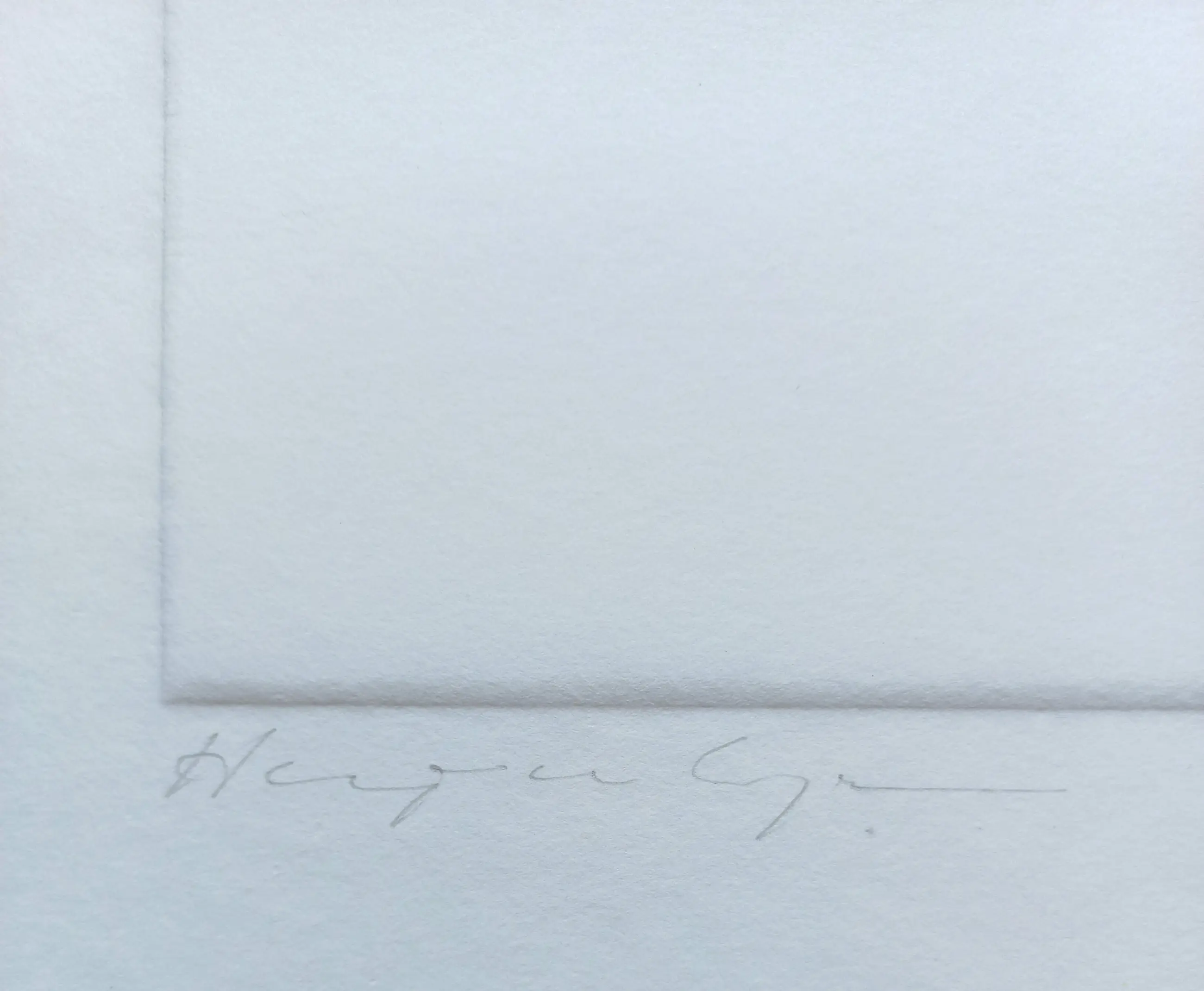 Prachtige reliëfdruk van Harry van Kuyk, de uitvinder ervan (de reliëfdruk). Reliëfdruk in zeer dik papier, met potlood gesigneerd en genummerd (20/52). In zeer goede conditie.