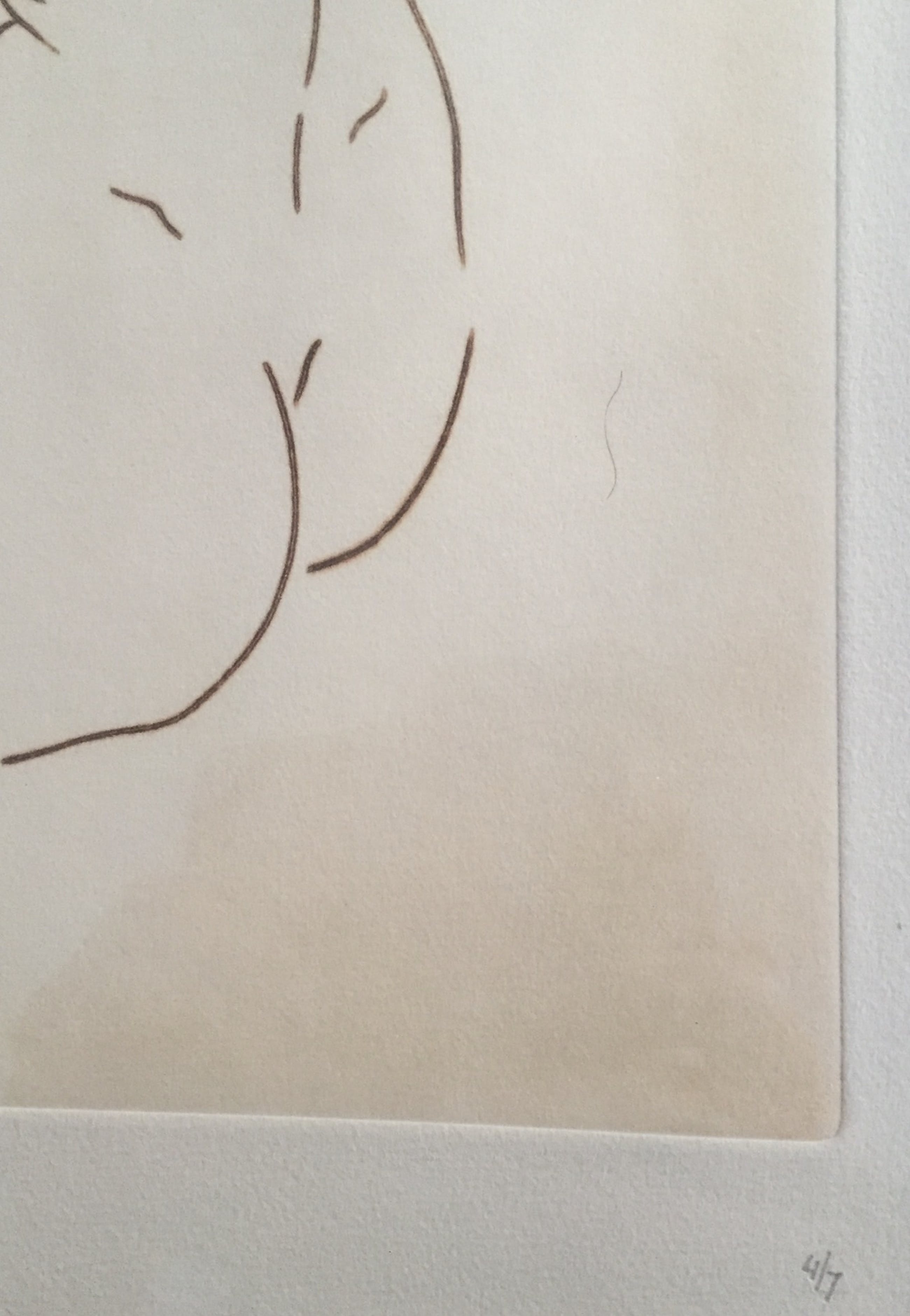 Het gaat hier om een BIJZONDERE DROGE NAALD ETS van een werk uit de serie Nymph( 1996 ) in sepia afgedrukt op geschept papier in een kleine oplage(1 t/m 5). Prenten uit de serie Nymph van Harrie van Kuyk worden doorgaans aangeboden als zeefdruk.