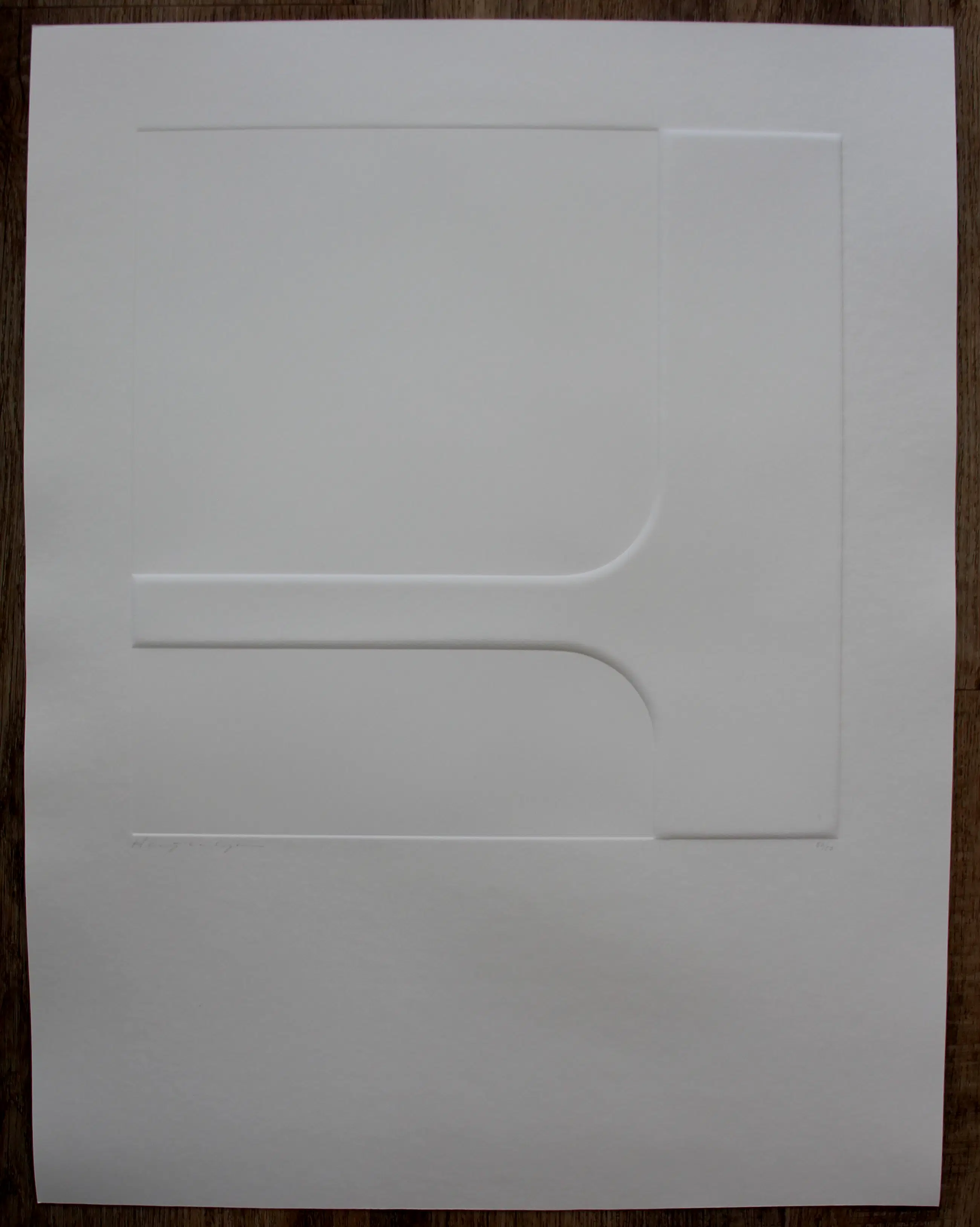 Reliëfdruk van Harry van Kuyk. Voorstelling van een geometrische compositie. Oplage: 20/52. Afmetingen blad: H65 x b50cm. Afmetingen voorstelling: H38 x b38cm. Het werk is linksonder gesigneerd door de kunstenaar. De authenticiteit van het aangeboden werk wordt volledig gegarandeerd. Een certificaat van echtheid kan, op aanvraag, worden gemaild.