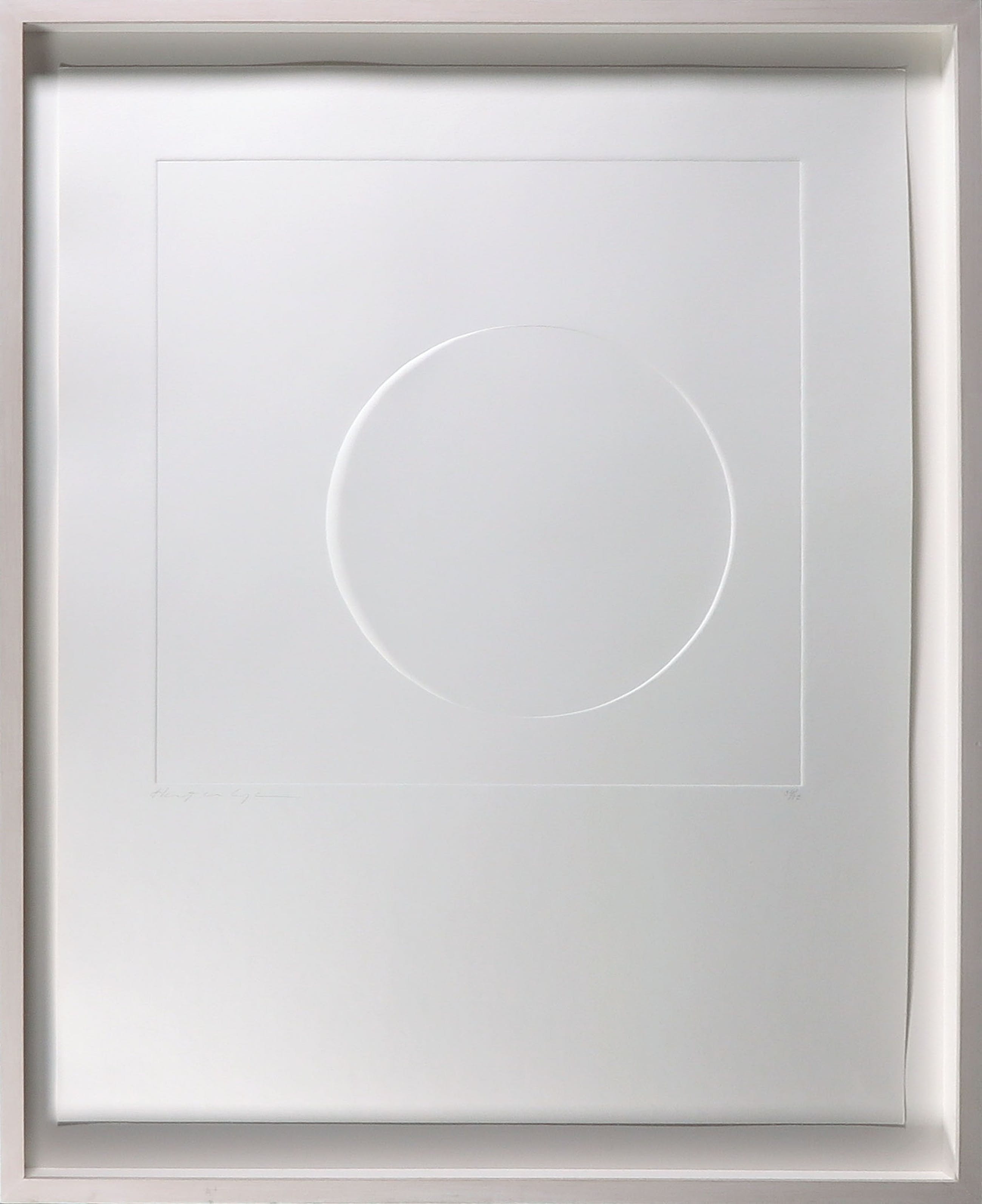 Mooie reliëfdruk uit het Groot Abecedarium uit 1973. Met de hand gesigneerd en genummerd. Ingelijst in een strakke en stevige vitrinelijst