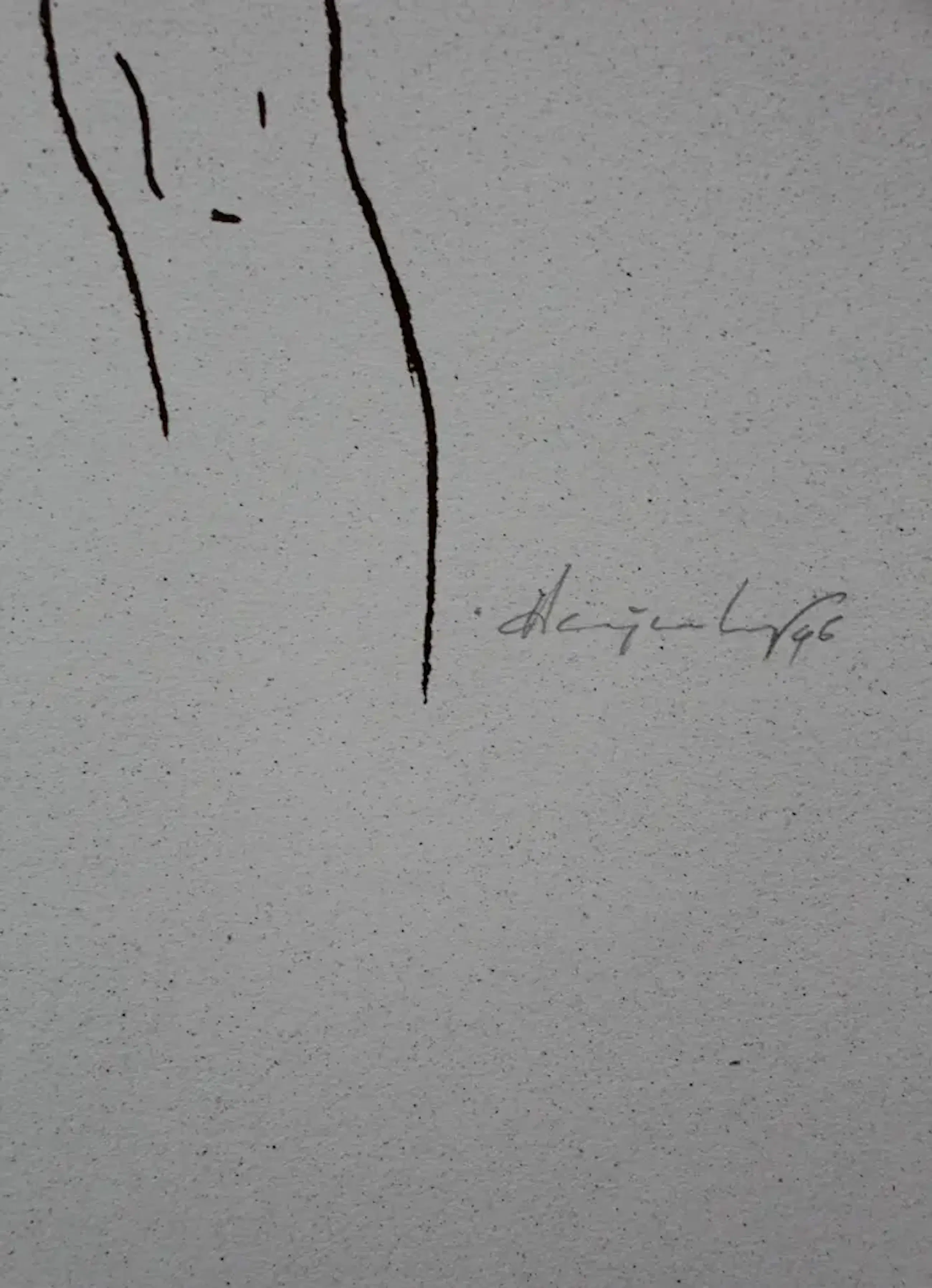 Zeefdruk op Amerikaans papier Confetti 280 grams handgeschept papier van Harry van Kuyk. Jaar: 1996. Afmetingen blad: H50.5 x b32.5 cm. Afmetingen beeld: H35 x b21 cm. Het werk is midden onder, met potlood, gesigneerd door de kunstenaar. De authenticiteit van het aangeboden werk wordt volledig gegarandeerd. Een certificaat van echtheid kan, op aanvraag worden gemaild.