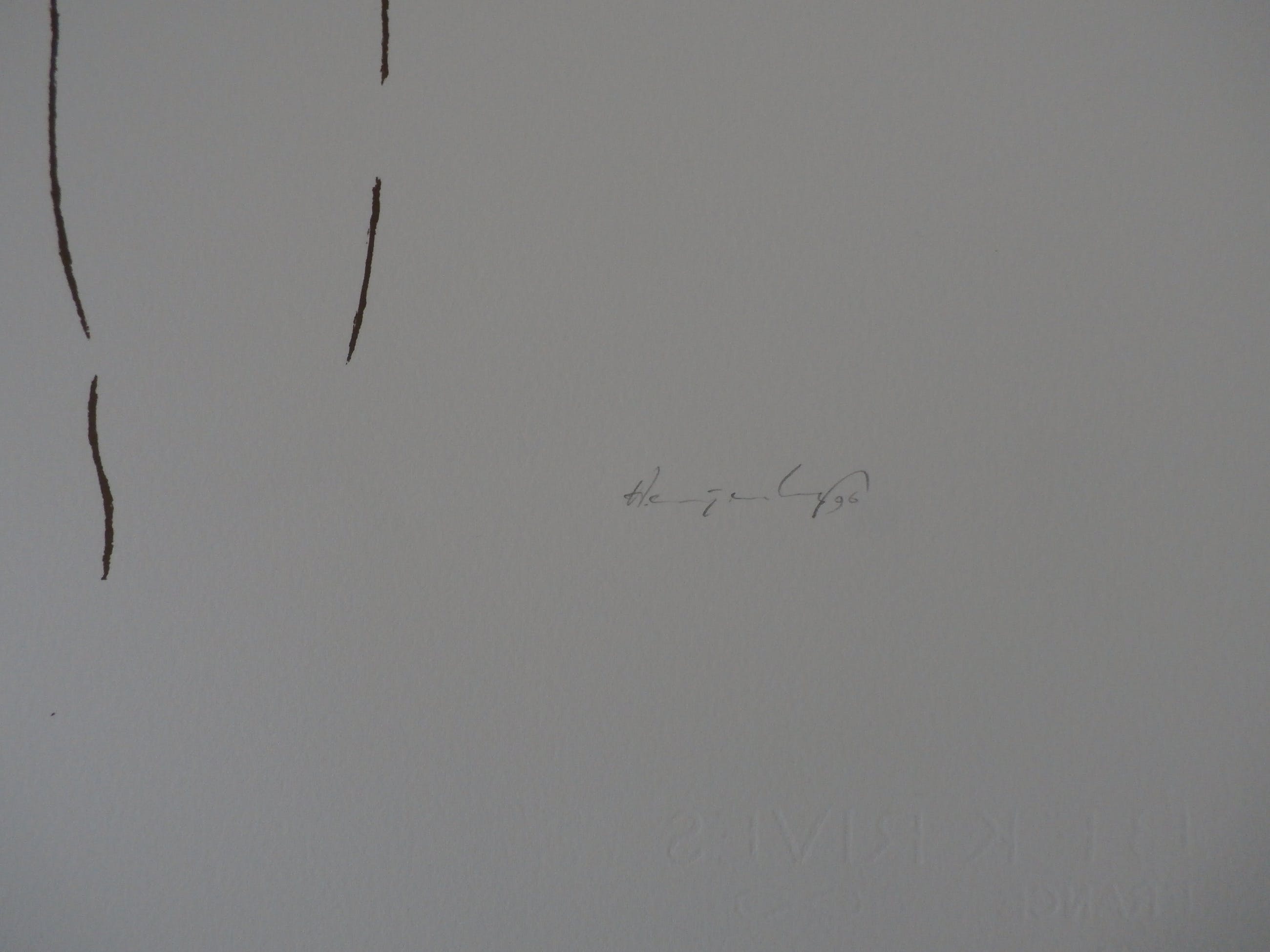 Zeefdruk op handgeschept papier van Harry van Kuyk. Jaar: 1996. Nummer: E.A. Afmetingen blad: H50.5 x b32.5 cm. Afmetingen beeld: H37 x b21 cm. Het werk is middenonder, met potlood, gesigneerd door de kunstenaar. De authenticiteit van het aangeboden werk wordt voor 100% gegarandeerd. Een certificaat van echtheid kan, op aanvraag worden meegestuurd.