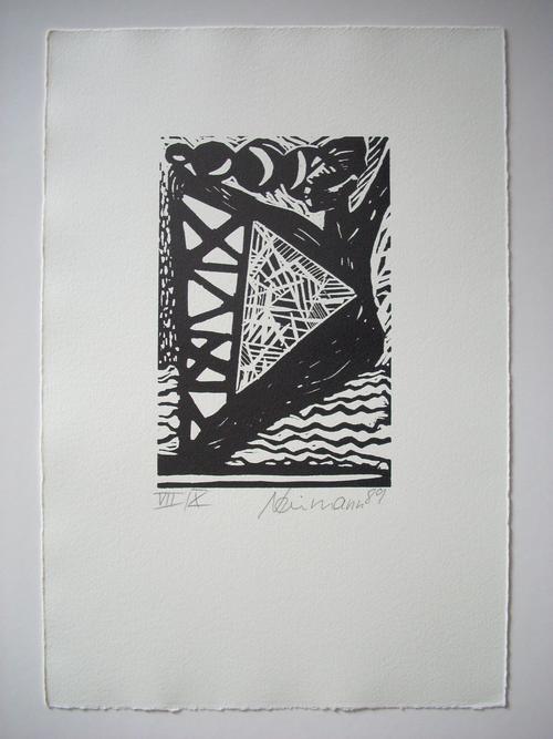 Original-Holzdruck von 1989, gedruckt auf festem Bütten mit gerissenem Rand (sehr schön), vom Künstler mit Bleistift handsigniert, datiert und nummeriert, hier Exemplar-Nr. VI / X. Format: 20 x 13 auf 39,5 x 26,5 cm. Sehr guter Erhaltungszustand. Weitere Arbeiten aus dieser Serie im Angebot. Frühe, für diese Zeit typische Arbeit dieses Künstlers. Verkauf aus einer Privatsammlung (Sammlungsauflösung), kein Umtausch, keine Gewähr. Beachten Sie bitte auch meine weiteren eART-Einlieferungen - es lohnt sich !