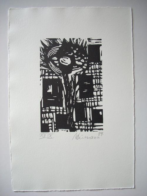 Original-Holzdruck von 1989, gedruckt auf festem Bütten mit gerissenem Rand (sehr schön), vom Künstler mit Bleistift handsigniert, datiert und nummeriert, hier Exemplar-Nr. VI / X. Format: 20 x 13 auf 39,5 x 26,5 cm. Sehr guter Erhaltungszustand. Weitere Arbeiten aus dieser Serie im Angebot. Frühe, für diese Zeit typische Arbeit dieses Künstlers. Verkauf aus einer Privatsammlung (Sammlungsauflösung), kein Umtausch, keine Gewähr. Beachten Sie bitte auch meine weiteren eART-Einlieferungen - es lohnt sich !