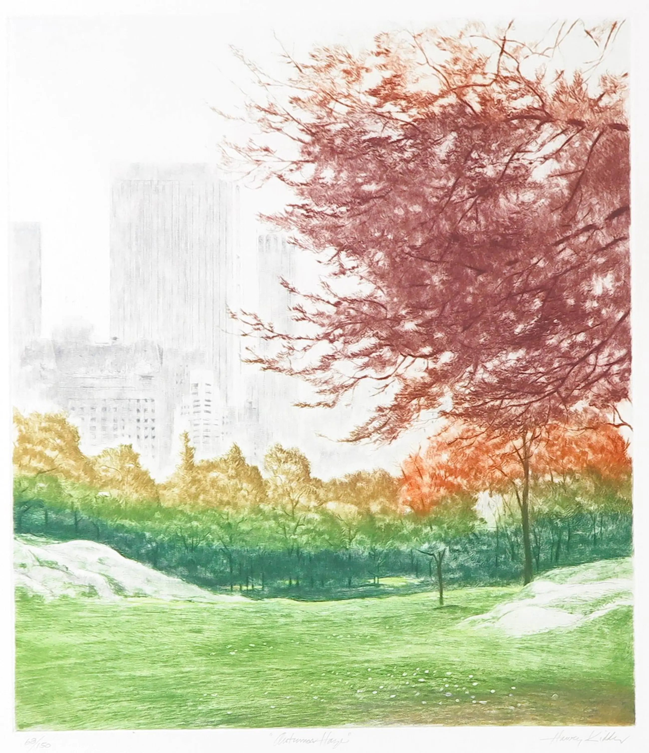 Radierung und Aquatinta des amerikanischen Künstlers Harvey Kidder. Handsigniert mit Bleistift.
