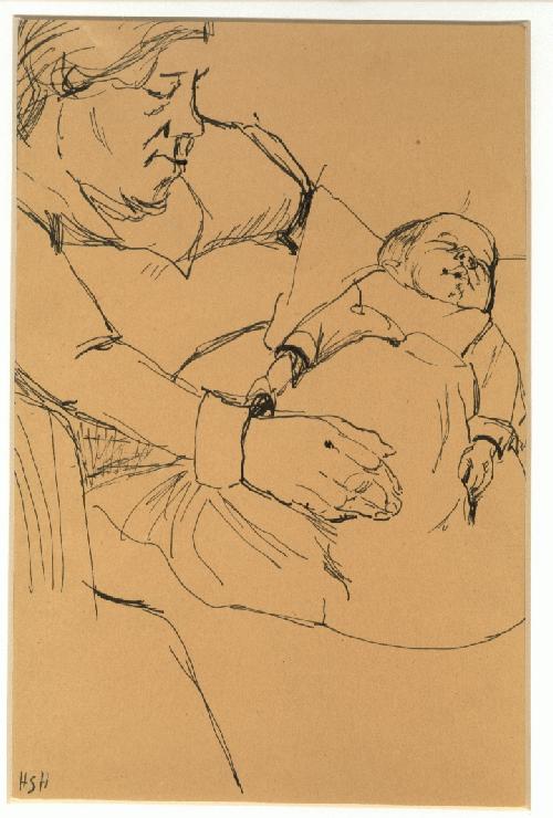 Hedwig Holtz-Sommer - Hedwig Holz-Sommer Amme mit Kind Tusche mongr.