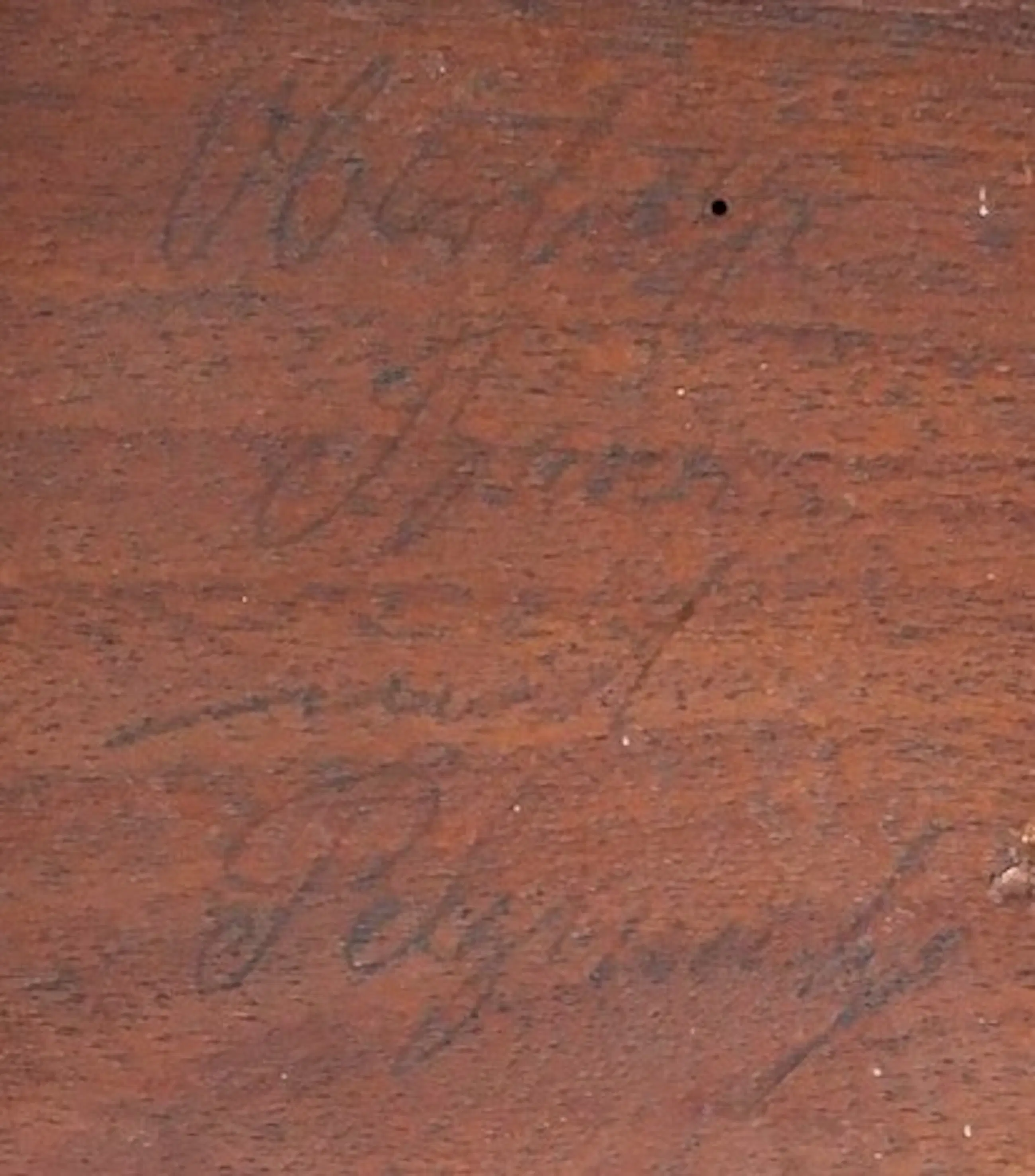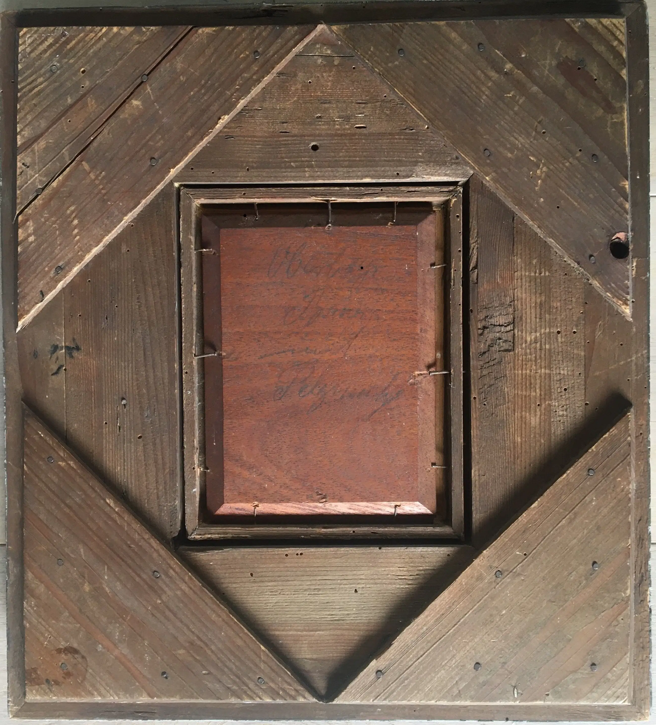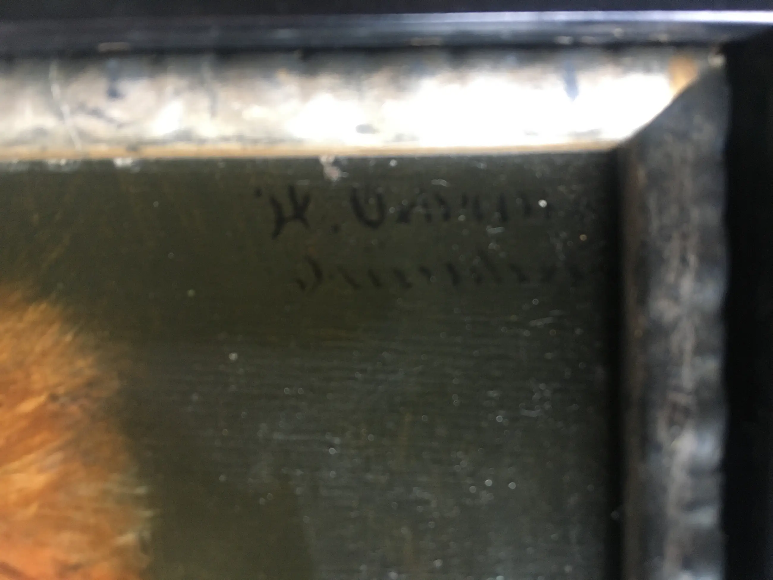 Kleine beschadiging van de verflaag, links boven. Lijst heeft beschadigingen