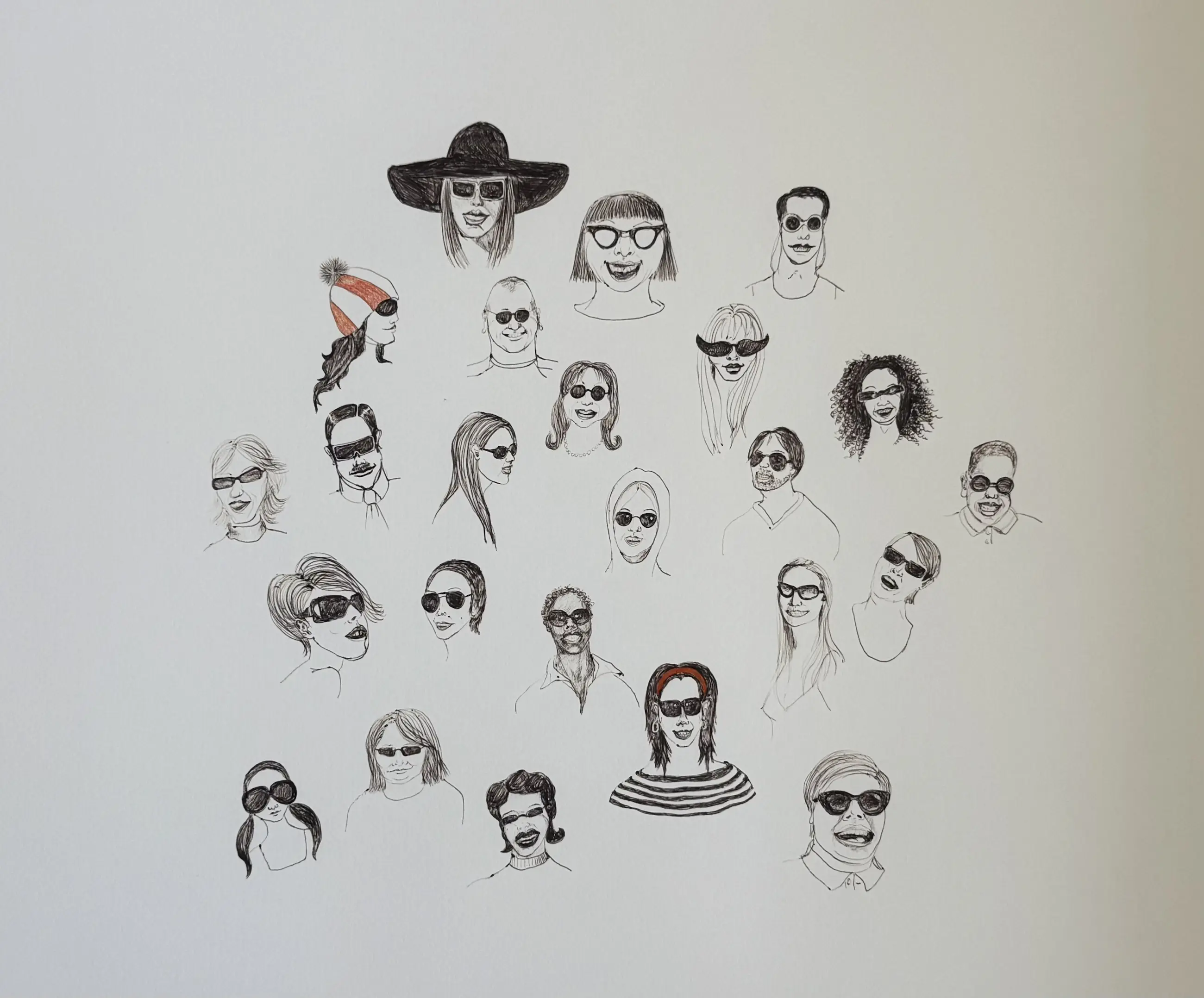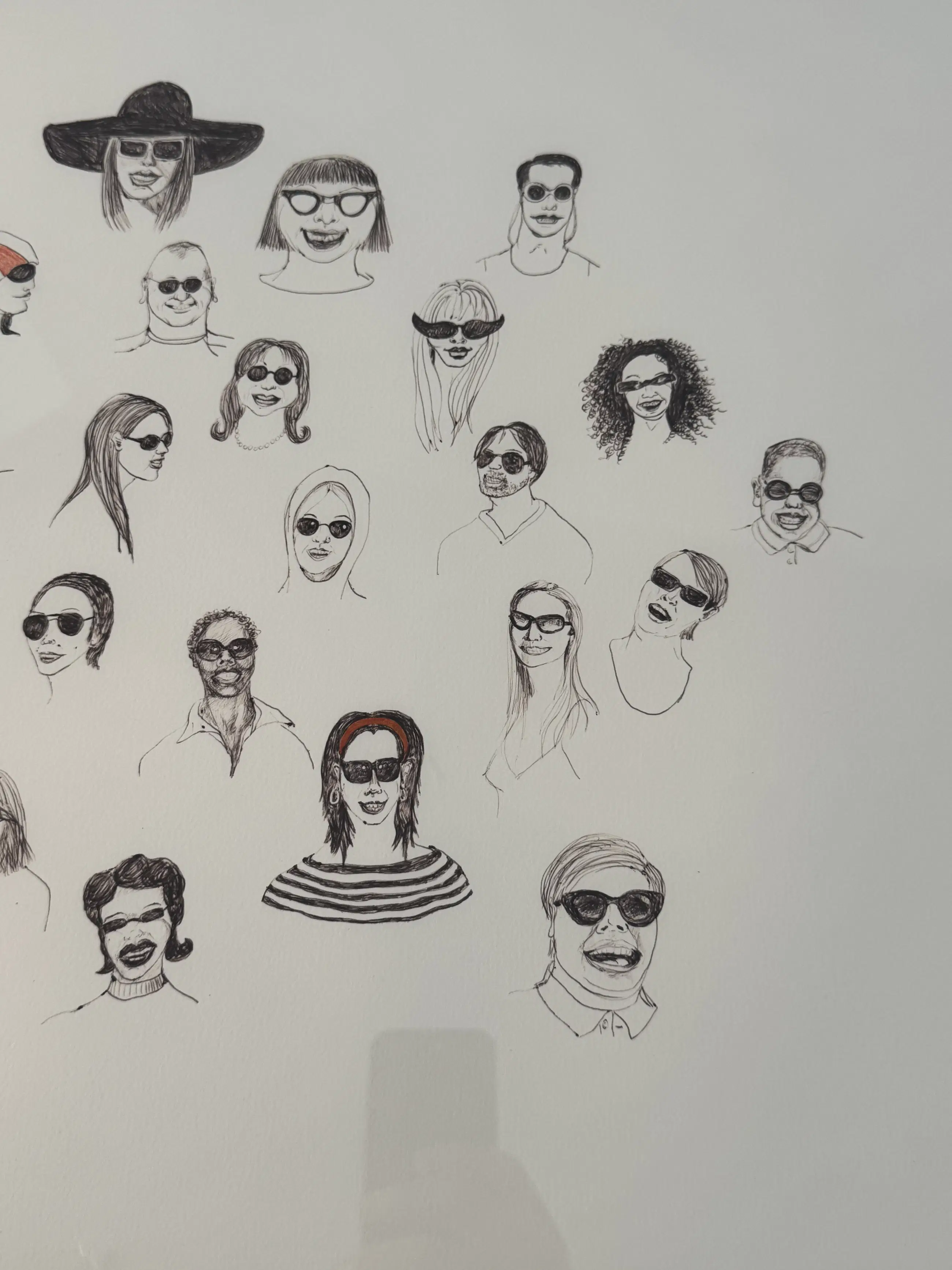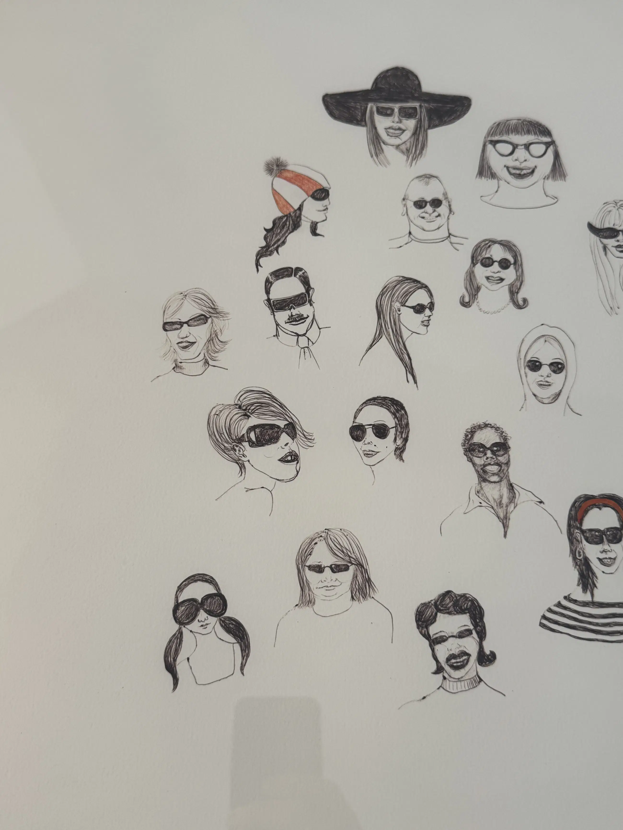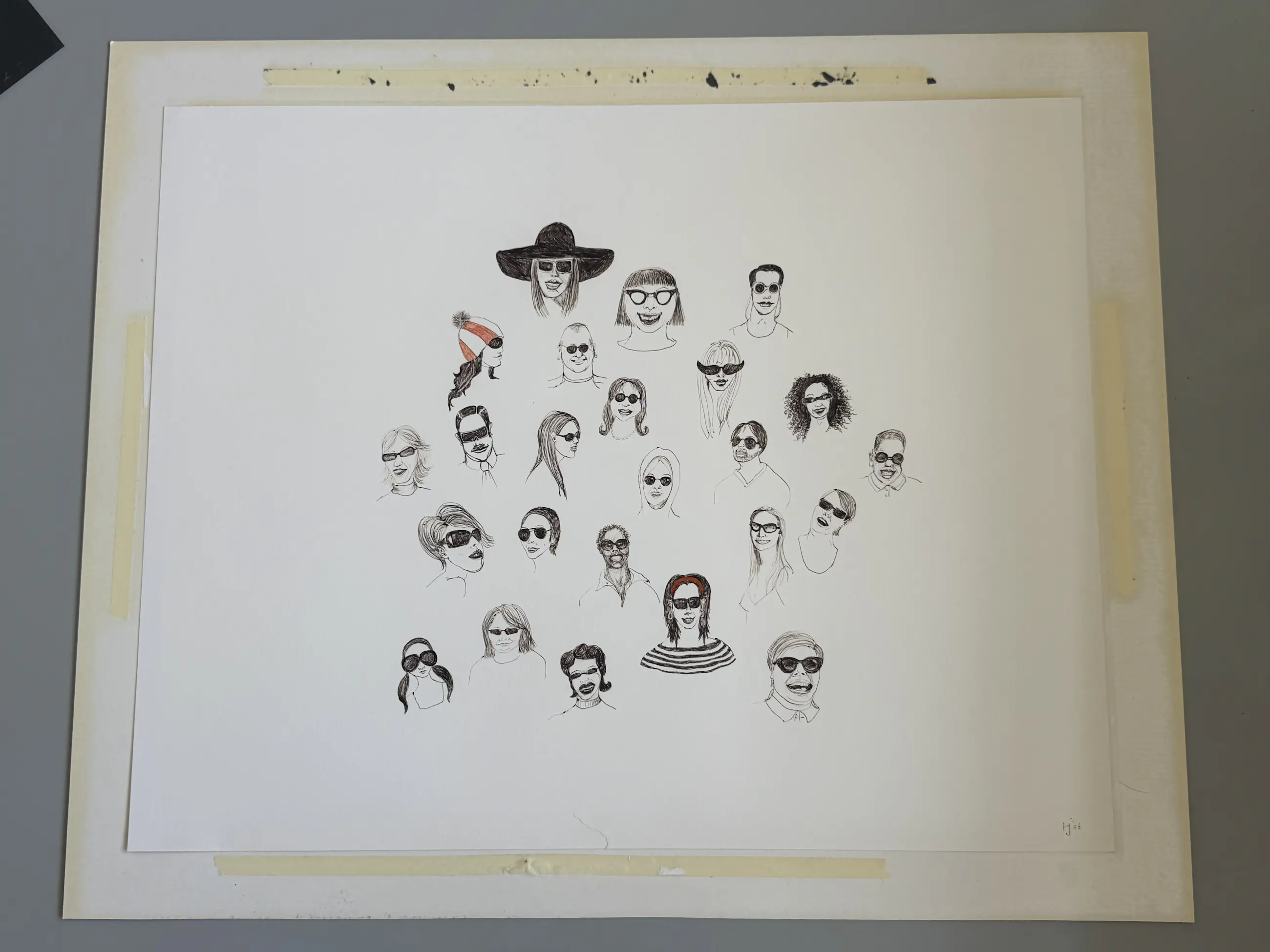 De tekening is door mijn - wijlen - vader aangeschaft bij Hedwige zelf. Hedwige’s moeder was klant in de optiekwinkel van mijn vader in Wassenaar, en Hedwige studeerde begin jaren ‘90 aan de Kunstacademie. In die periode heeft mij vader al enkele werken van Hedwige gekocht. Toen Hedwige in 2006 met deze ‘zonnebrillen’ aankwam, was het duidelijk dat hij deze tekening over zou nemen.