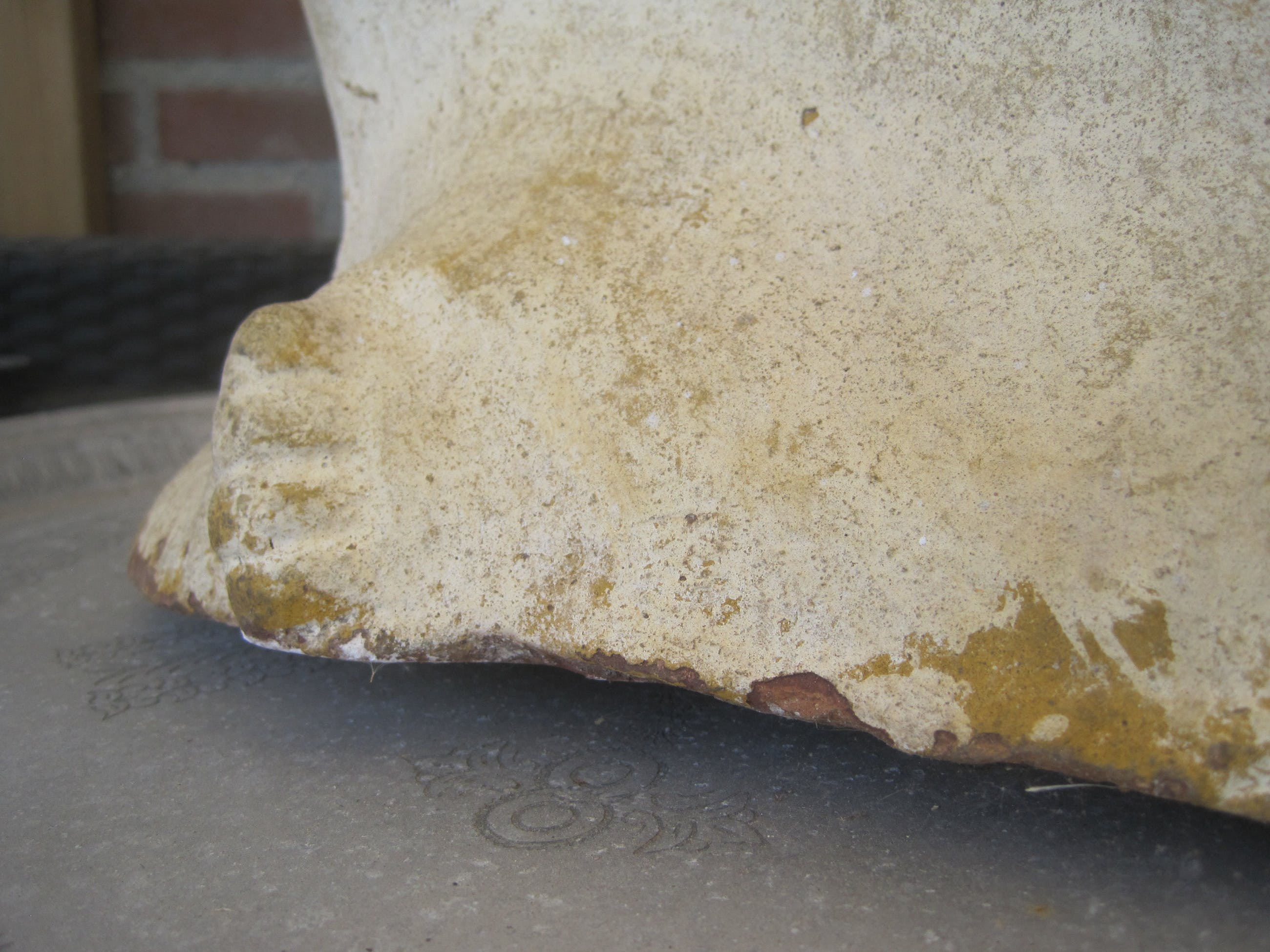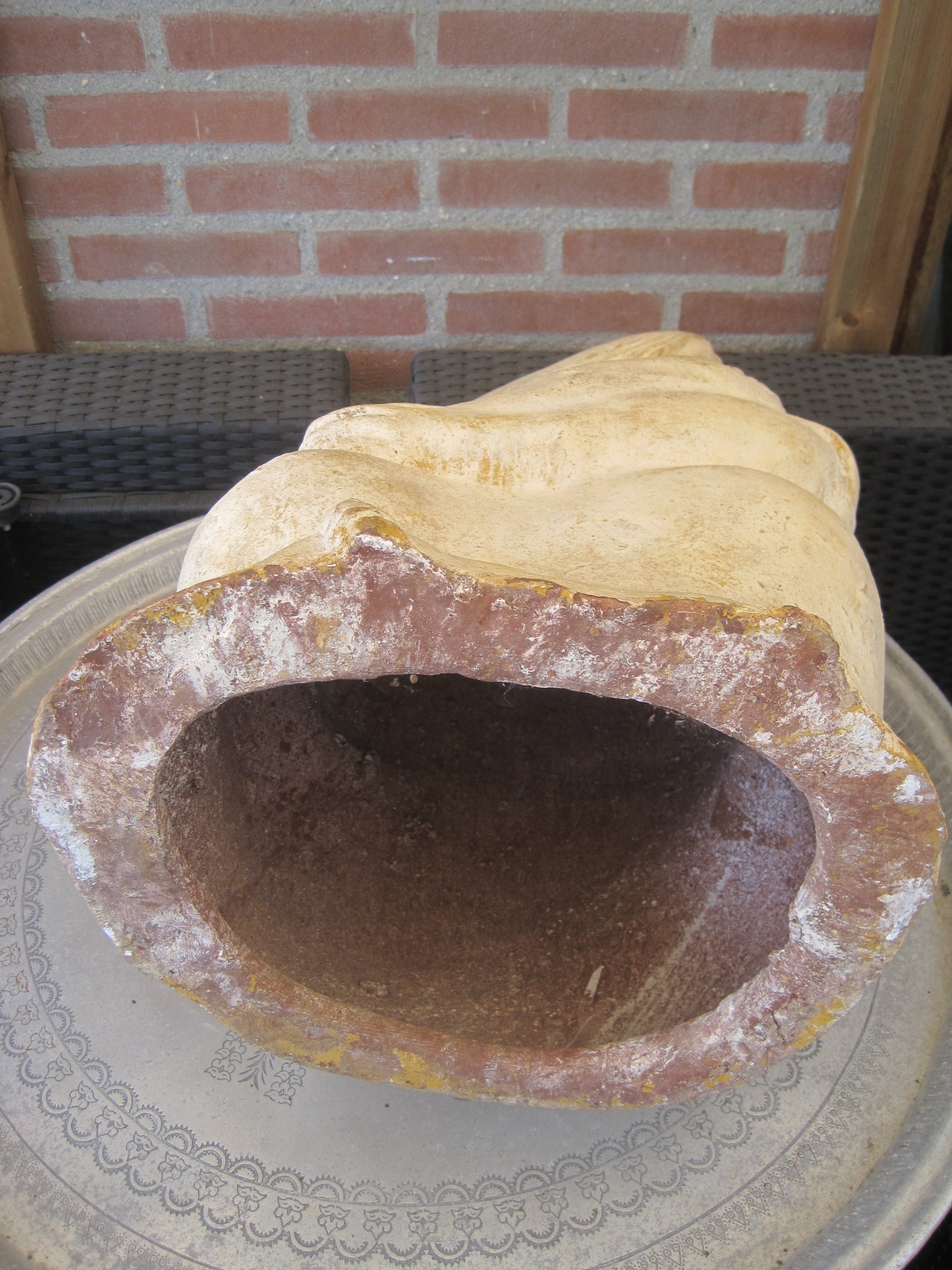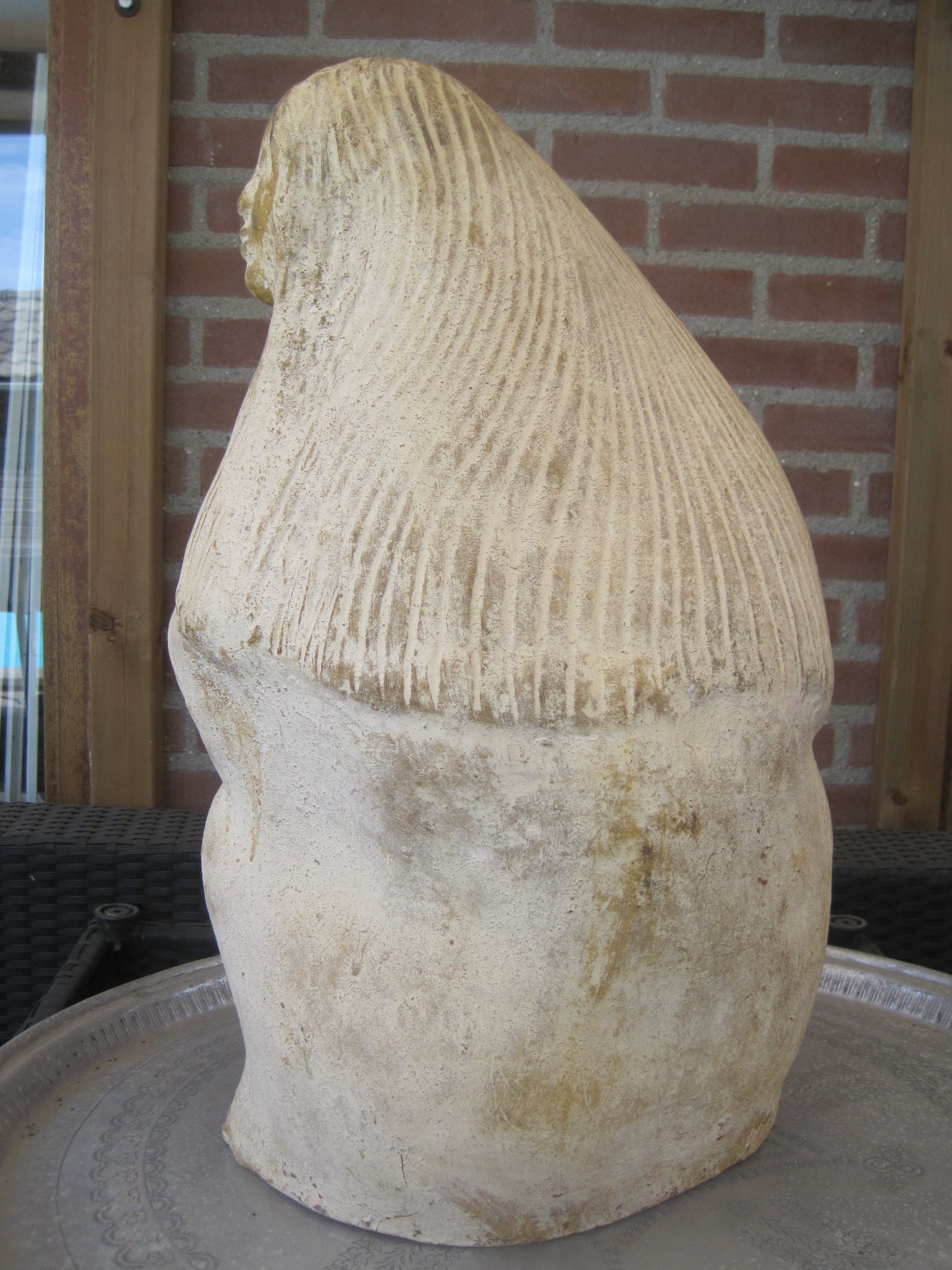 Een uniek, groot en zwaar terracotta beeld van de moeder Maria met Kind uit Mexico Zuid Amerika. Het beeld ademt de sfeer van de plastieken van Francisco Zuniga. Het beeld is gemaakt van rode klei en eerst beschilderd met een okerkleurige verf, daarna met een beige kleurige verf. Gesigneerd op de achterzijde, helaas voor mij onleesbaar. Verkeert in een goed staat met 'n chipje aan de voet. Dit beeld kan alleen worden afgehaald ivm het gewicht en de kwetsbaarheid van het materiaal. In de prijs is rekening gehouden met de afhaalkosten.