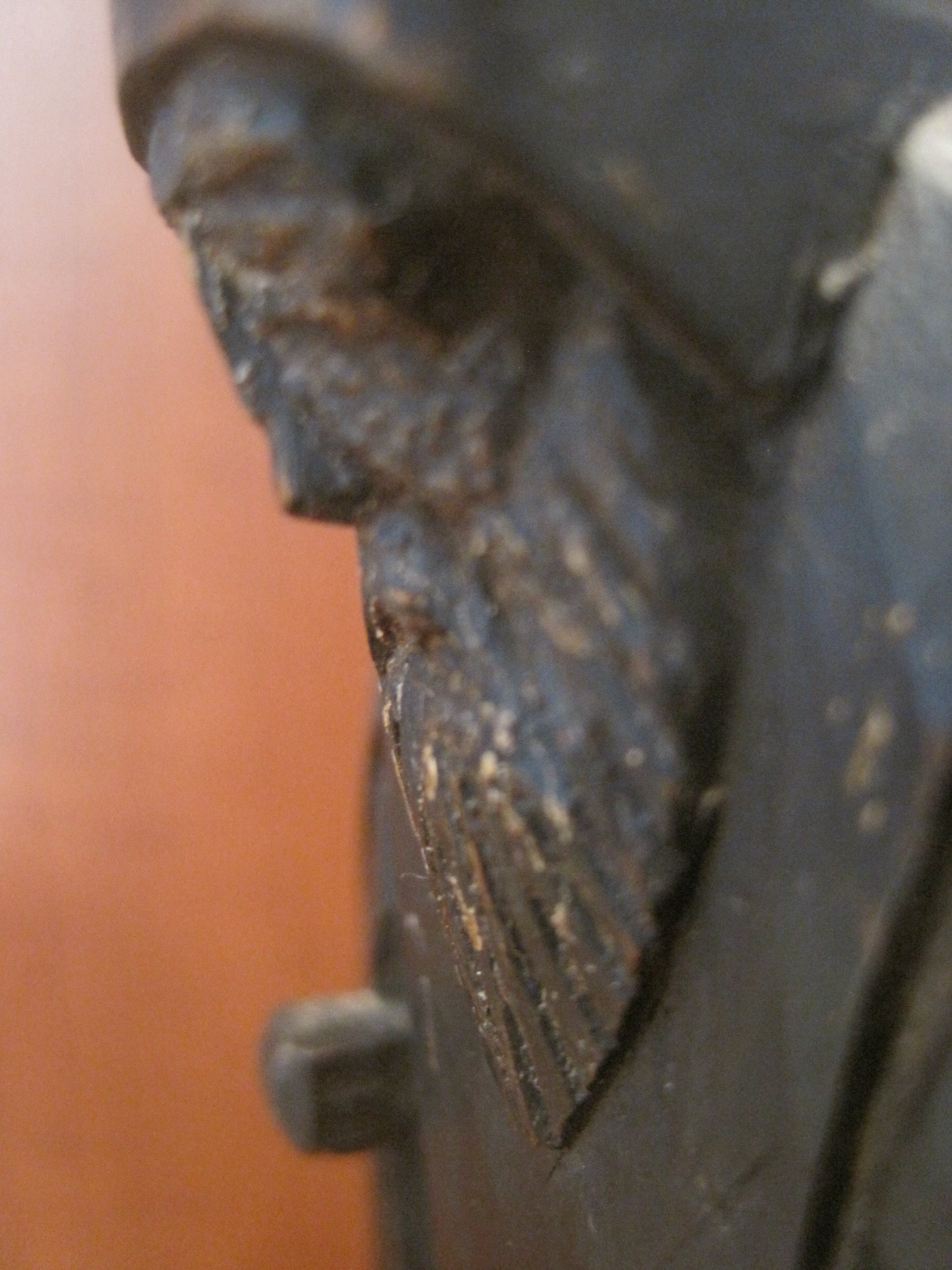 Aan de voorkant van de sokkel zijn nog vergulde resten te zien van de Cyrillische tekst die er op stond.