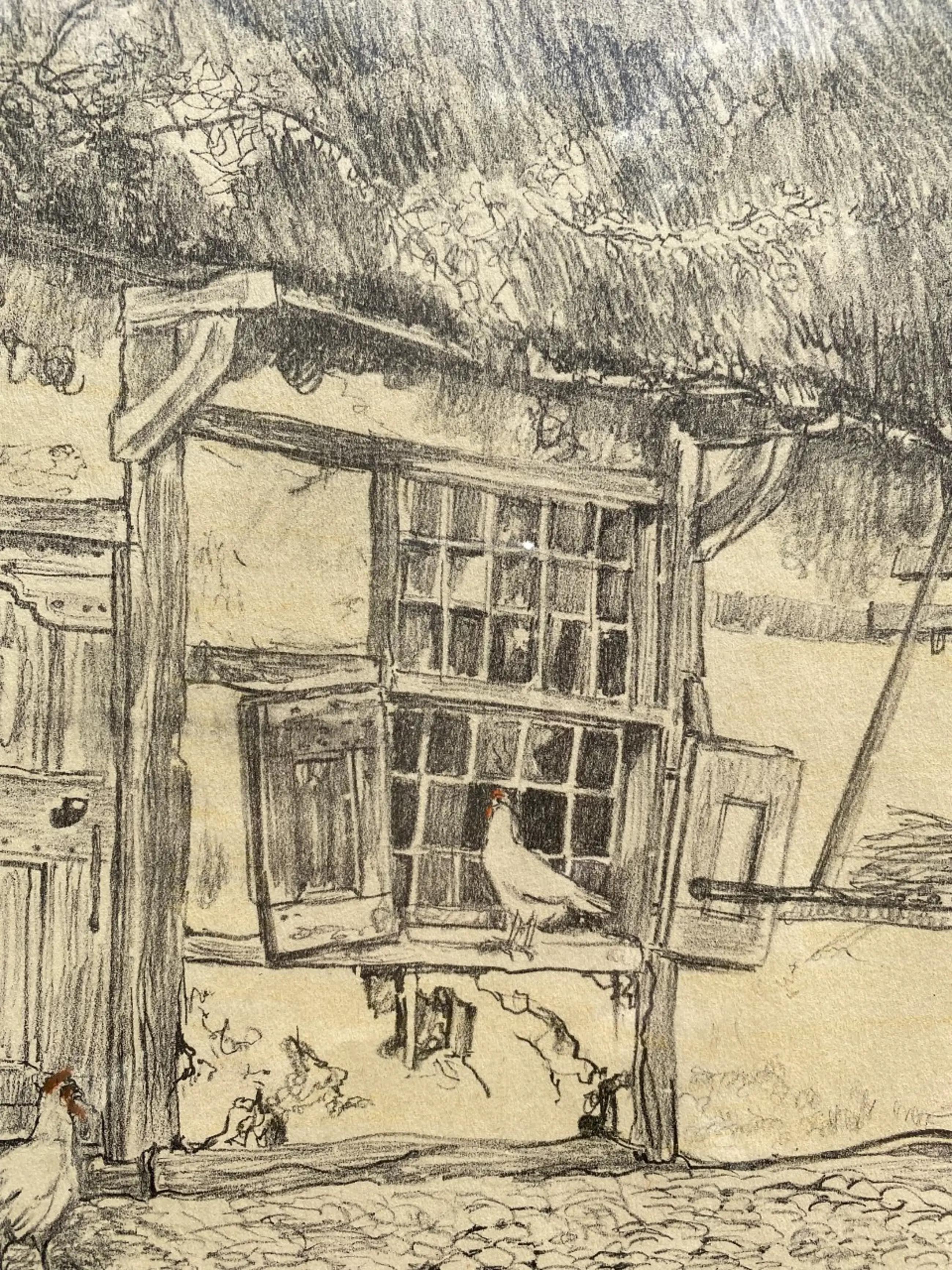 Conditie van de tekening is zeer goed, alleen de lijst heeft wat lichte beschadigingen.