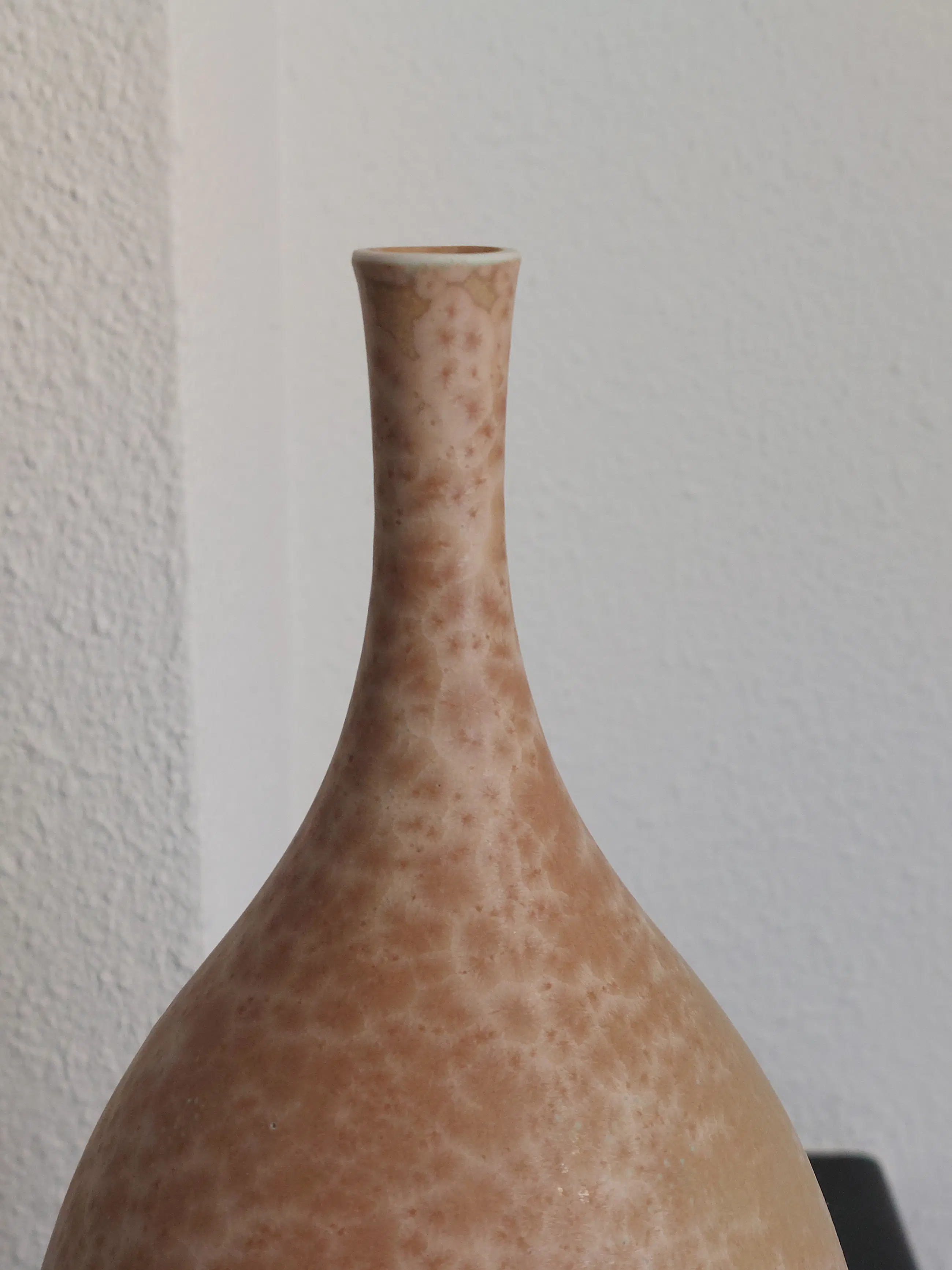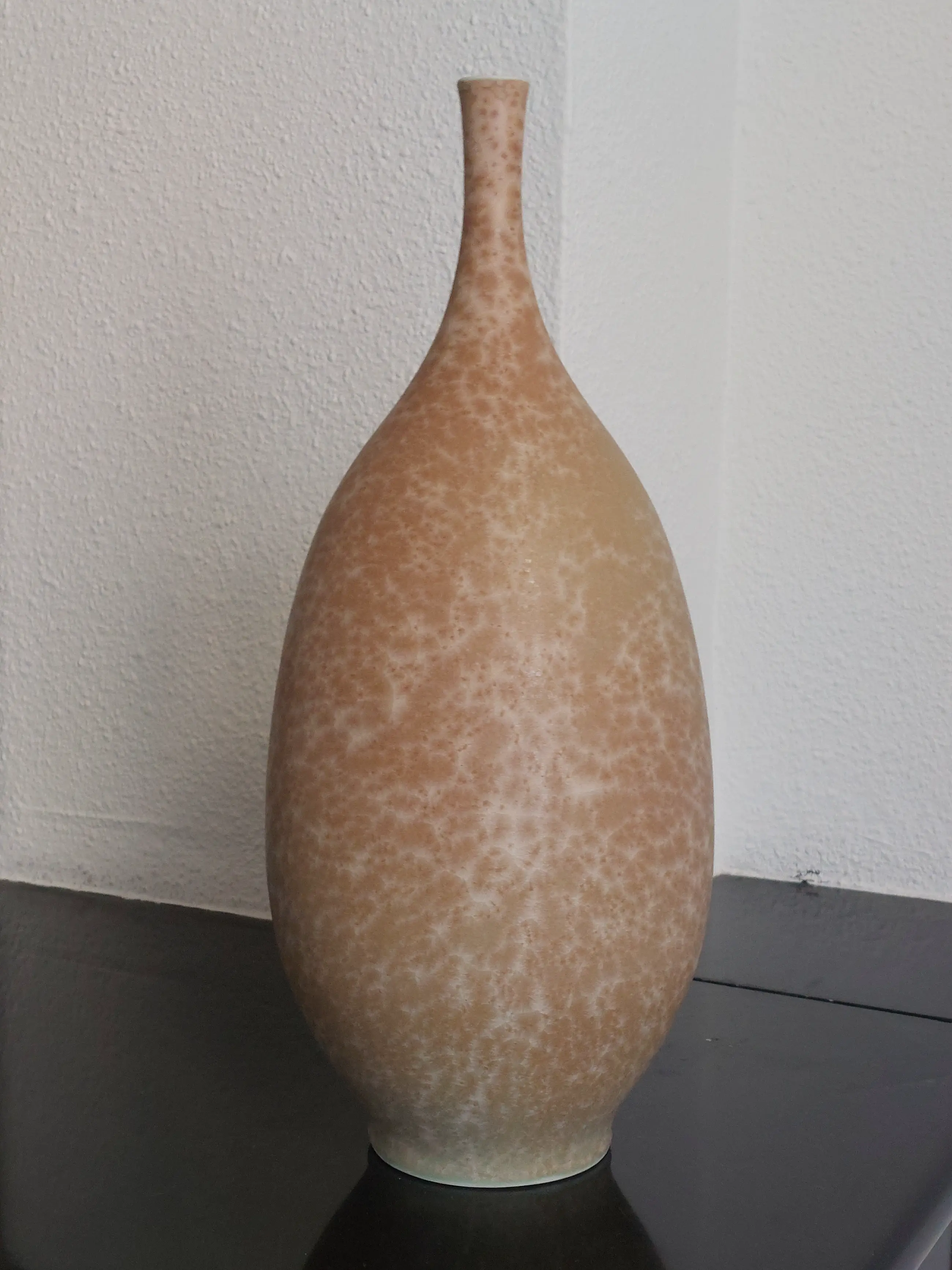 Vaas met smalle hals, hoogte 32 cm. in bruin/beige tinten.