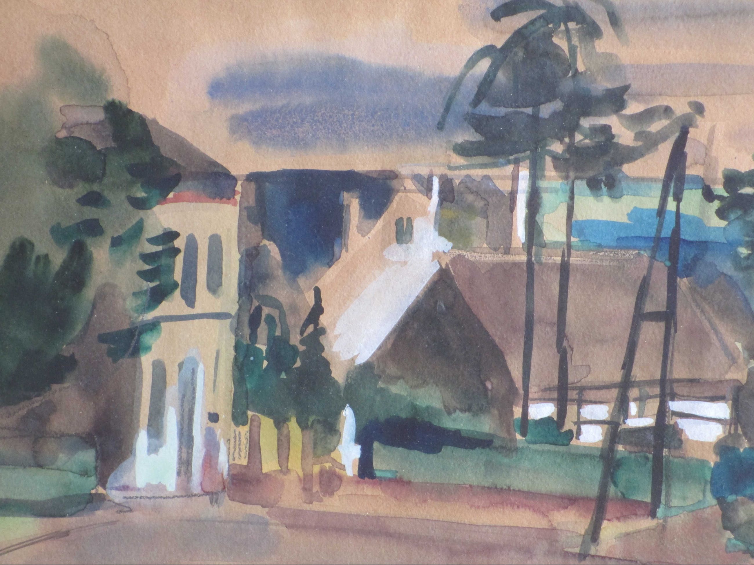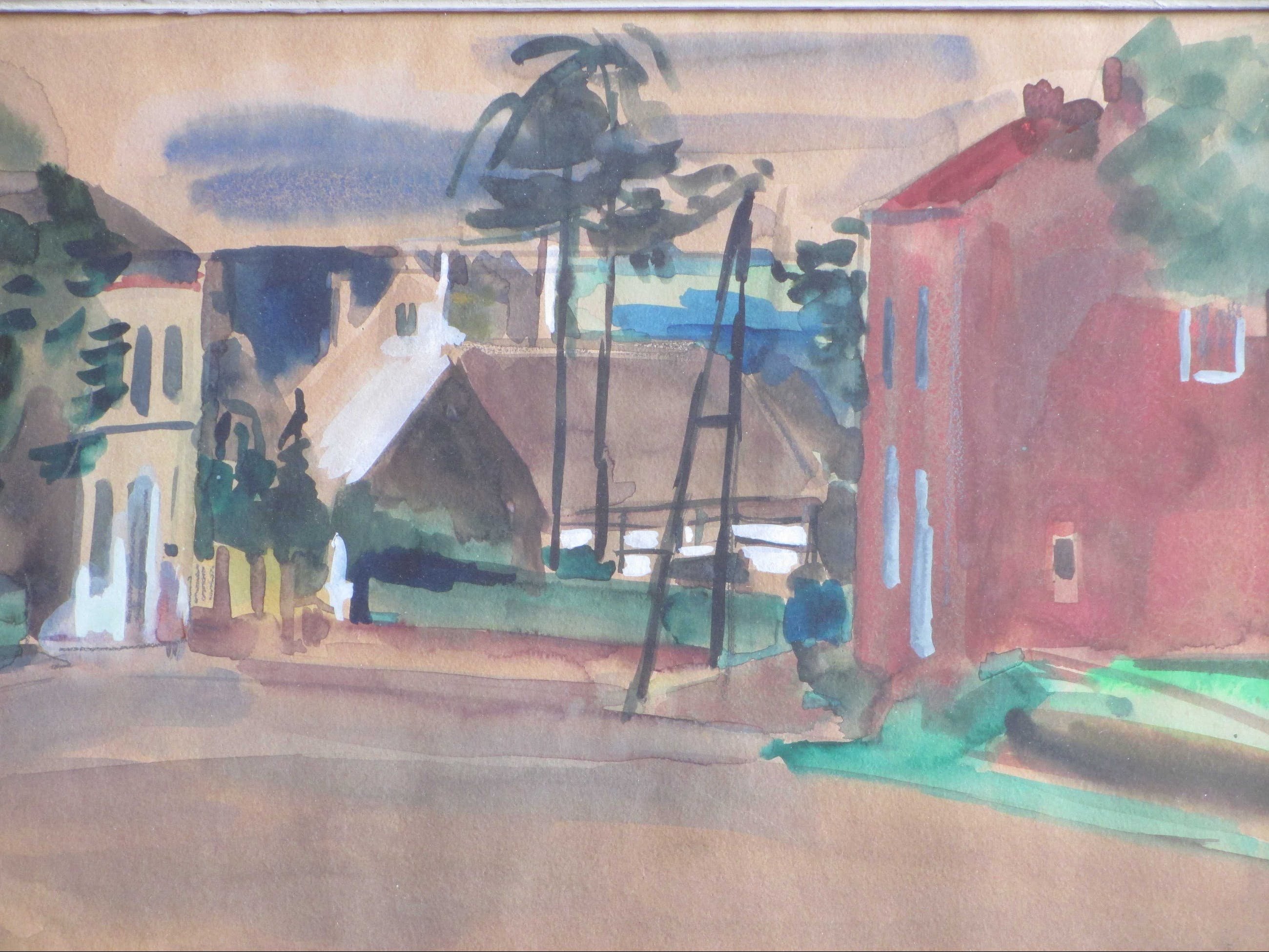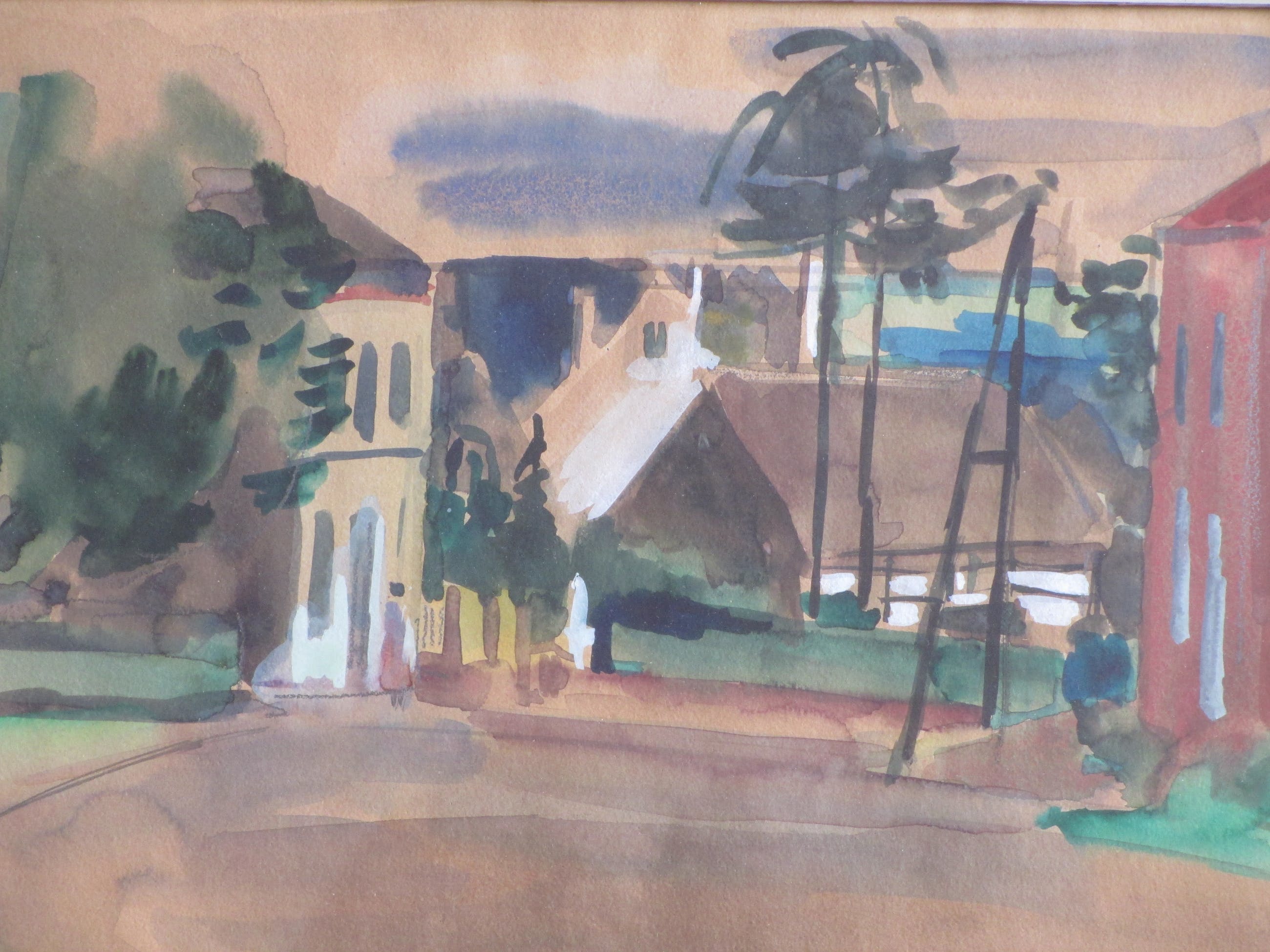 Gemengde techniek door Hein Stork. Voorstelling van een Frans dorpsgezicht Gelijst, beeldmaat 26x36, lijstmaat 36x46 Gesigneerd en gedateerd l.o.: 'H Stork '54' Authenticiteit volledig gegarandeerd.
