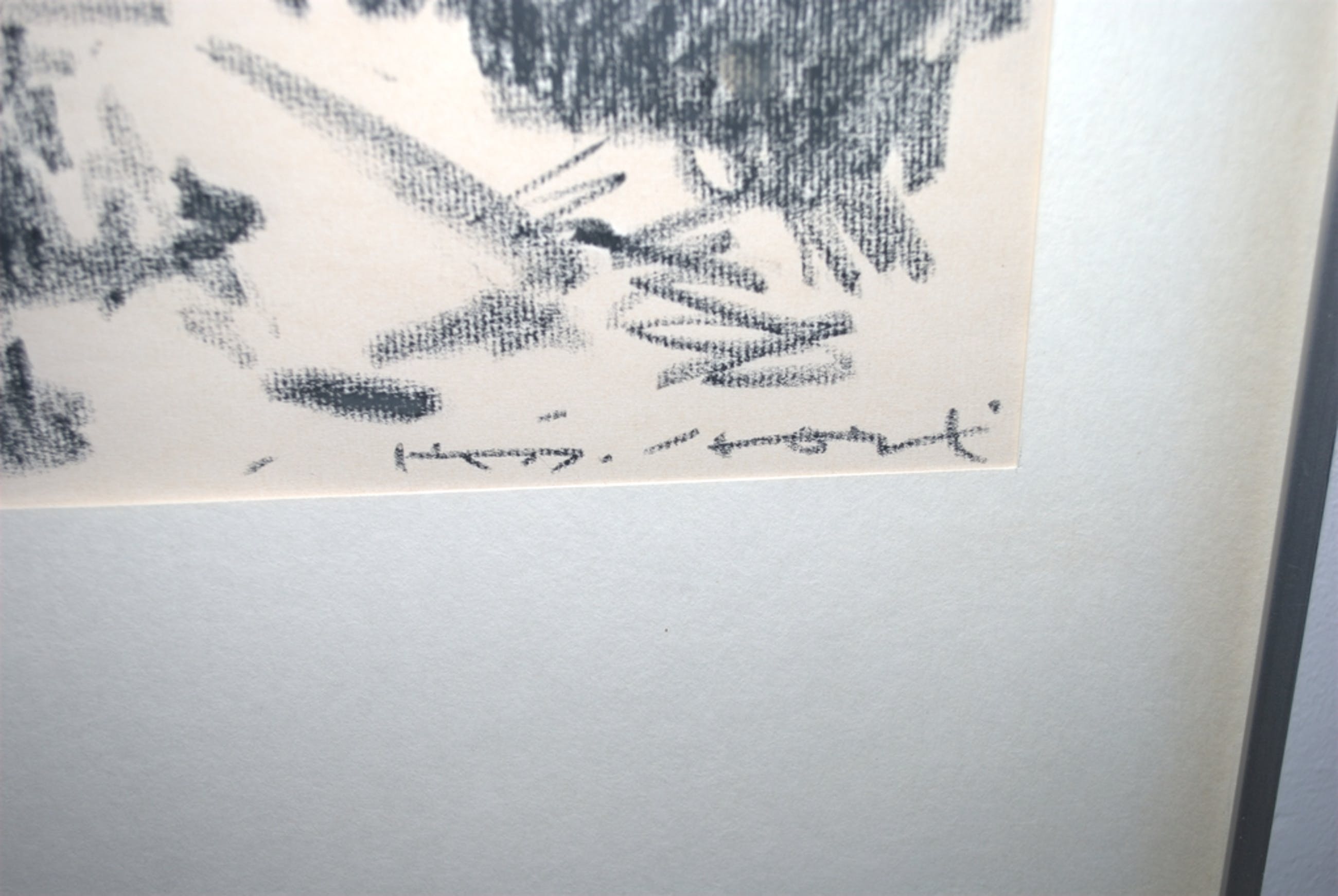 Achter passepartout en glas, in een alu lijst igst, 61x51 cm.