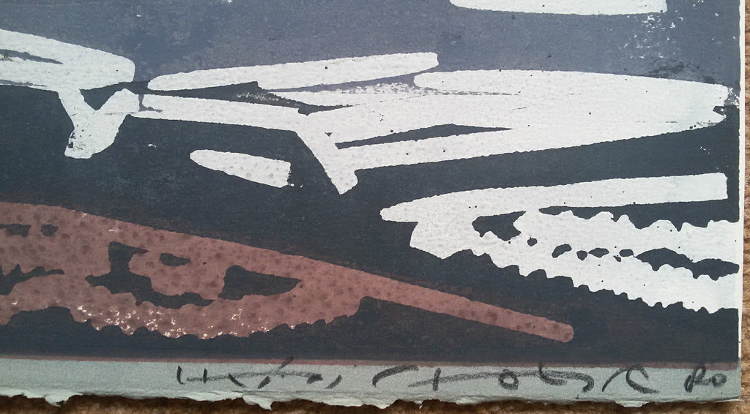 Karakteristieke linosnede van Hein Stork uit 1980. Met potlood gesigneerd, gedateerd en genummerd (4/X). Afkomstig uit de kunstcollectie van ABNAMRO; in zeer goede conditie.