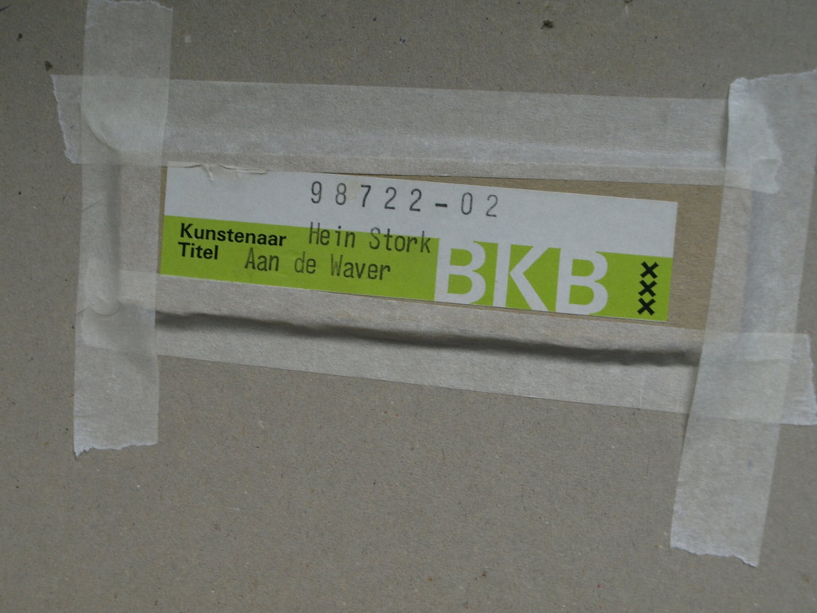 Het werk is niet (meer) ingelijst; het werk is aan de randen bevestigd (waarschijnlijk met dubbelzijdig tape) op karton.