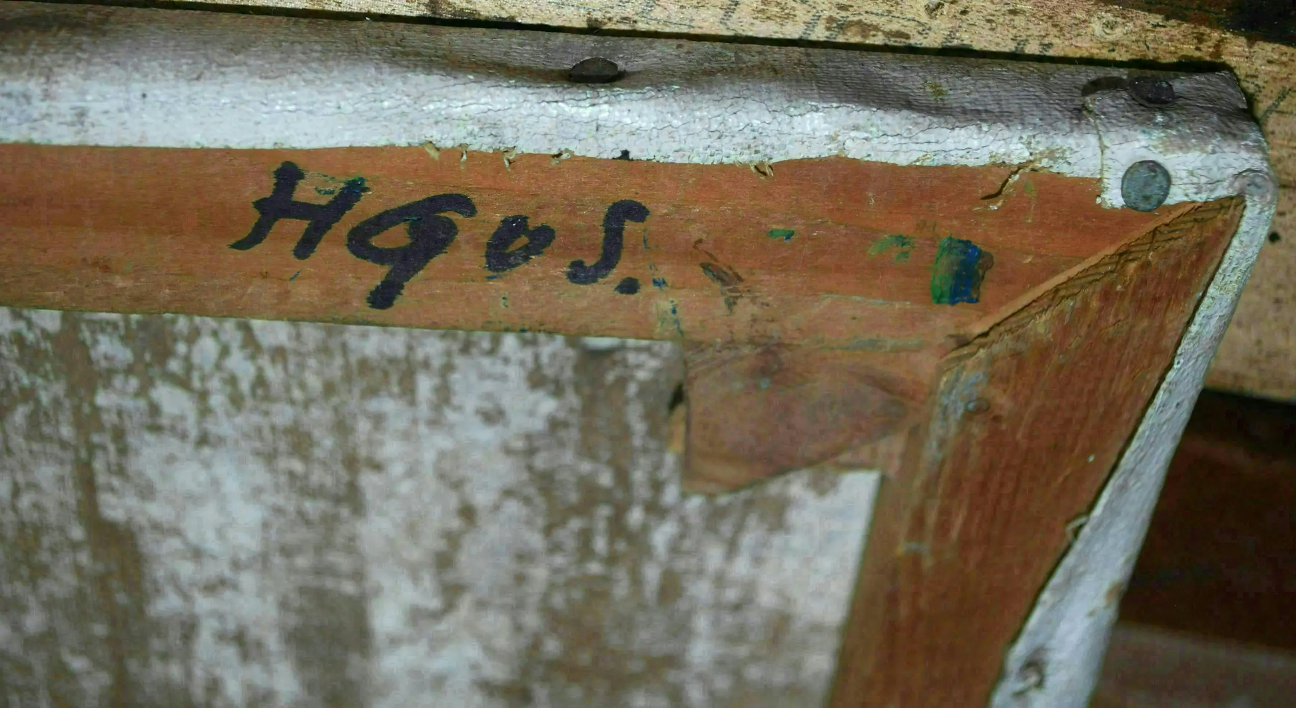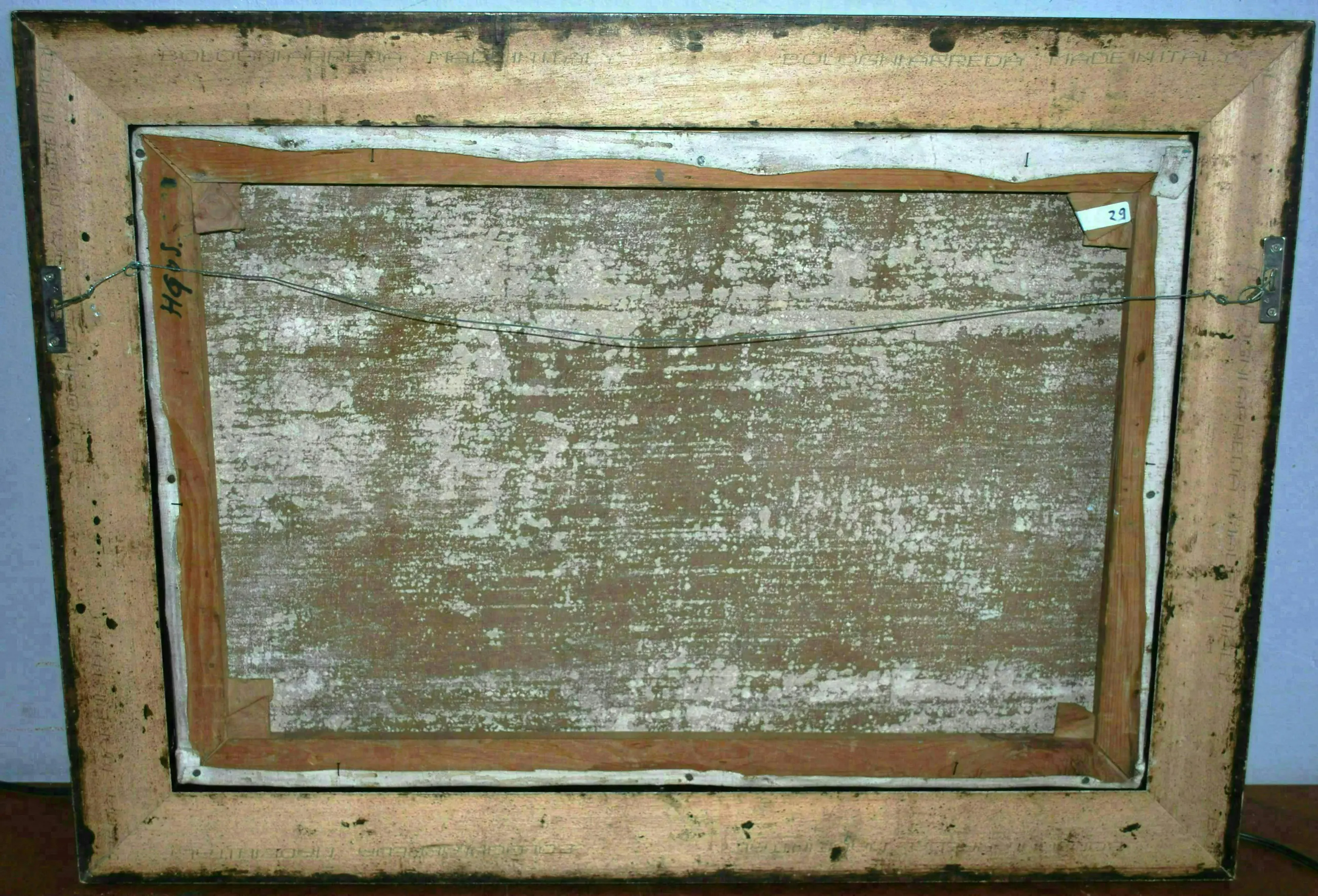 n.b. de achterzijde van het doek toont de doorslag van de grondering (gesso) door het gebruik van te weinig lijm - dit is niet van invloed op de voorzijde van het doek.