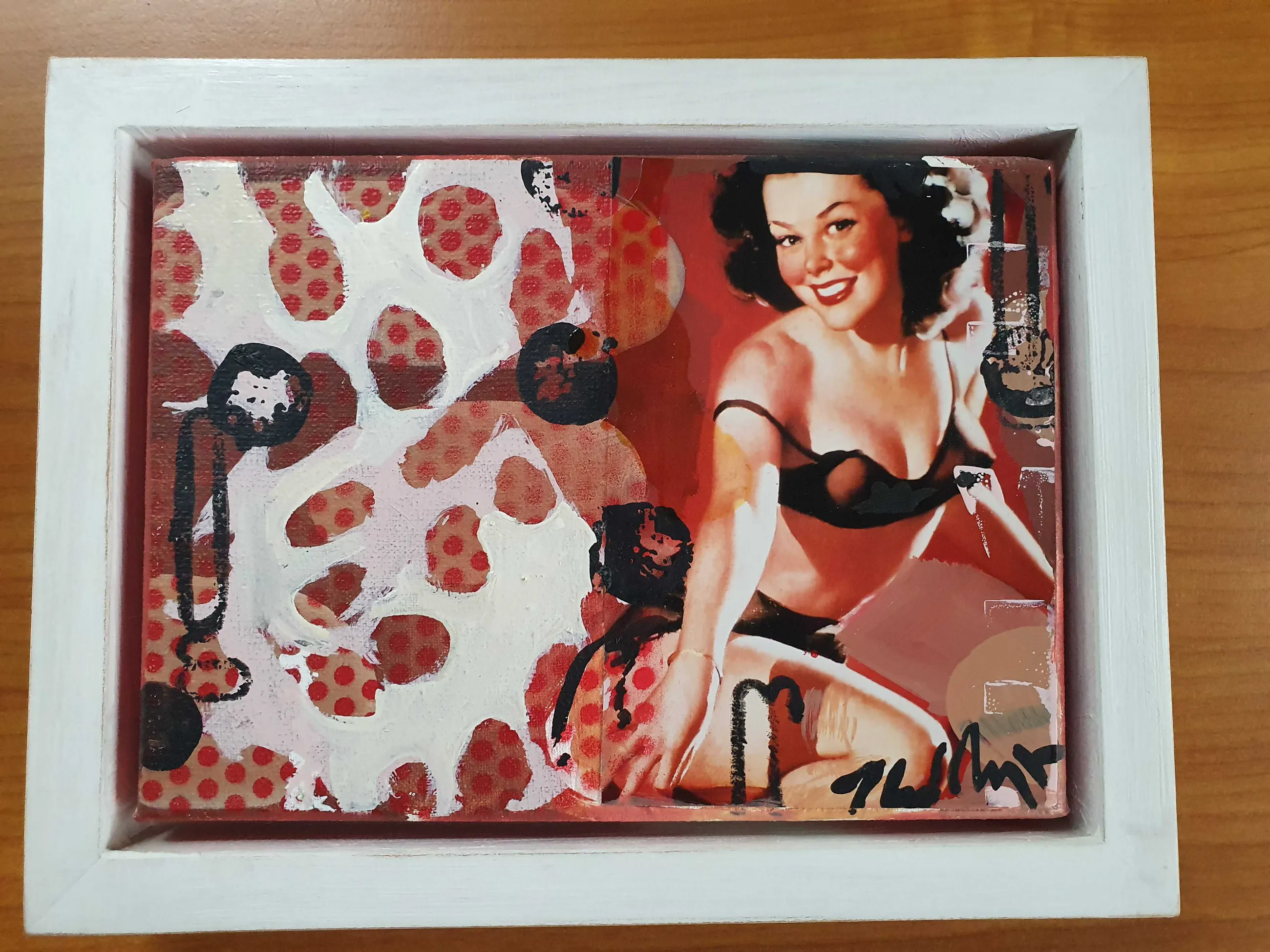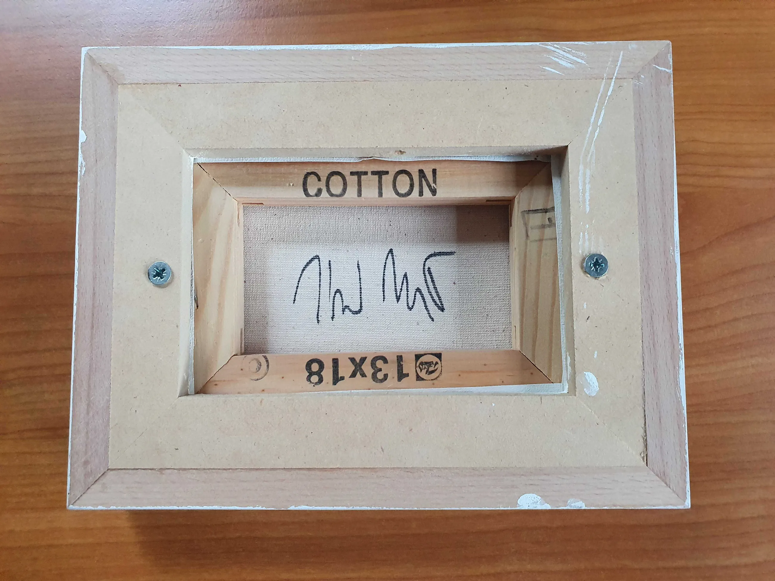 "Kom op" olie en foto op doek 13x18 cm Gesigneerd rechtsonder en op de achterkant
