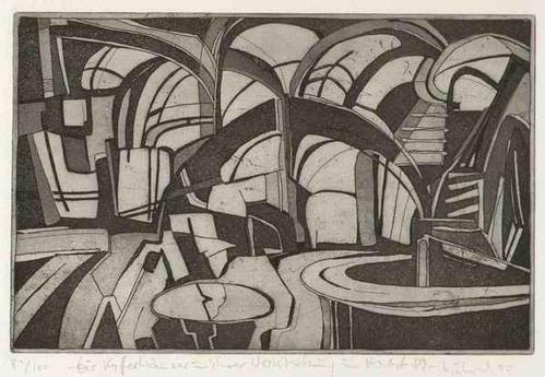Heiner Ulrich - CAFÉHAUS HERBST 89 - Handsignierte OriginalRadierung des MOGOLLON-Bildhauers aus RIESA - 1990 - Verkocht