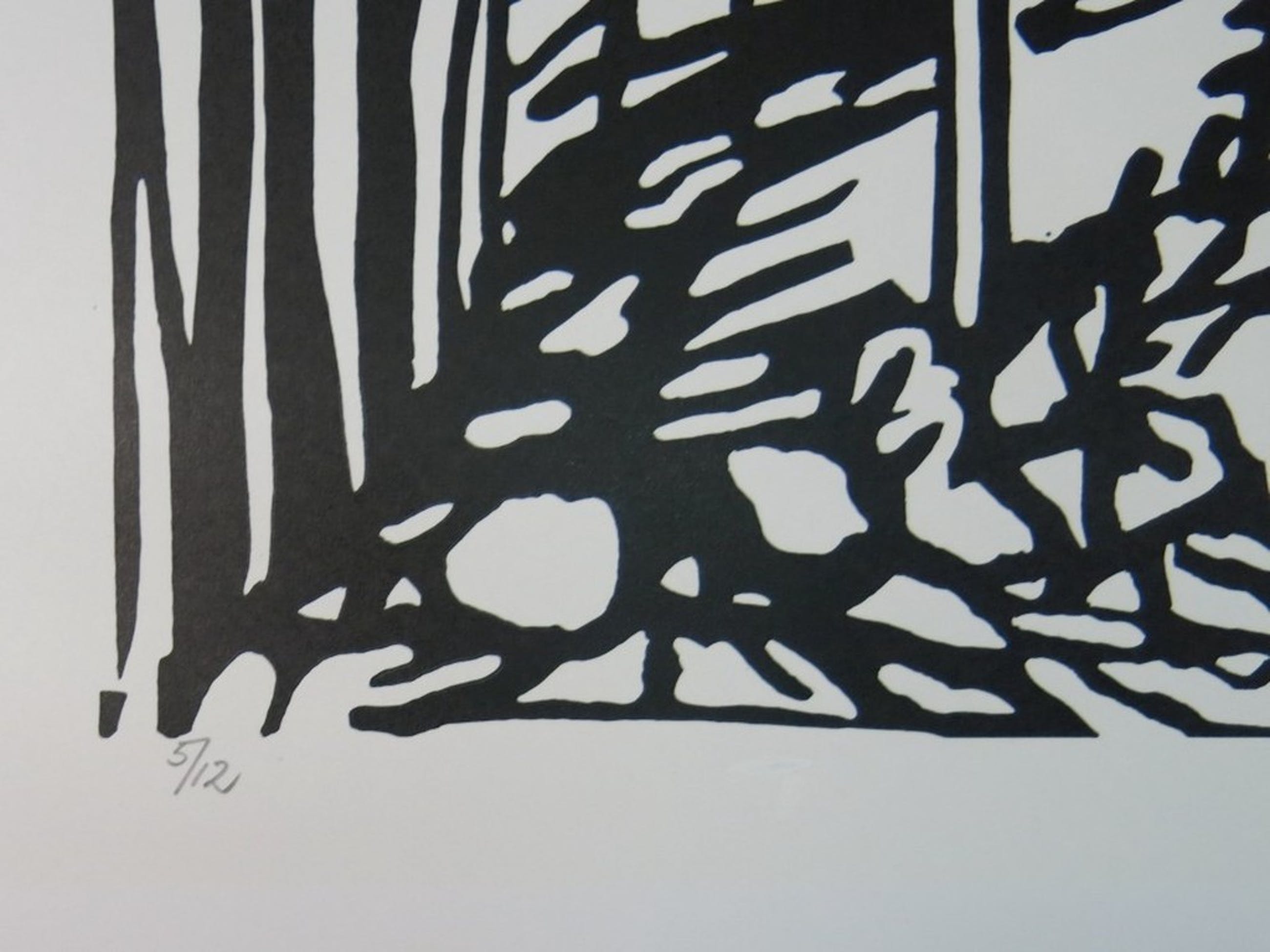 Materiaal: Linosnede op geschept papier