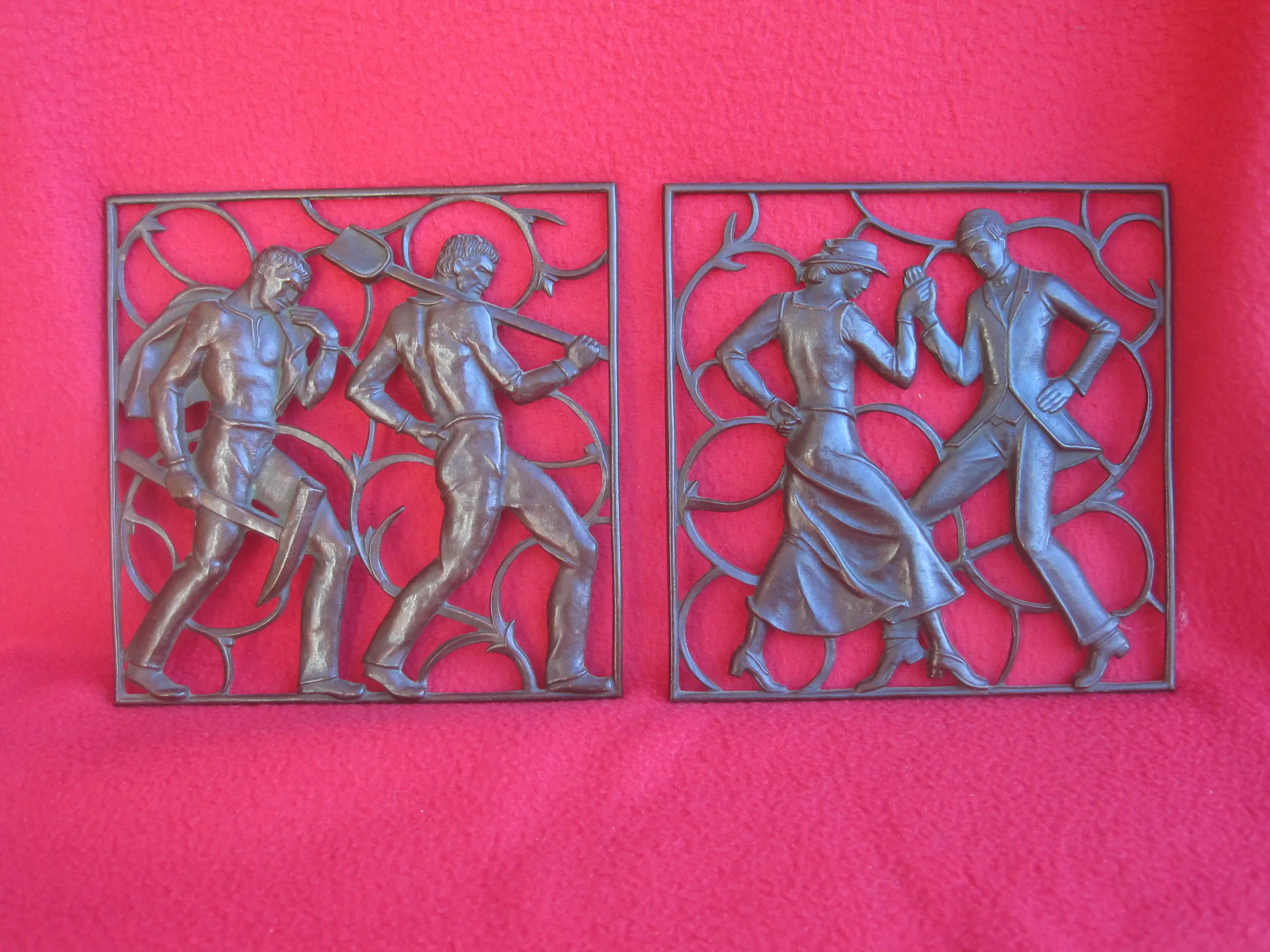 Heinrich Friedrich Moshage - Bronzen reliëfs arbeiders en dansend paar.