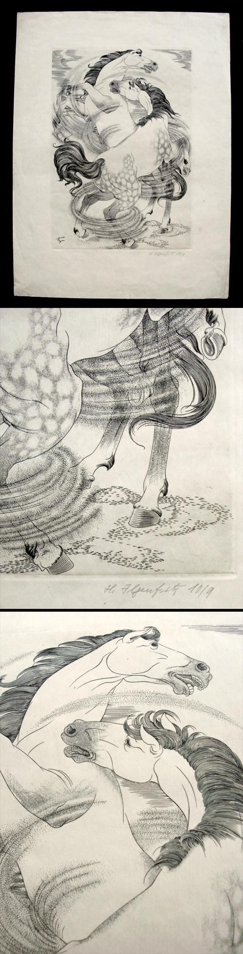 Heinrich Ilgenfritz - Zwei Pferde. sign. Kupferstich, um 1950.