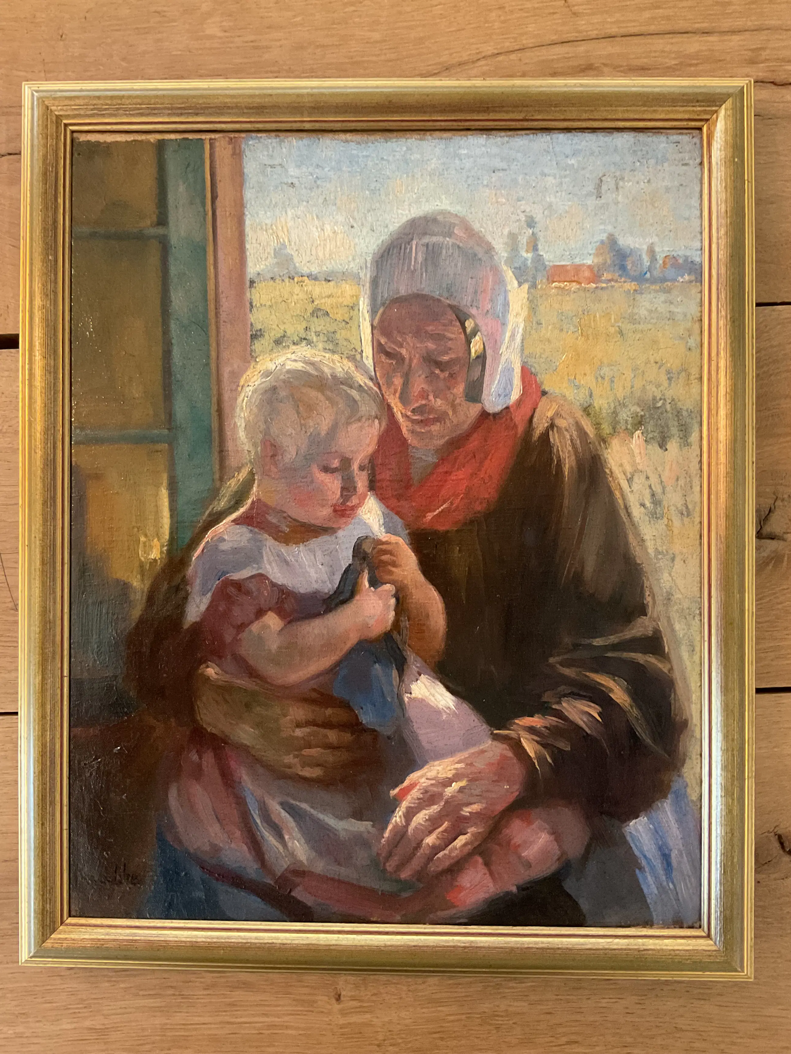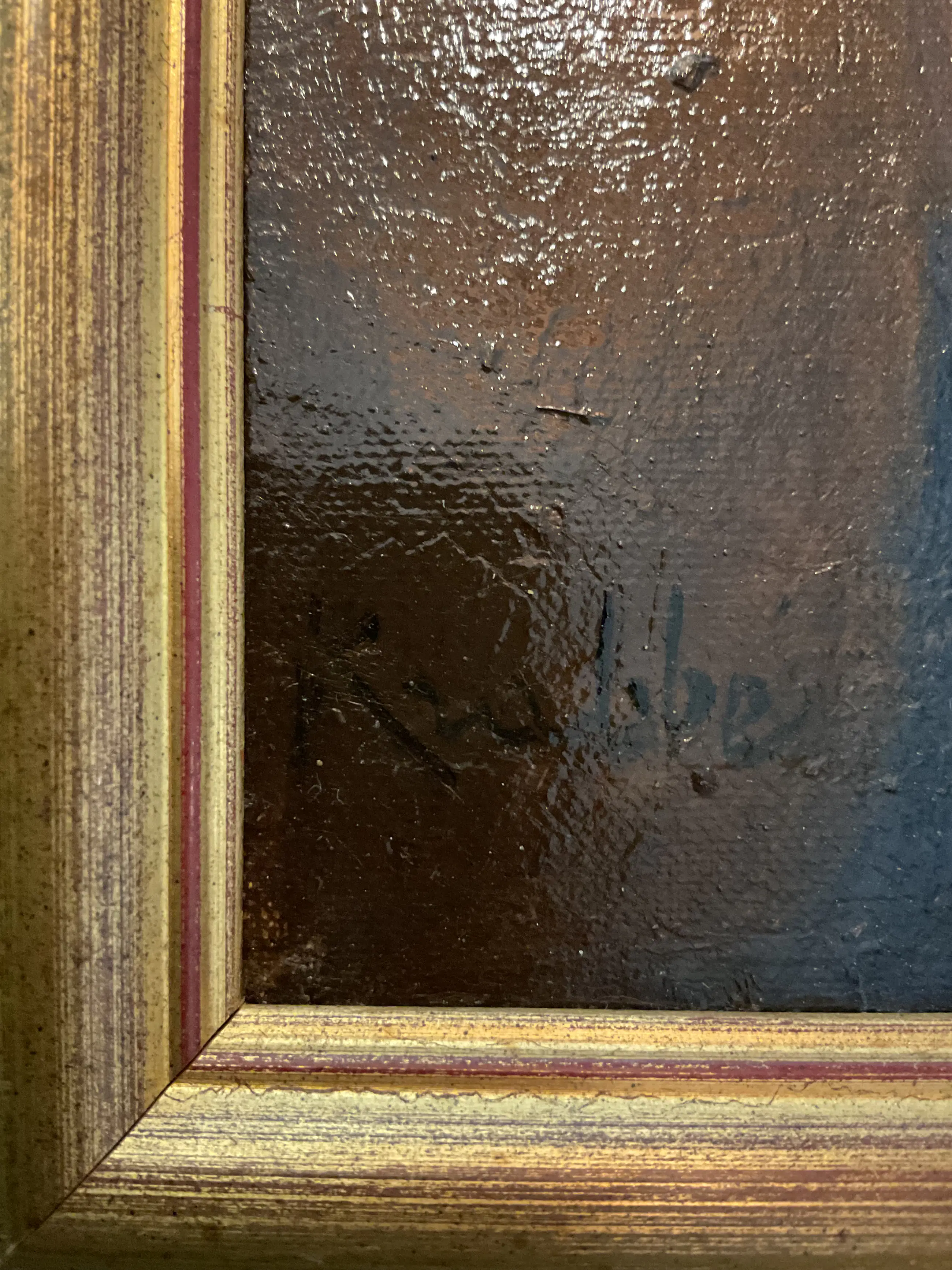 Mooi sfeervol schilderij van H. Krabbé, kleine beschadiging (zie foto’s).