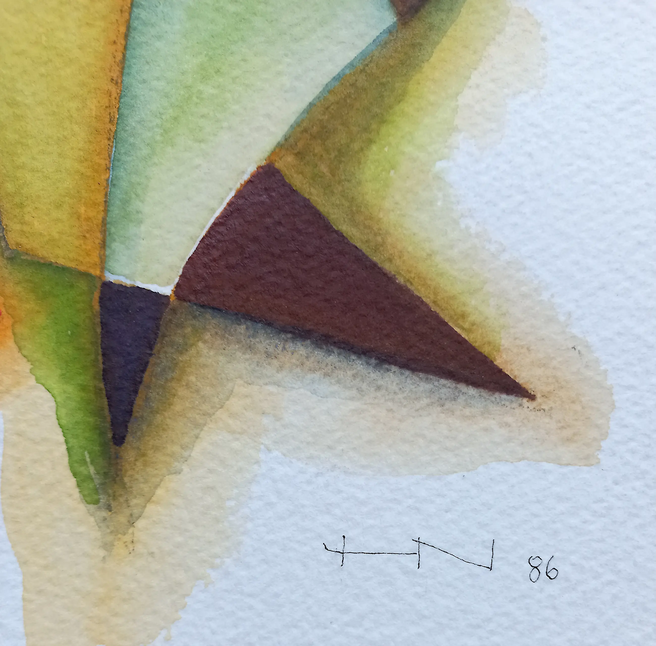 Prachtige compositie van de Duitser Heinrich Neuy, één van de jongste Bauhaus kunstenaars. Aquarel op stijf aquarelpapier, gemonogrammeerd en gedateerd (’86) rechtsonder, in uitstekende conditie. Deze aquarel komt met twee boekjes: “Der Bauhausmaler Heinrich Neuy” (1986, handgesigneerd en genummerd (27/30)) en “Heinrich Neuy - Bauhaus - Der Weg zur abstrakten Malerei” (1984).