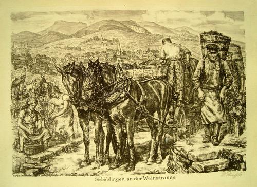 Heinrich Strieffler - Siebeldingen a.d. Weinstrasse, Herbst im Weinberg Lithographie von 1936 kopen? Bied vanaf 120!