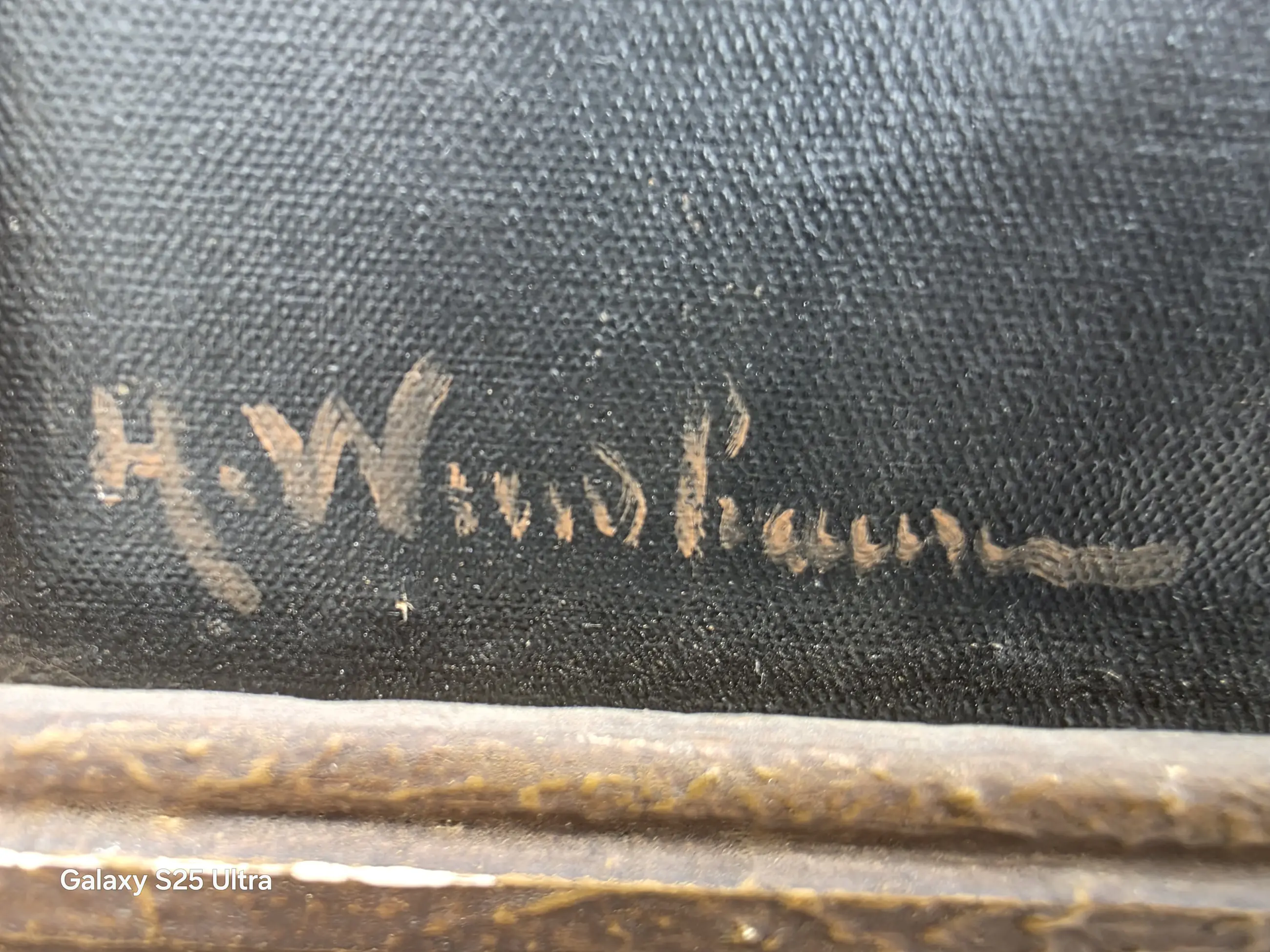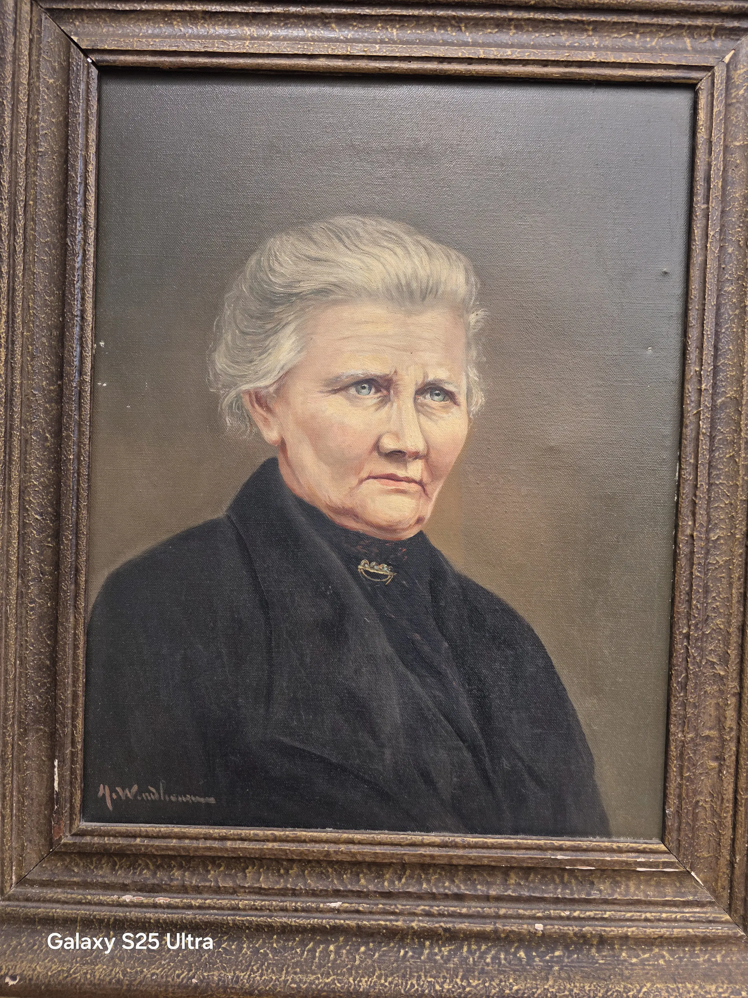 Het schilderij is van Henrich Windhausen en dateert uit de 19e eeuw. Hier en daar wat beschadigingen. Bij de man een kras bij de snor.